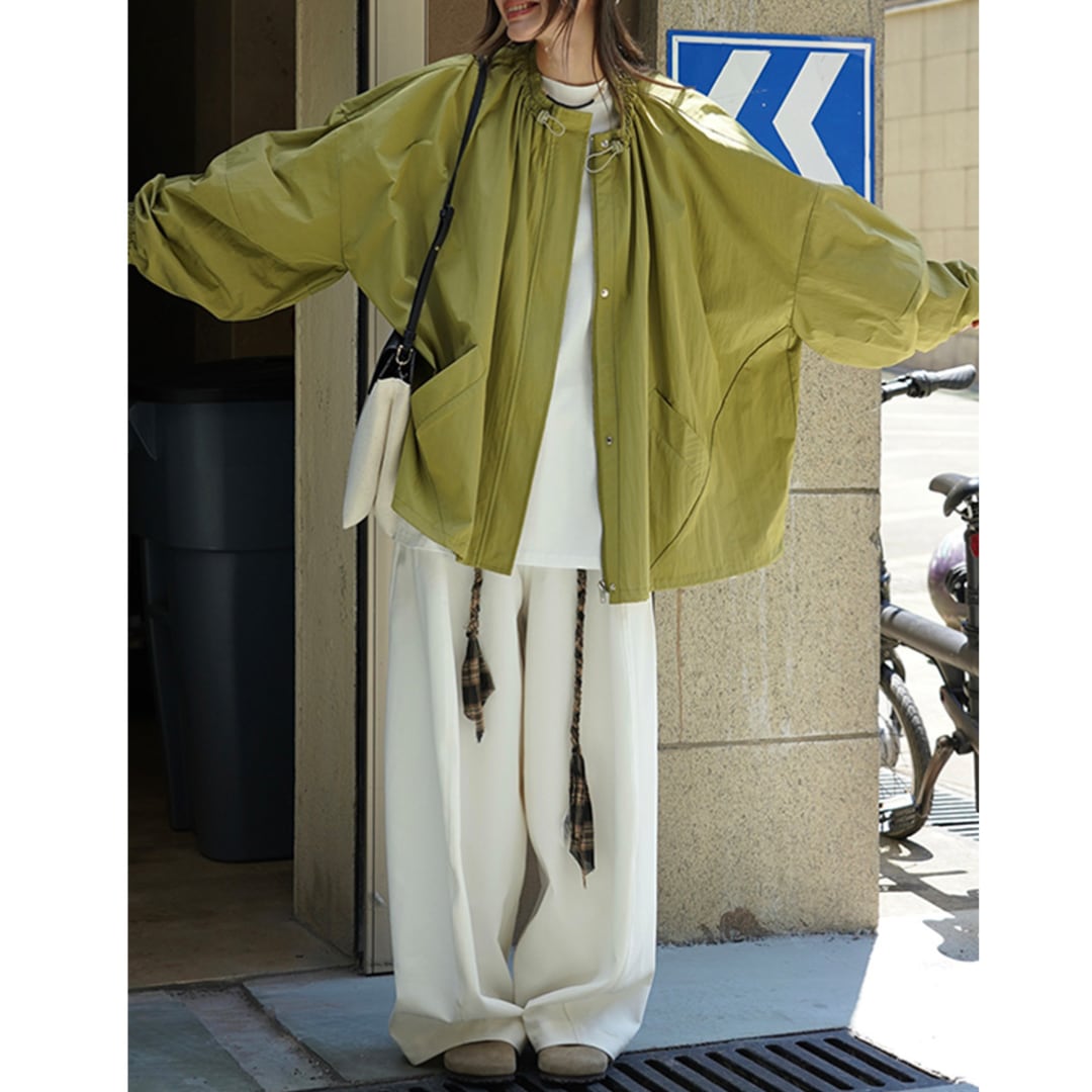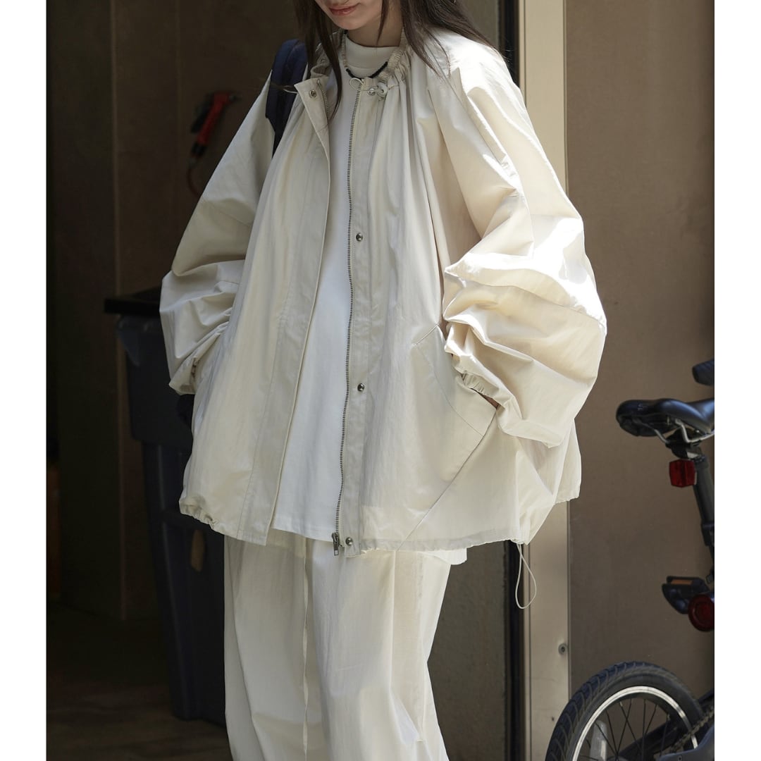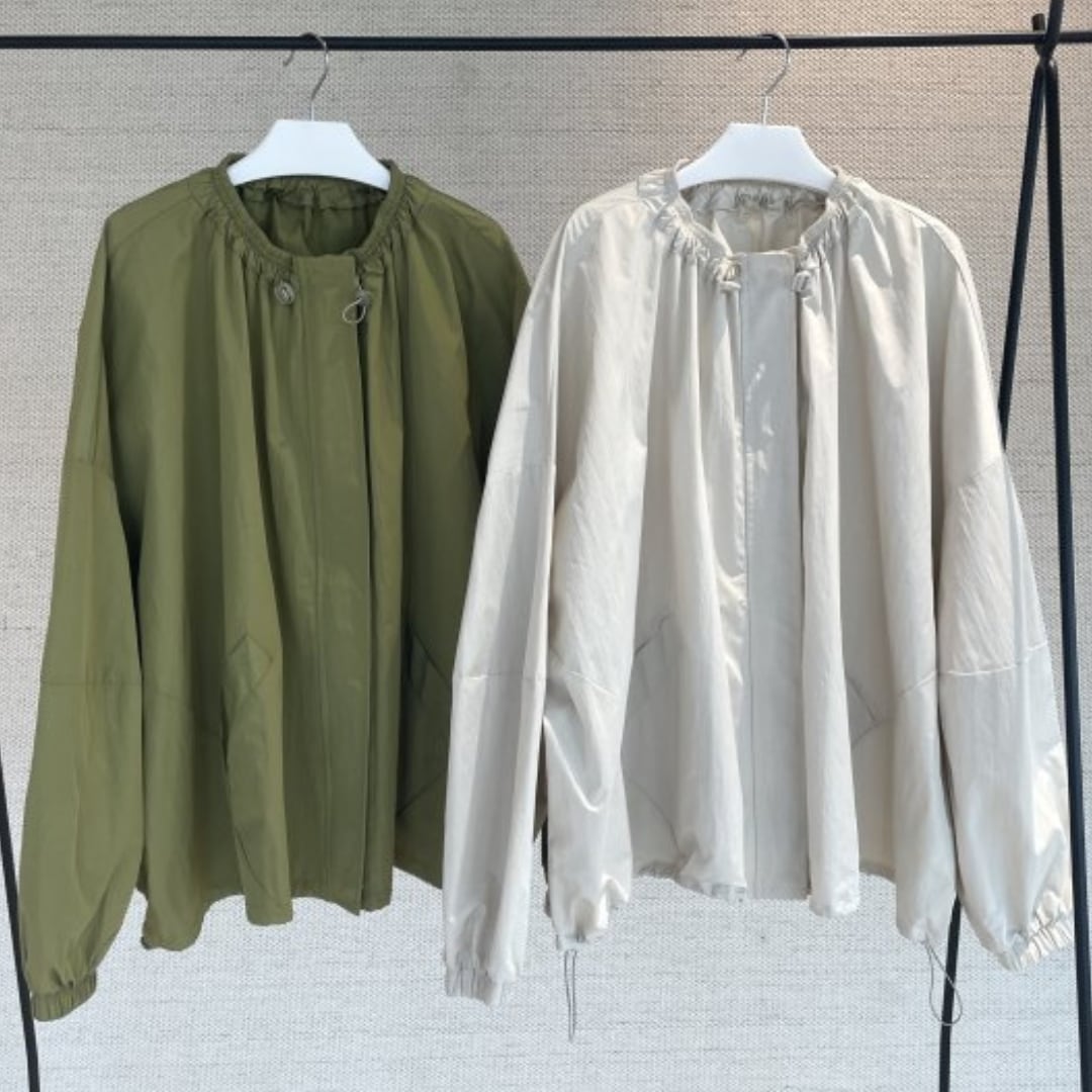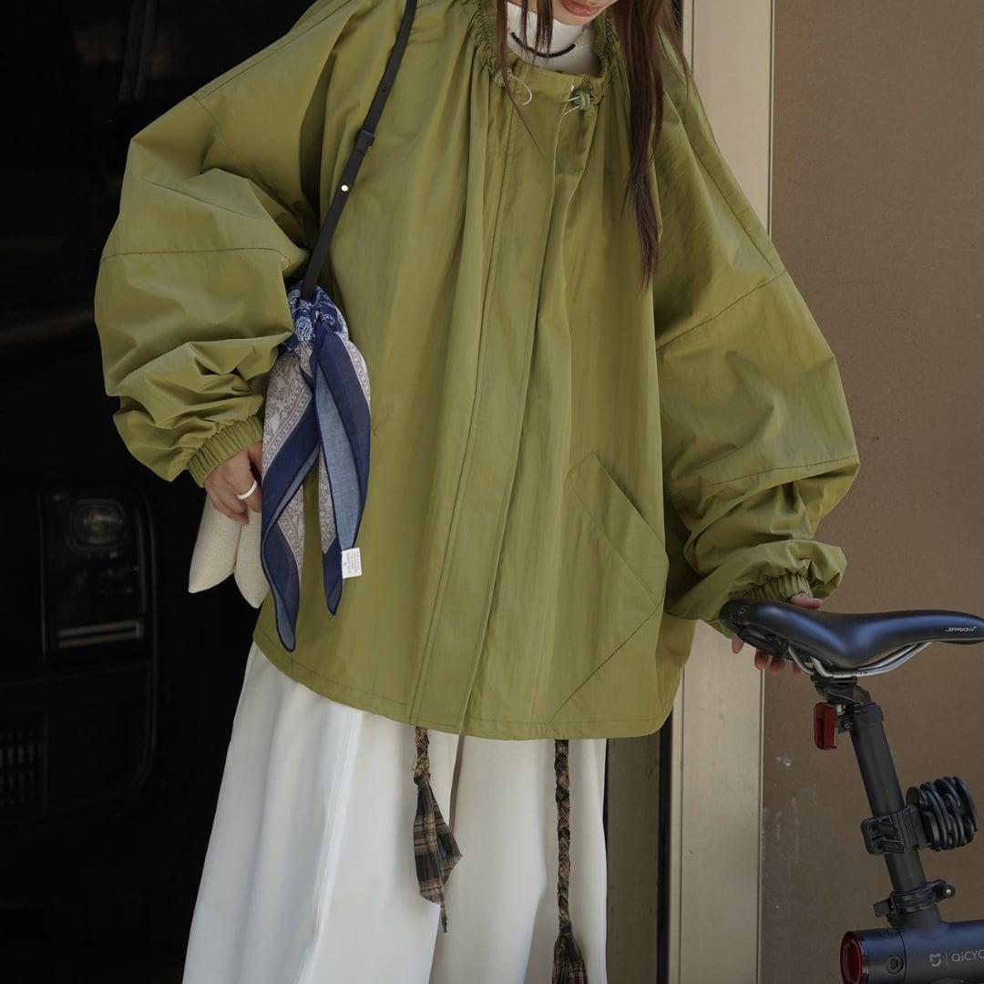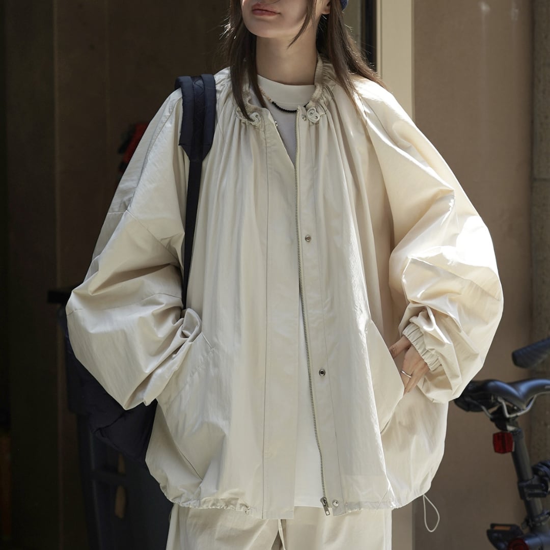 首回りと裾にドローコードを採用したカジュアルなジャケット。