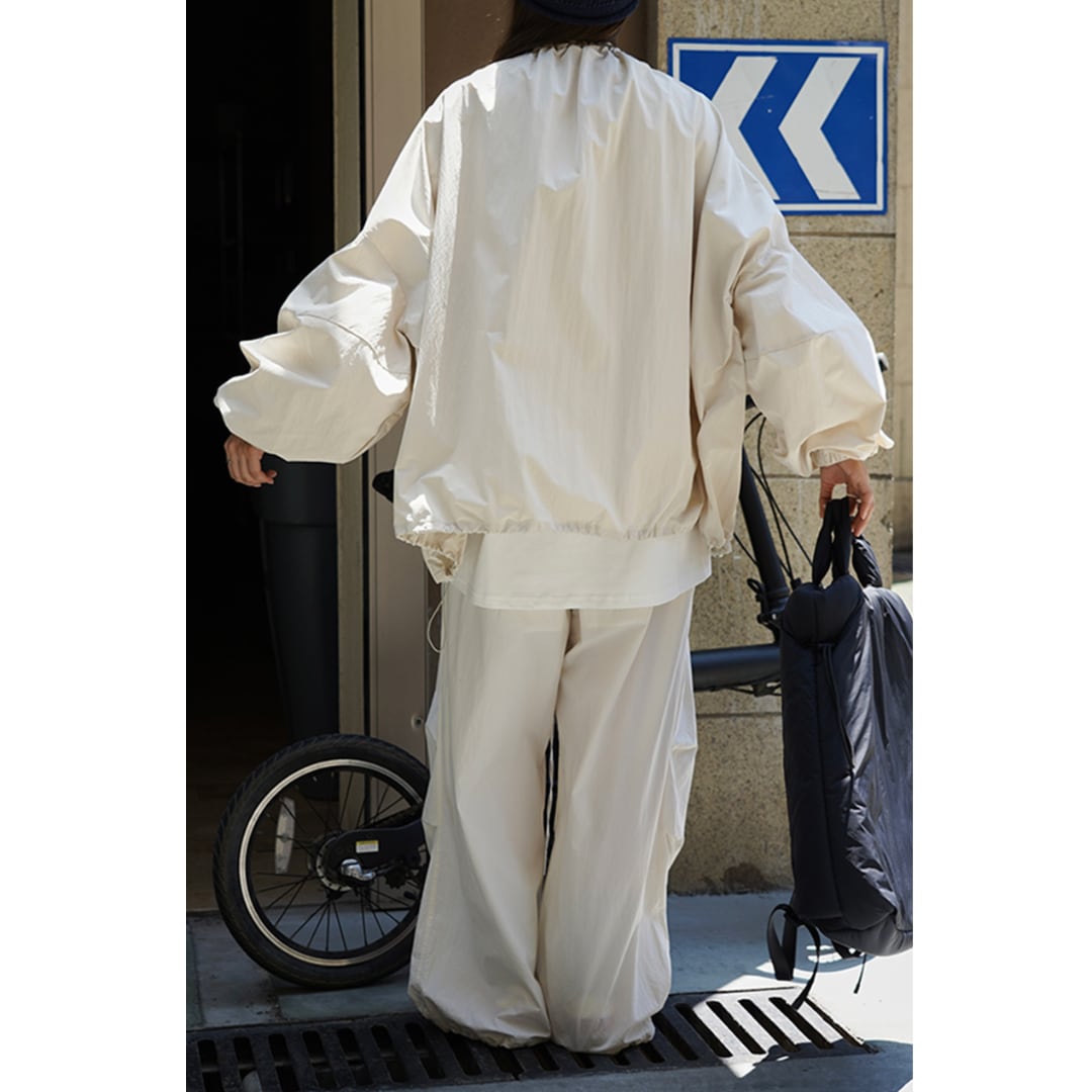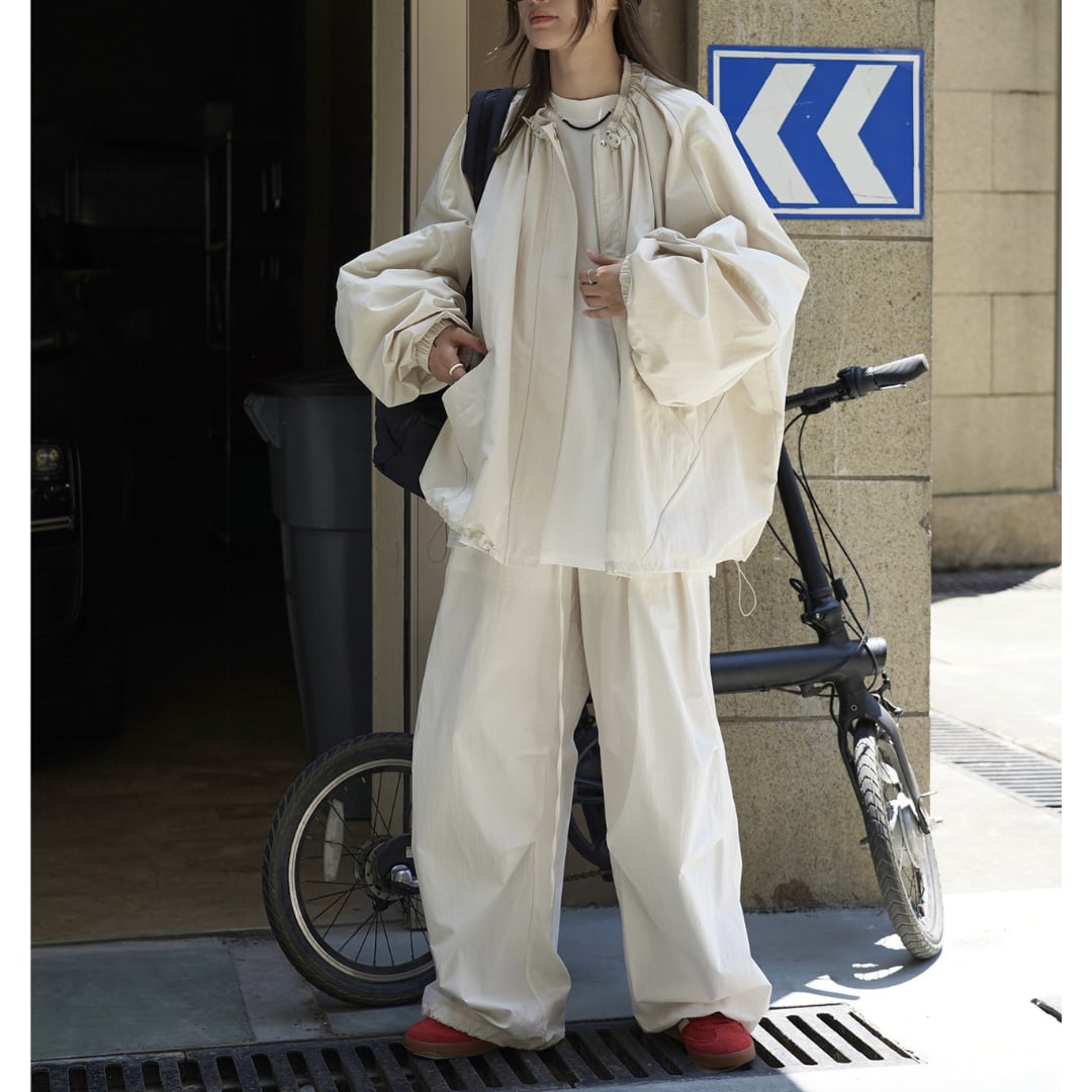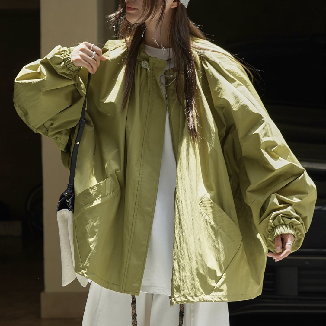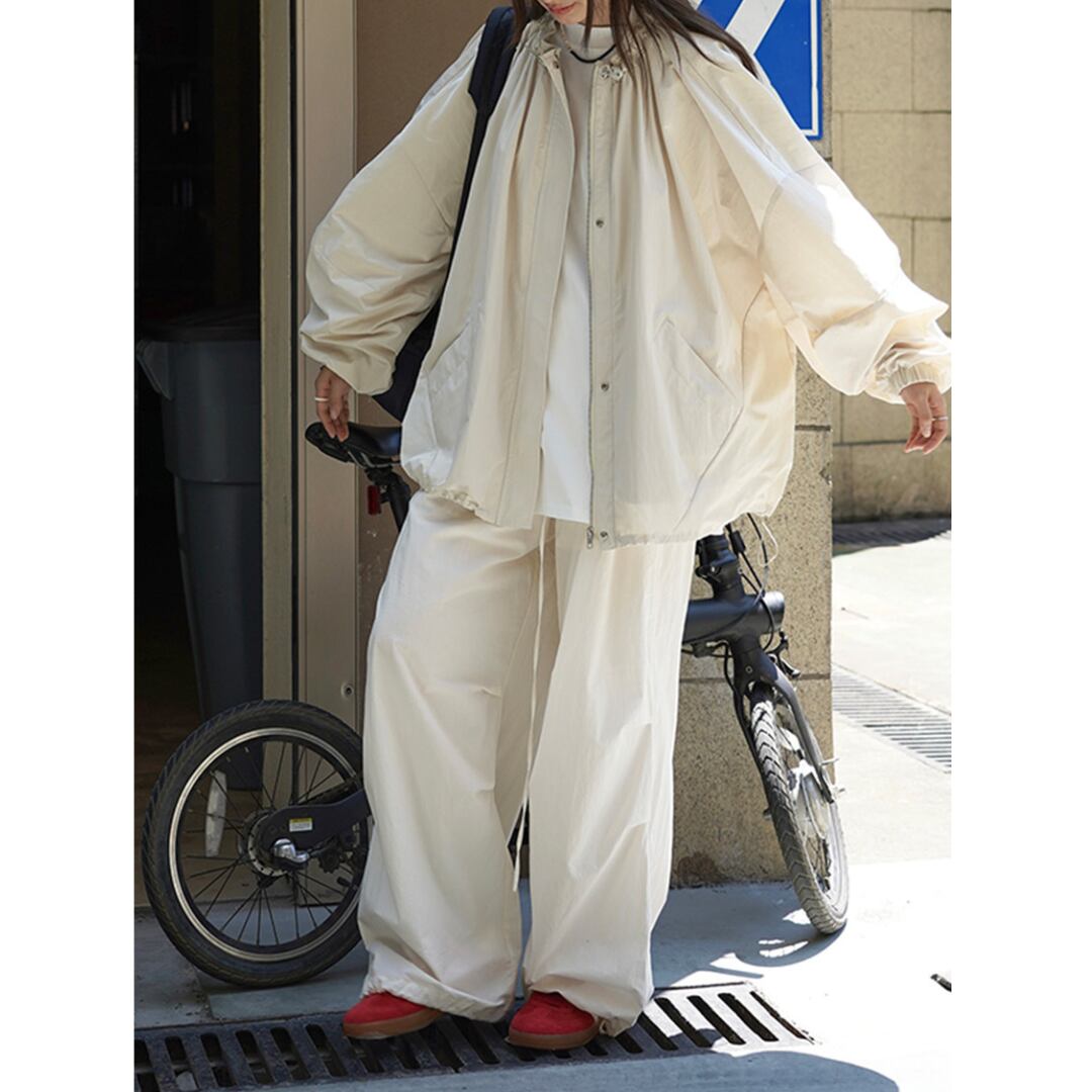 首回りと裾にドローコードを採用したカジュアルなジャケット。
