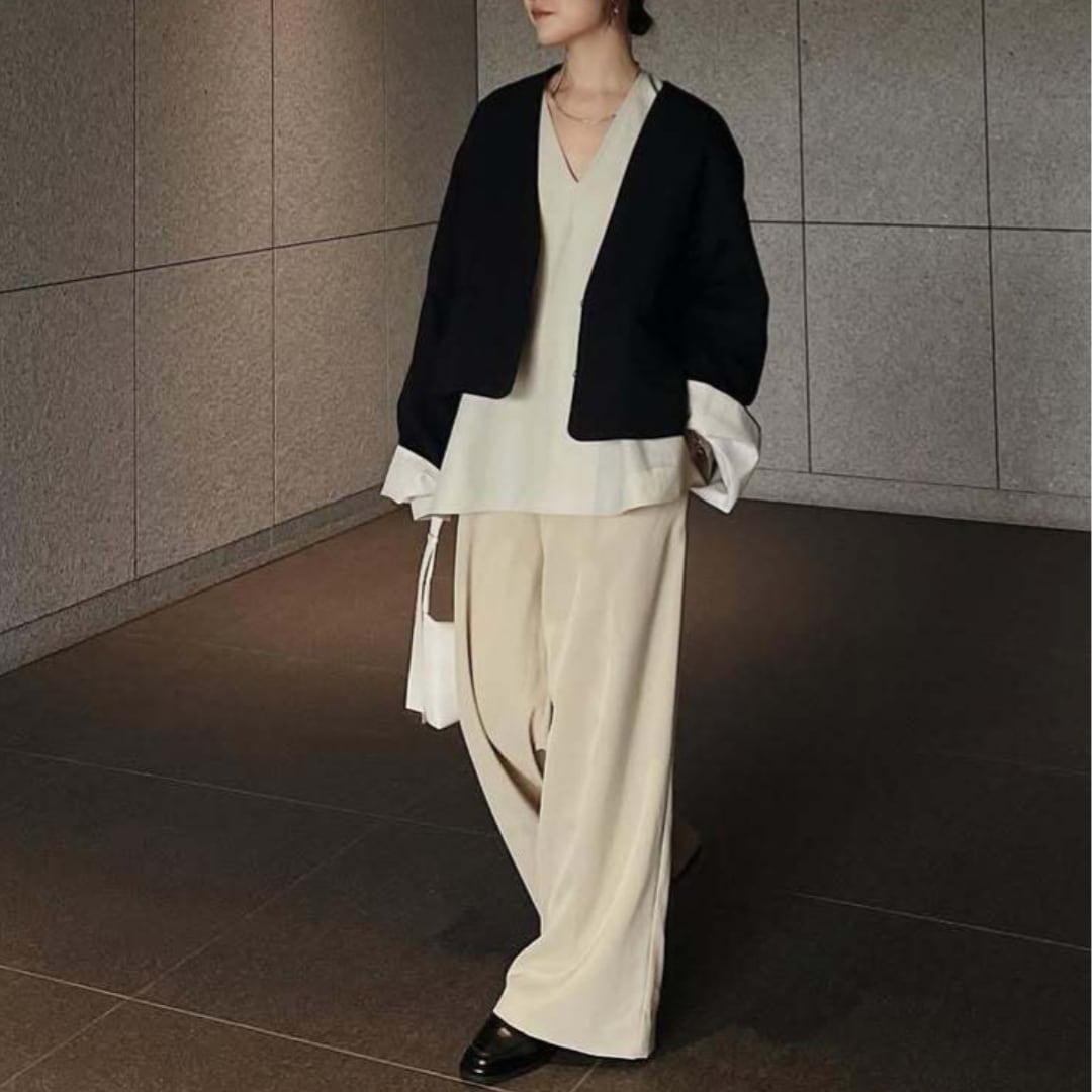 着回しやすいモノトーンで、シックにもカジュアルにも取り入れられます。