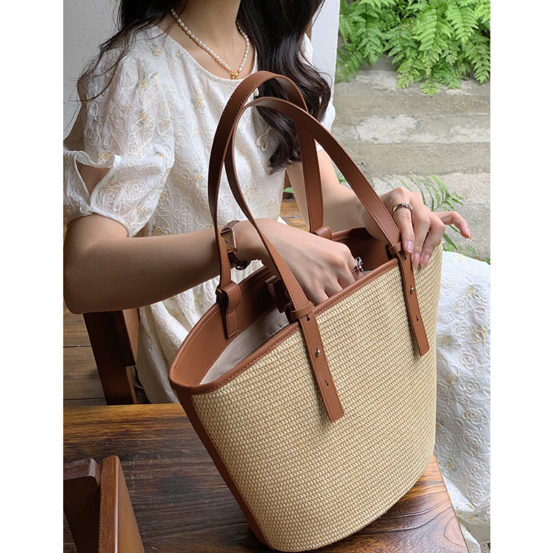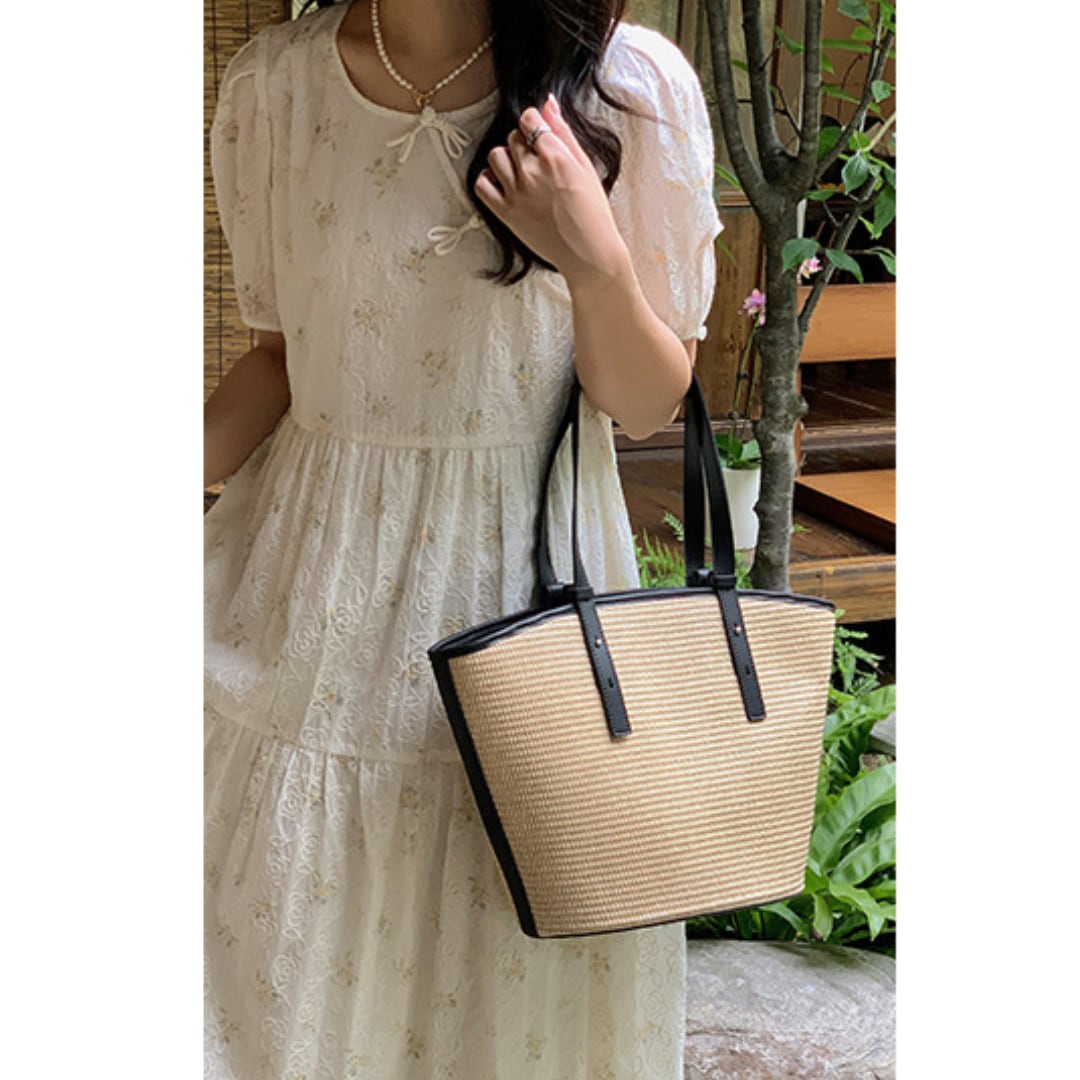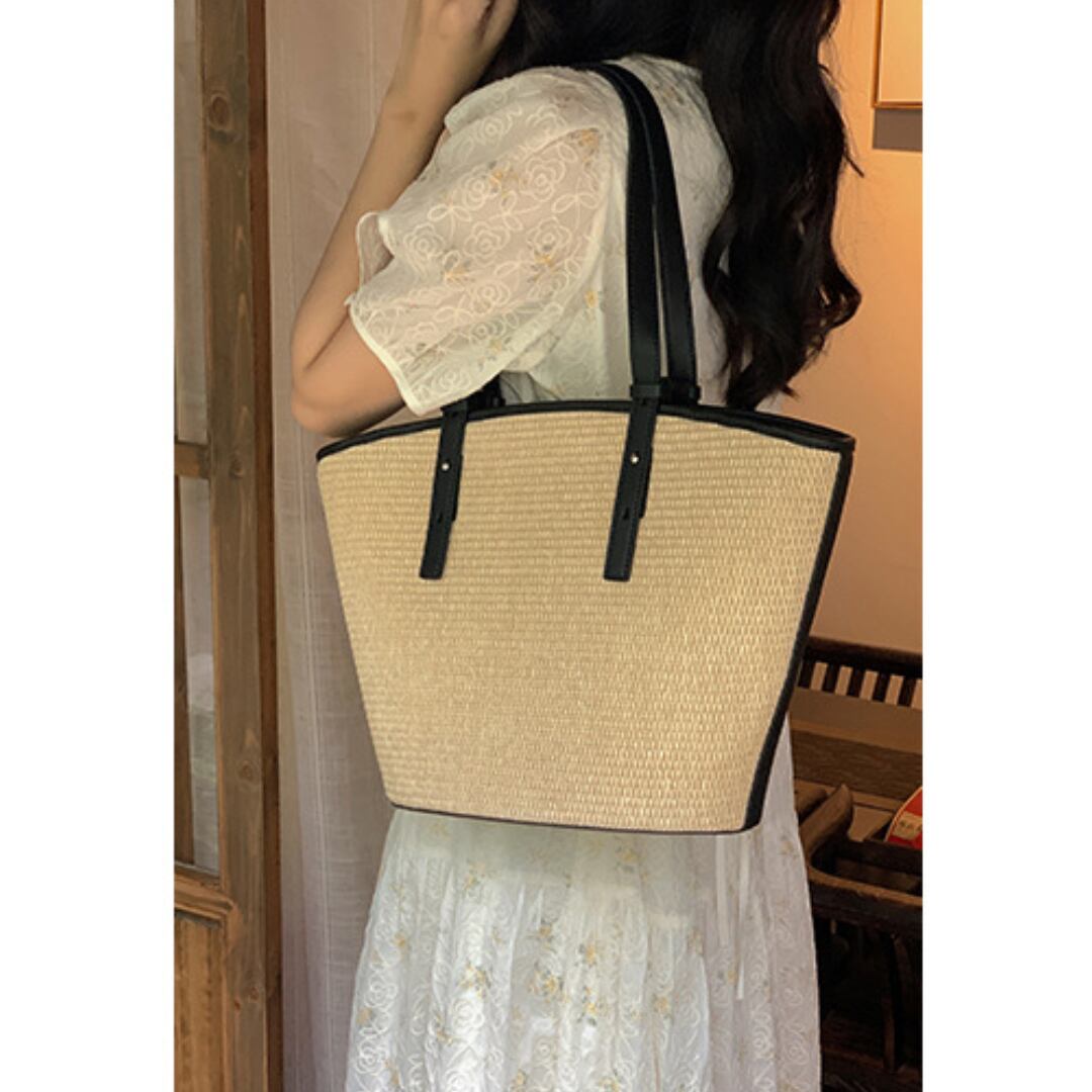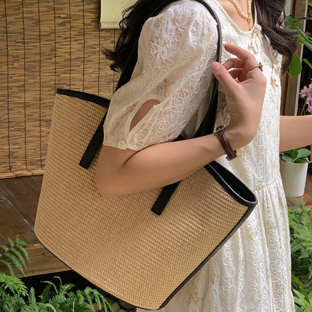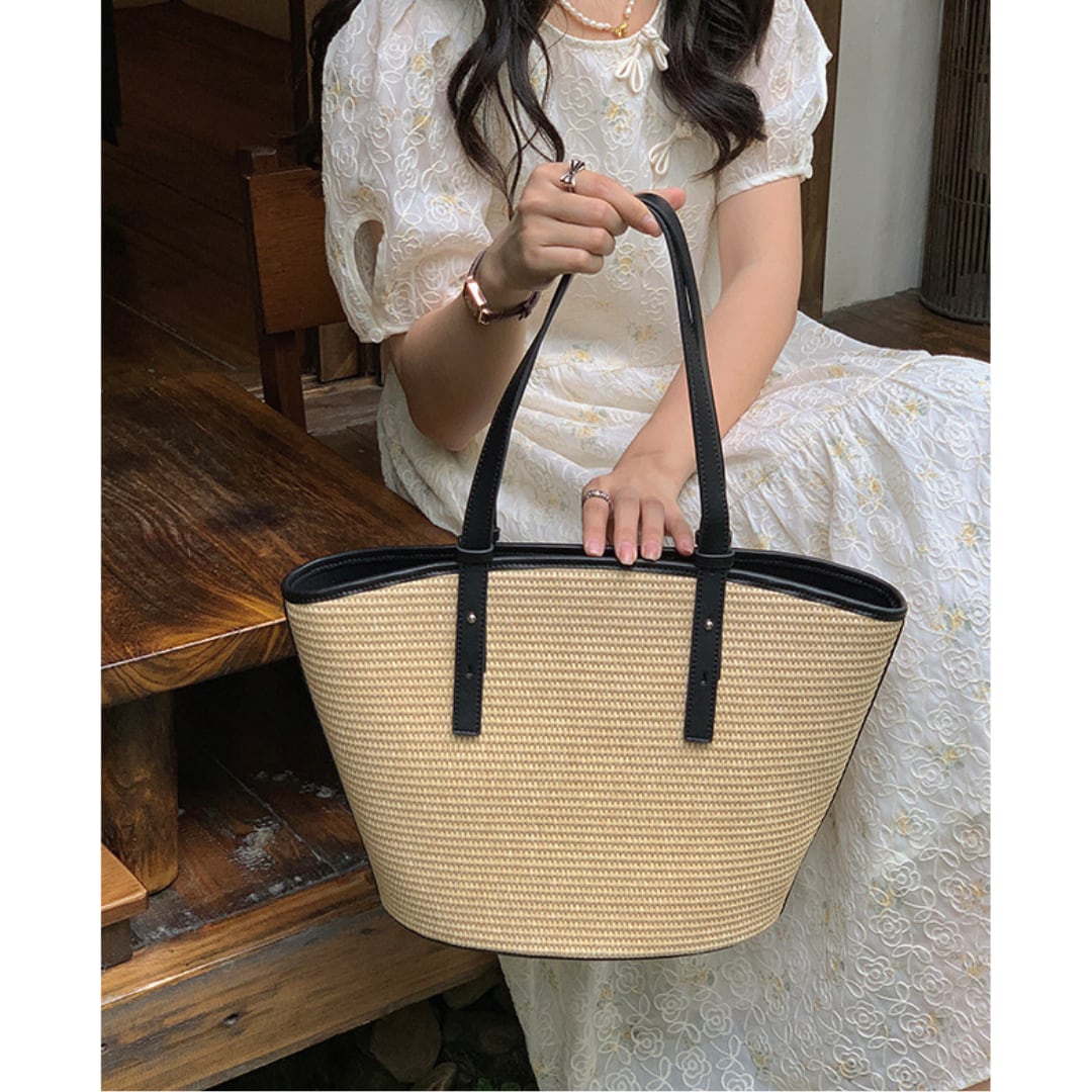 春夏コーデに大活躍するストロー素材のトートバッグ。