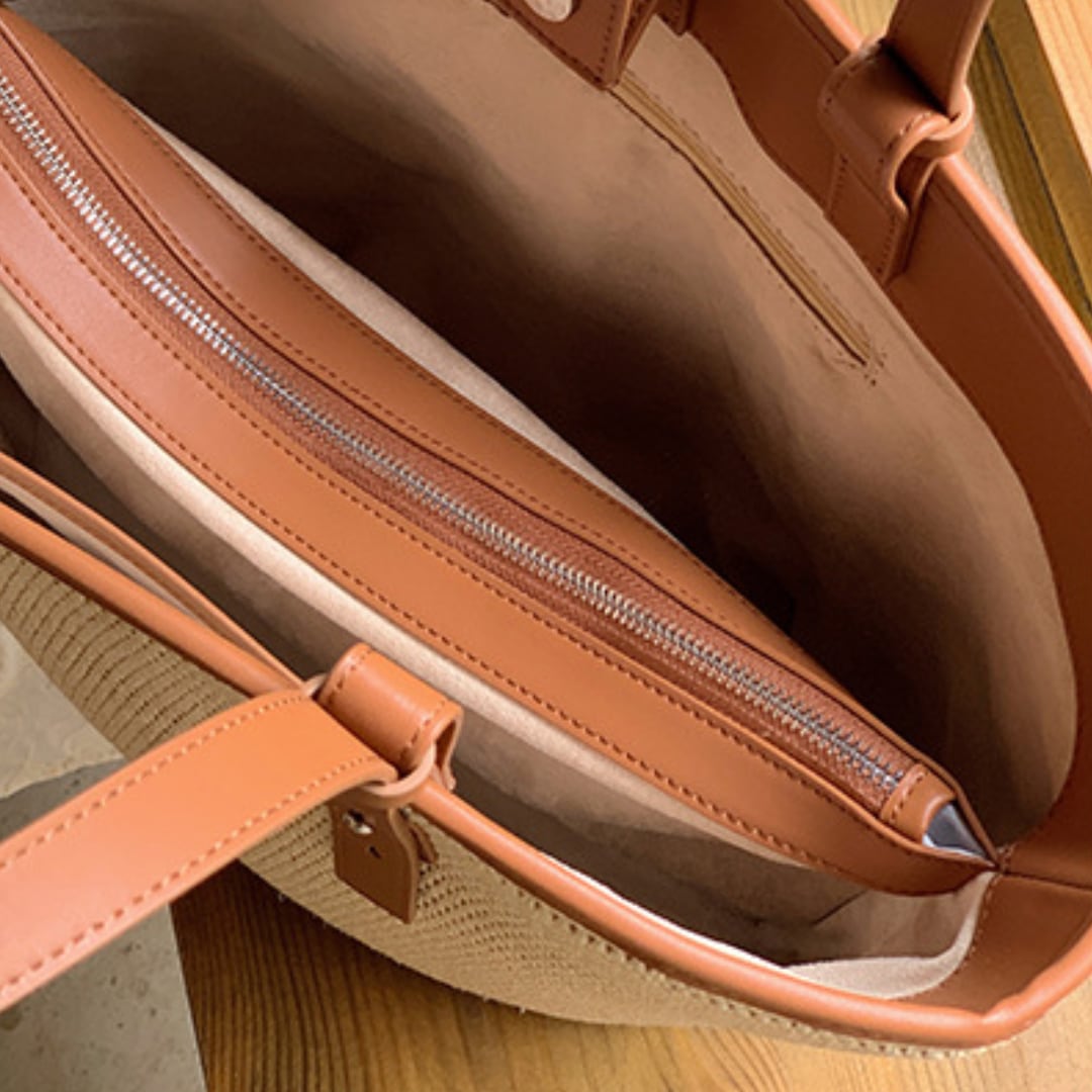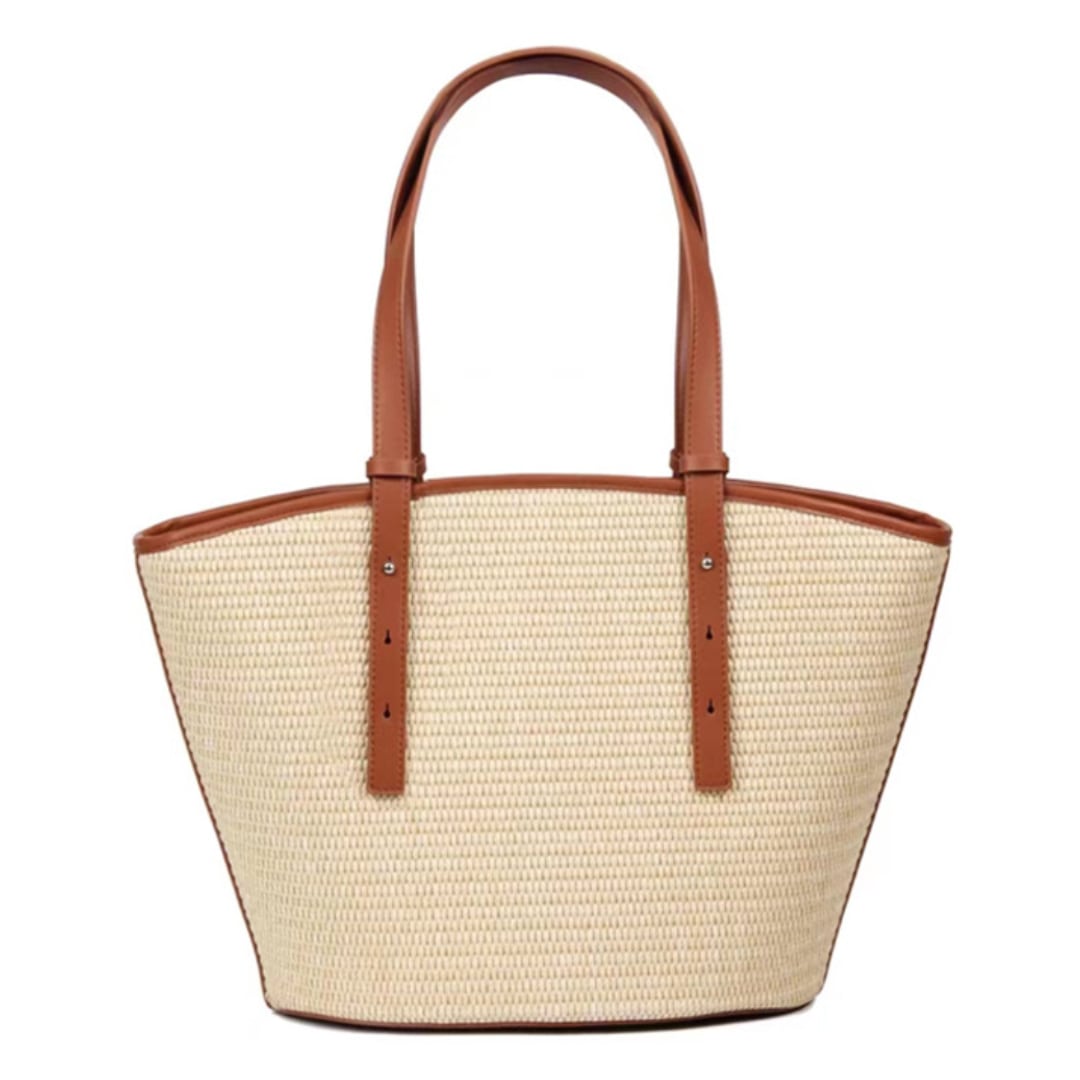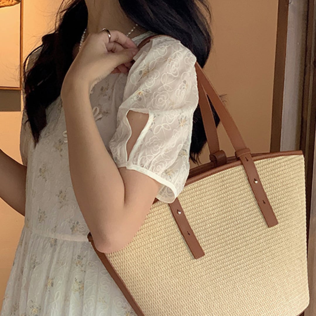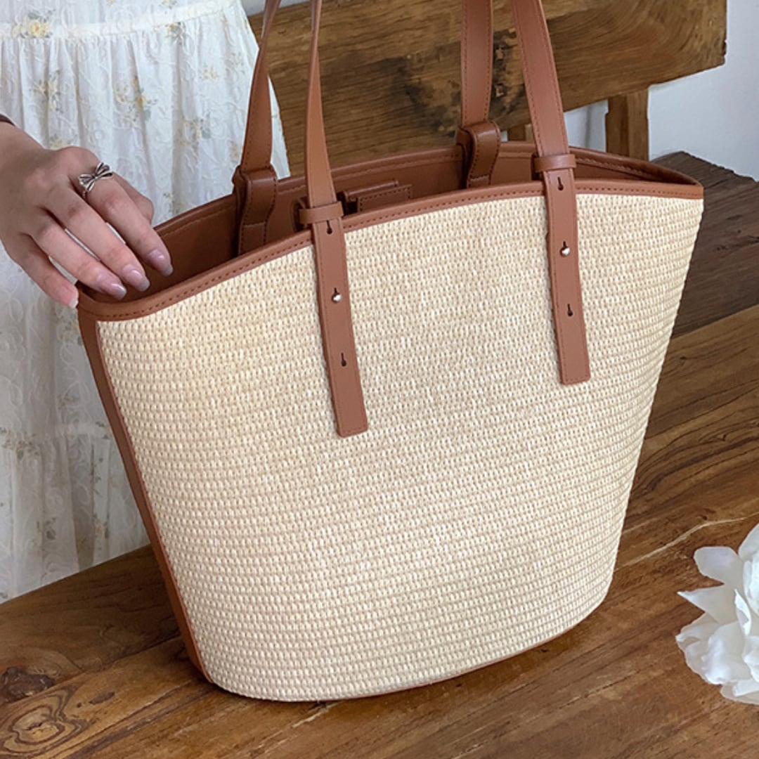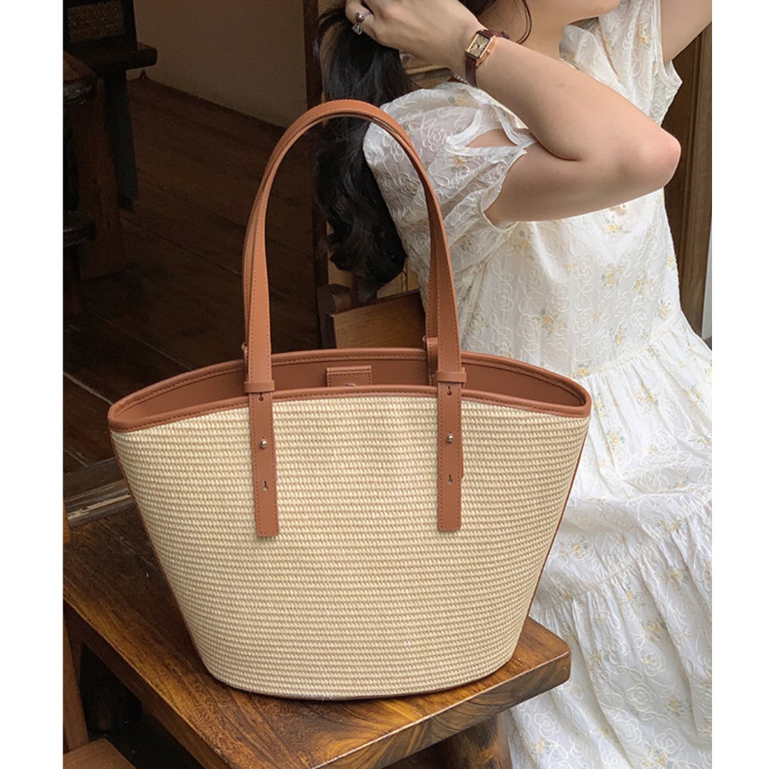 春夏コーデに大活躍するストロー素材のトートバッグ。