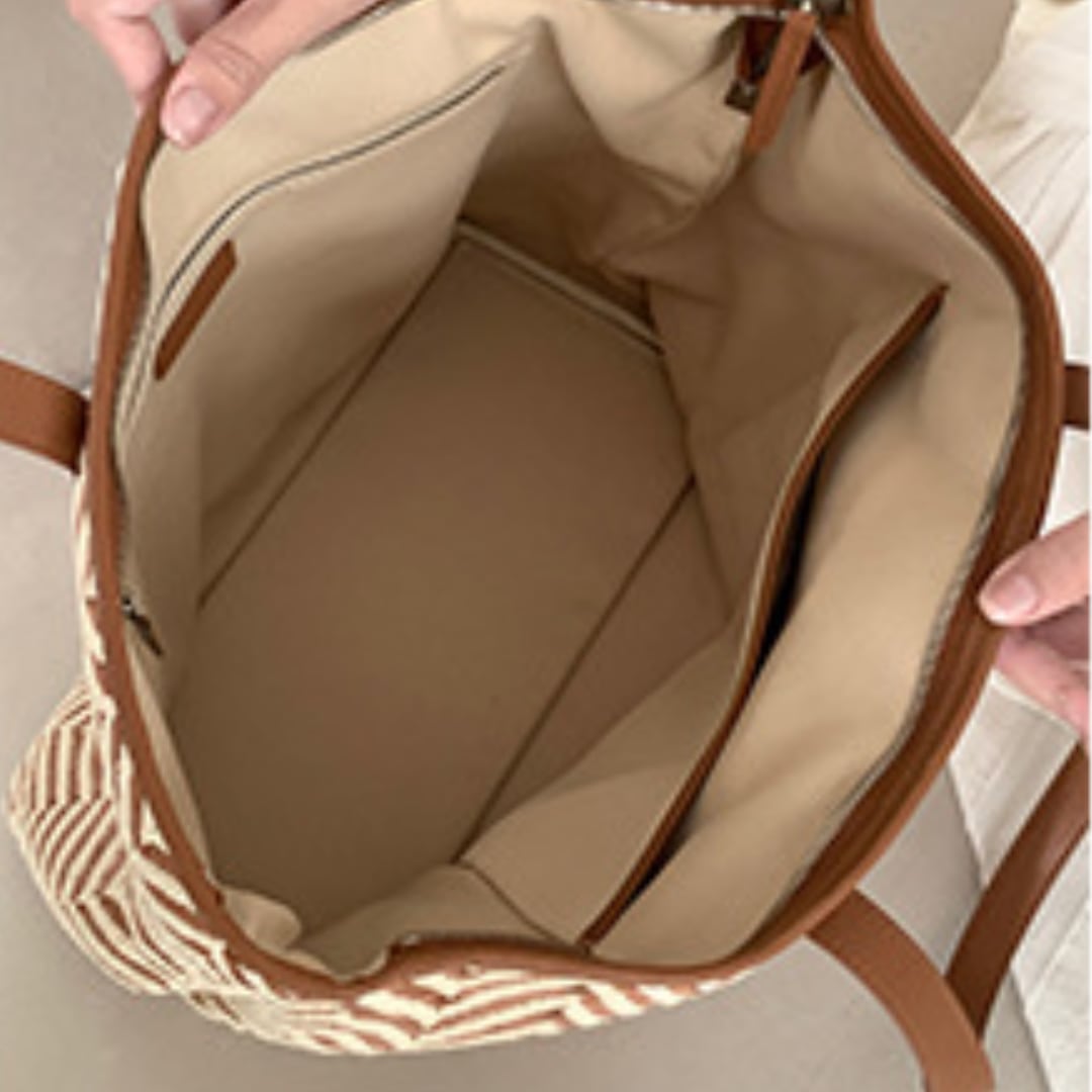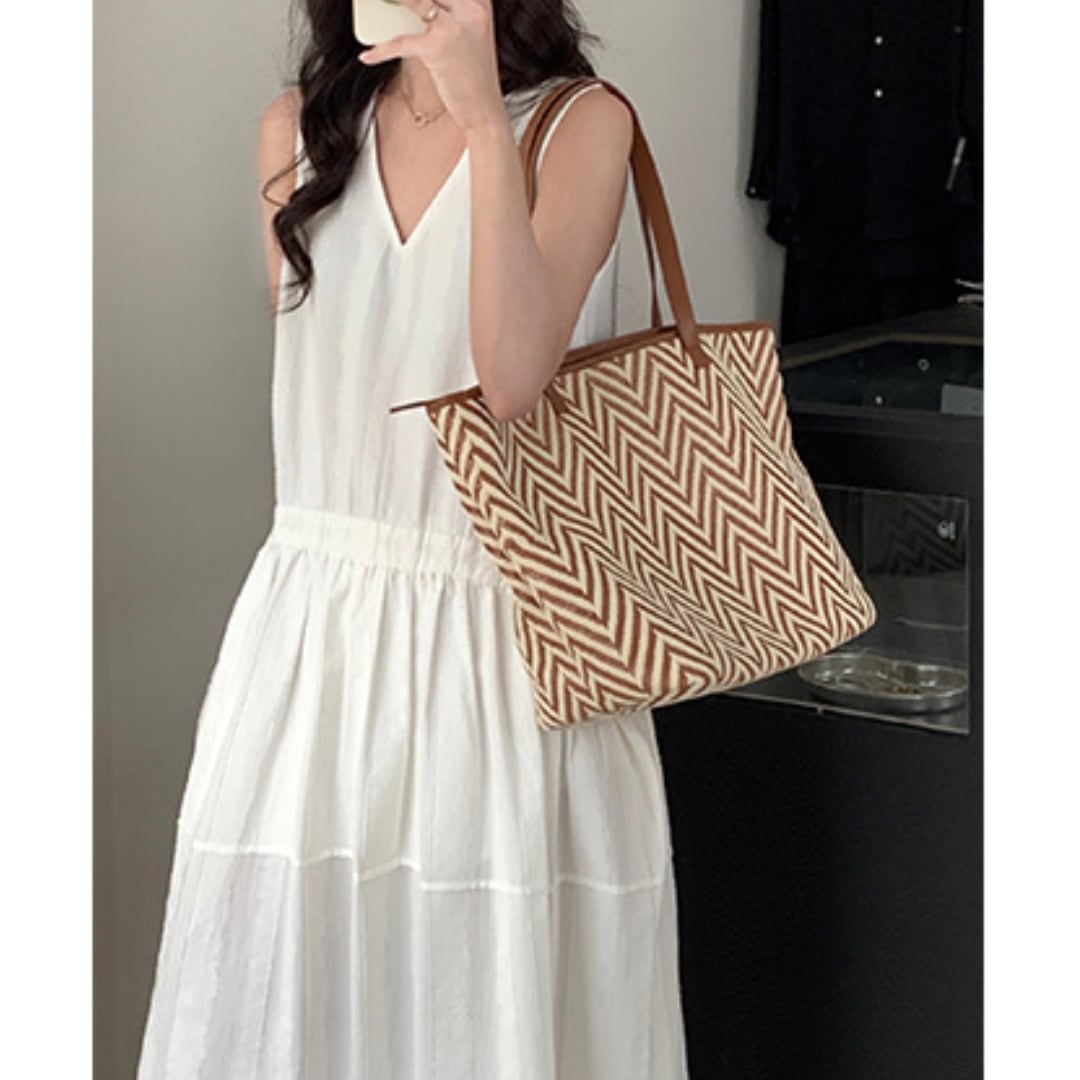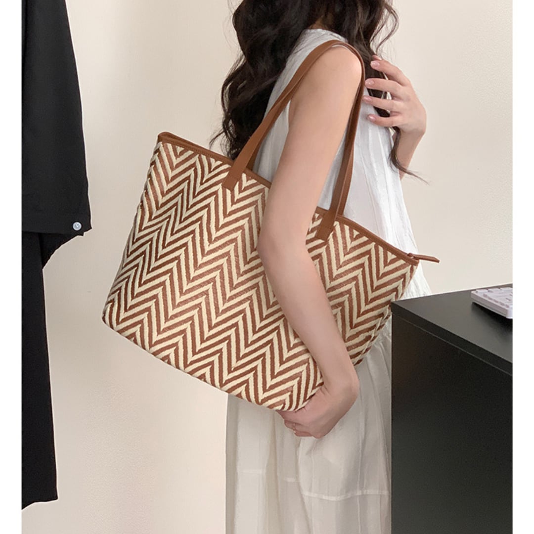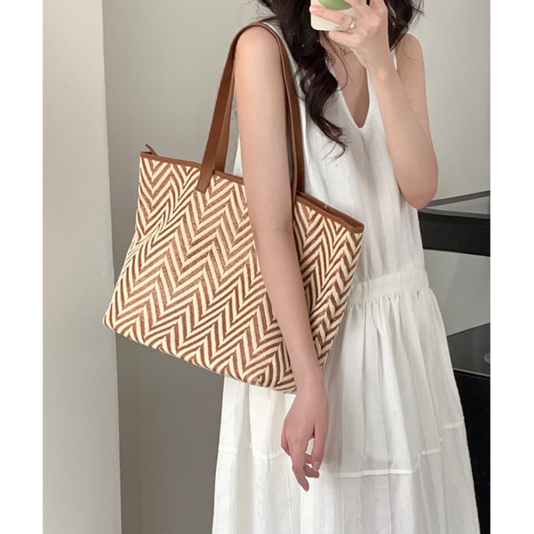 季節感とハイセンスな雰囲気を漂わせるヘリンボーン柄のストロートートバッグ。