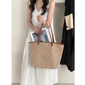 Herringbone pattern straw tote bag G1054