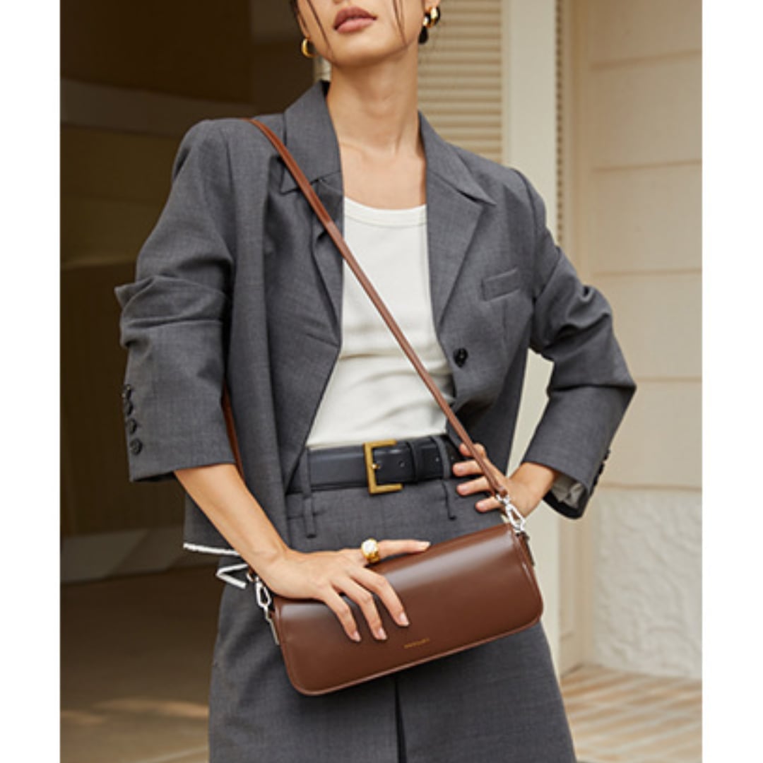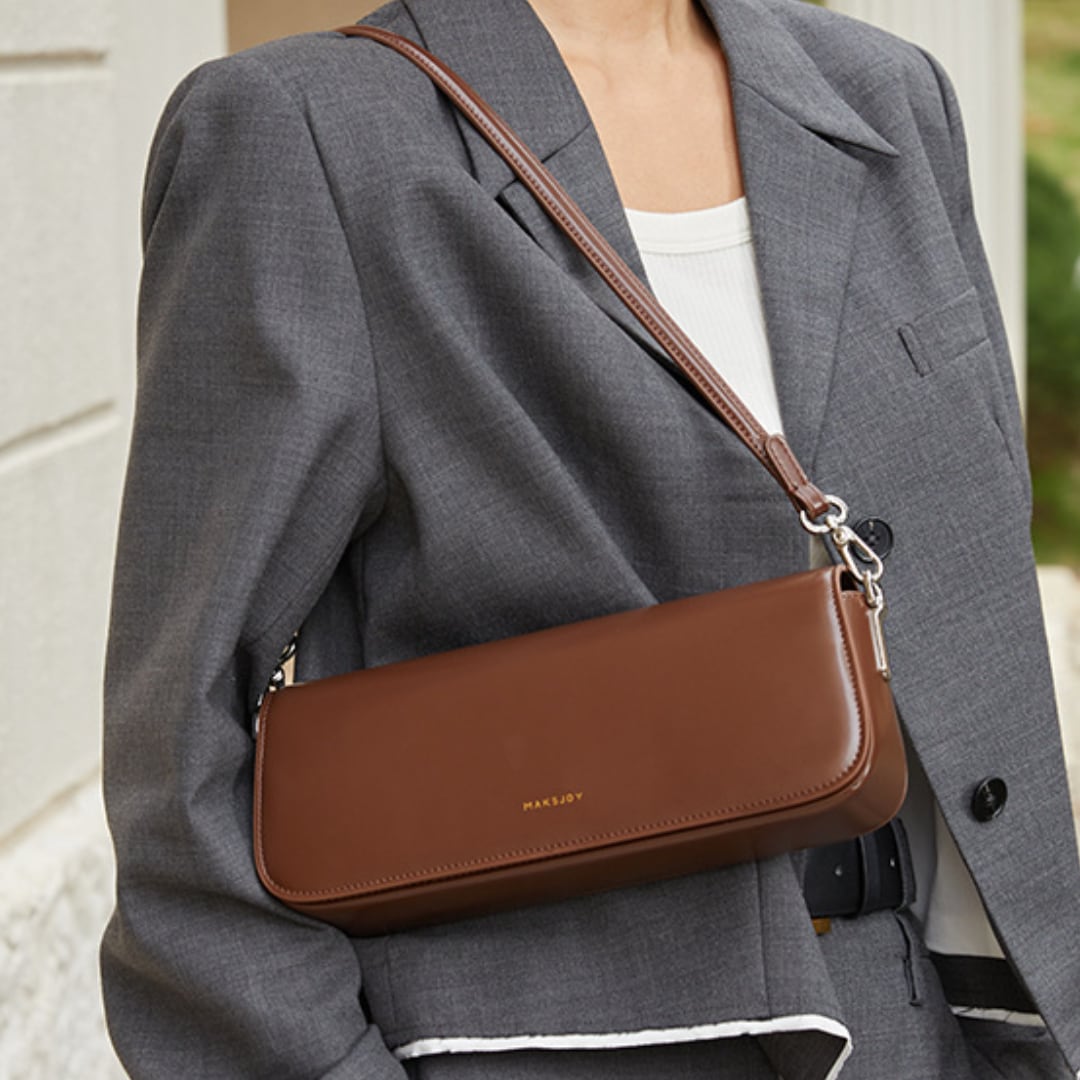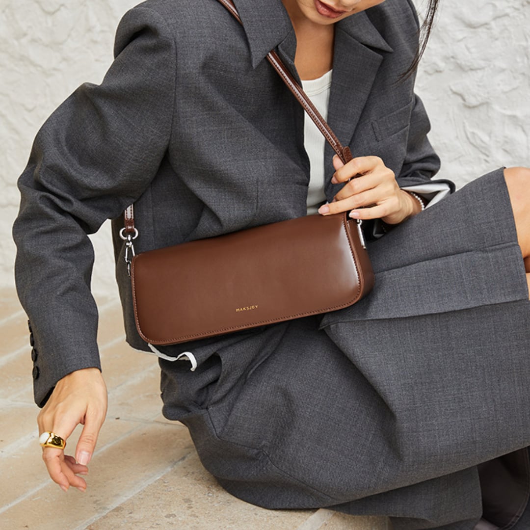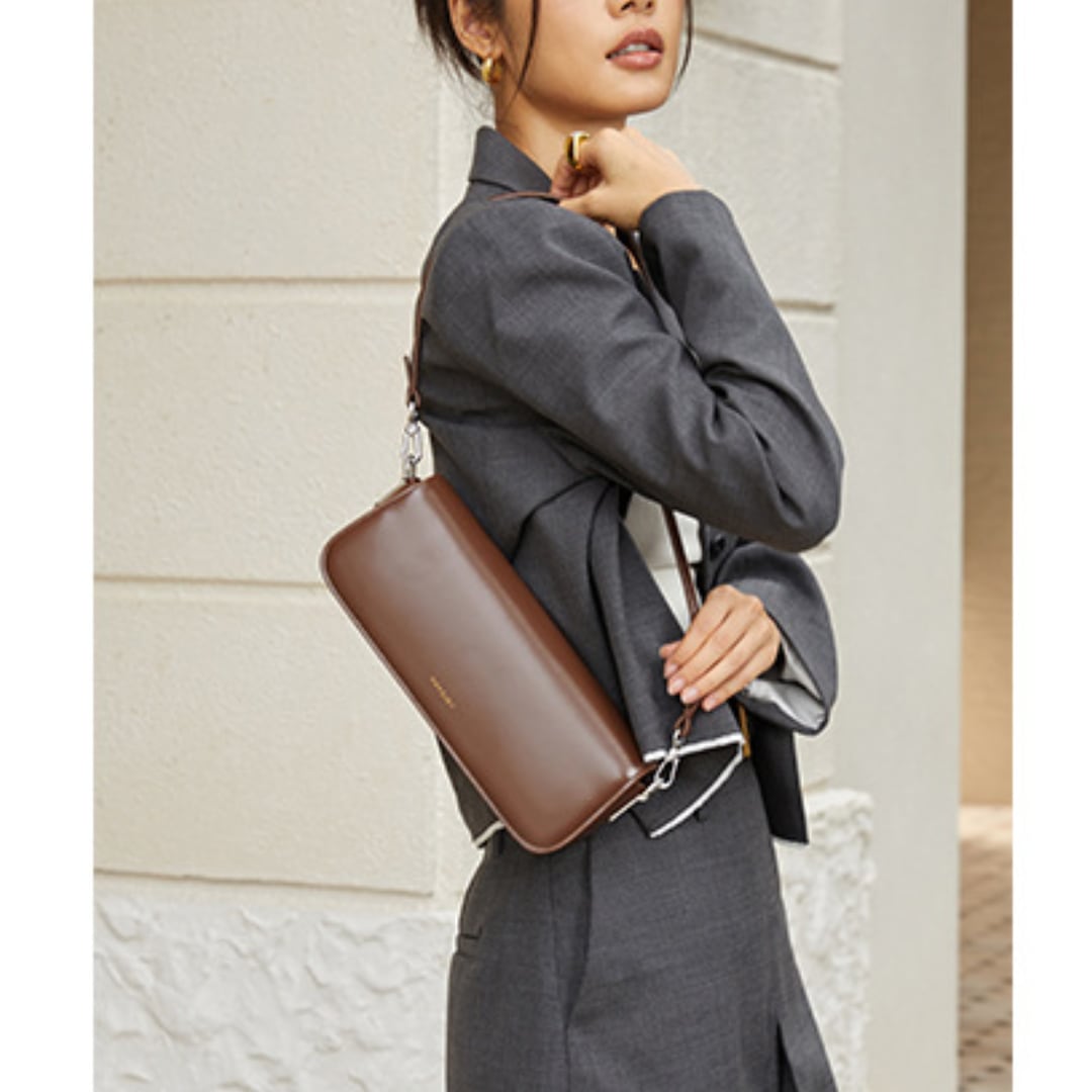 知的で都会的な雰囲気を演出するスマートな長方形バッグ。