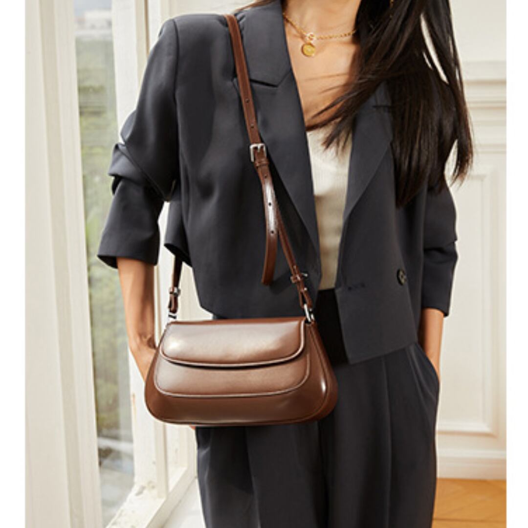 Round curve leather shoulder bag G1059