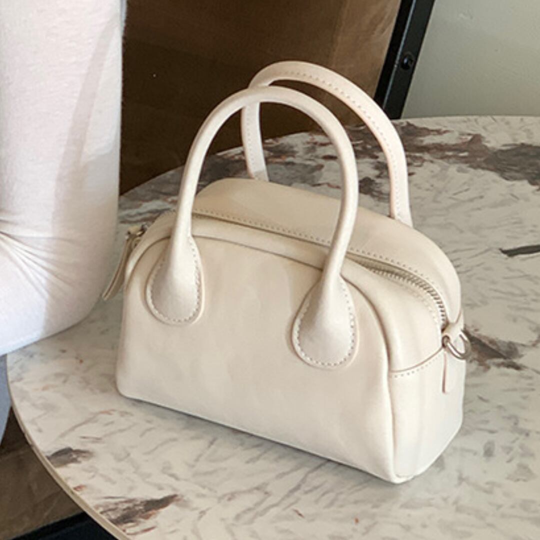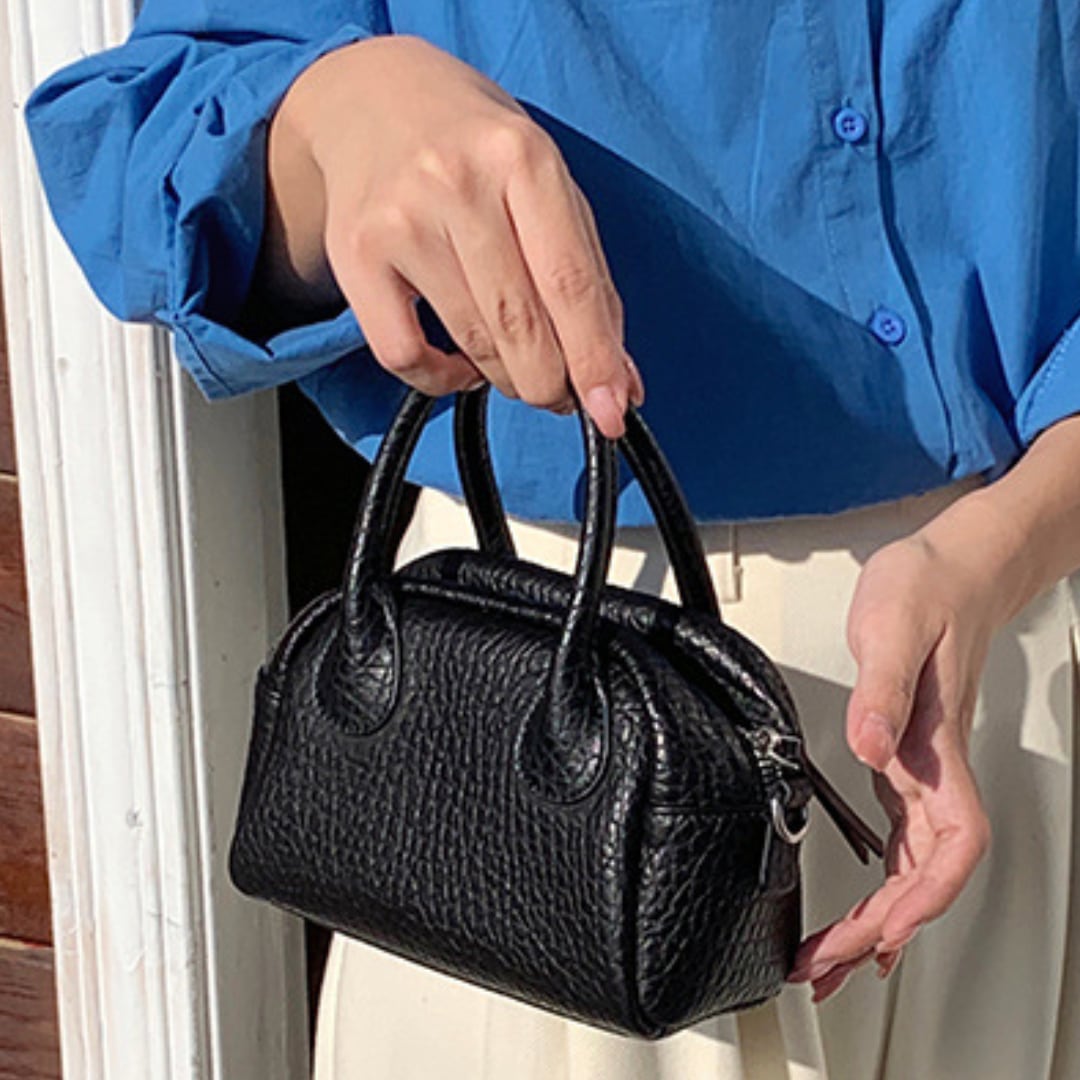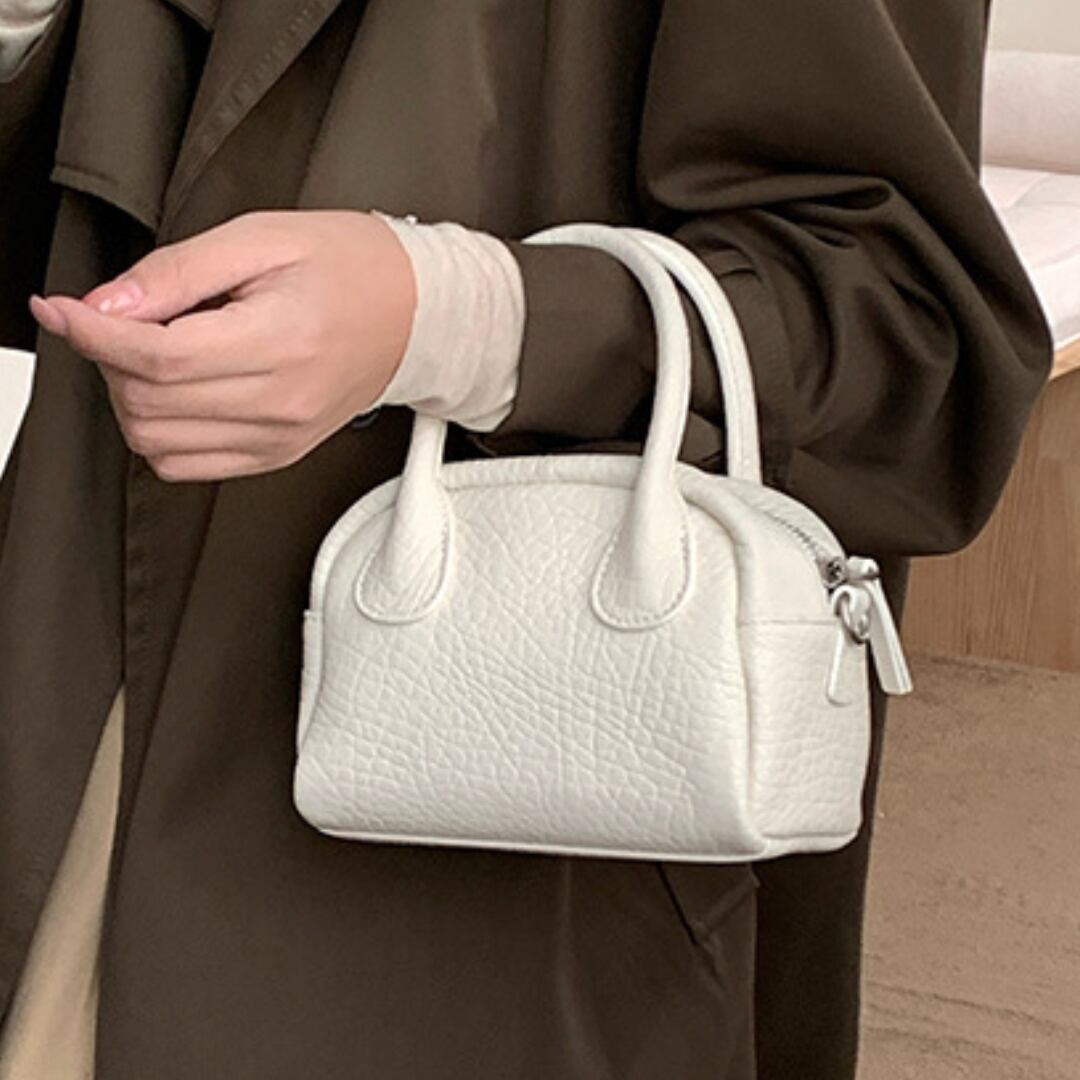 ミニマルなサイズ感で持ち歩きやすいハンドショルダーバッグ。