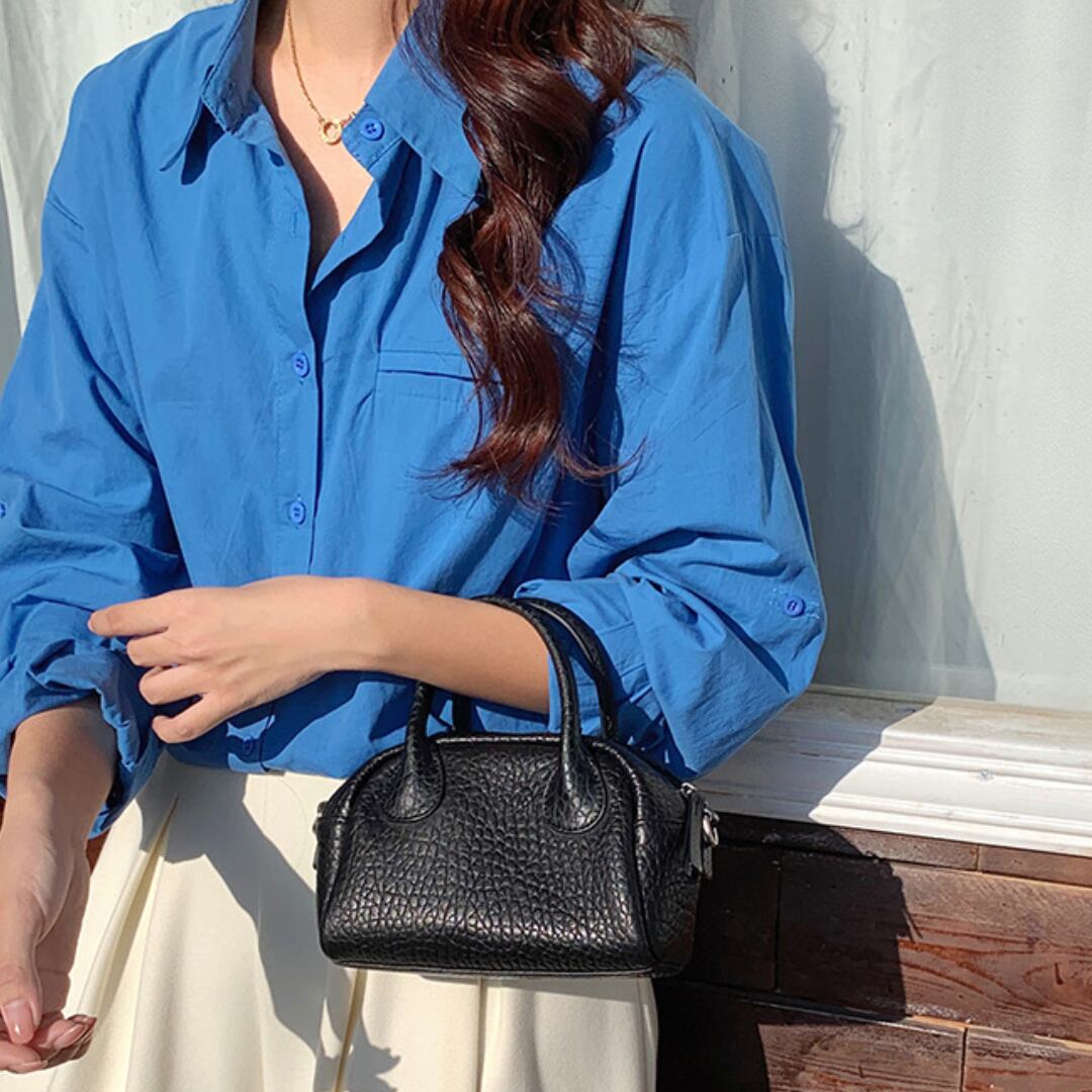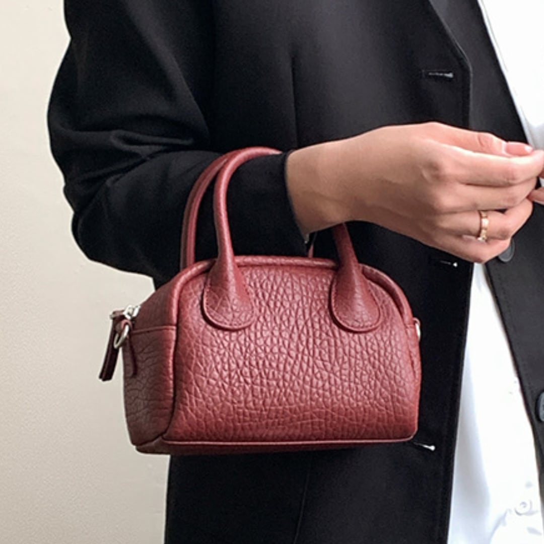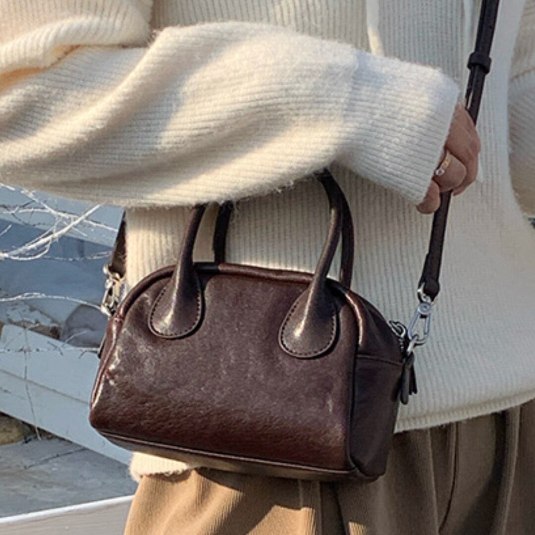ミニマルなサイズ感で持ち歩きやすいハンドショルダーバッグ。