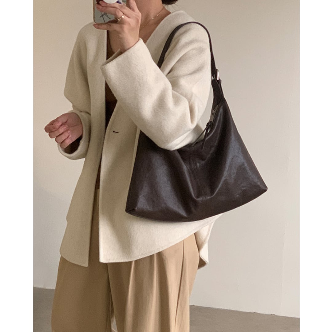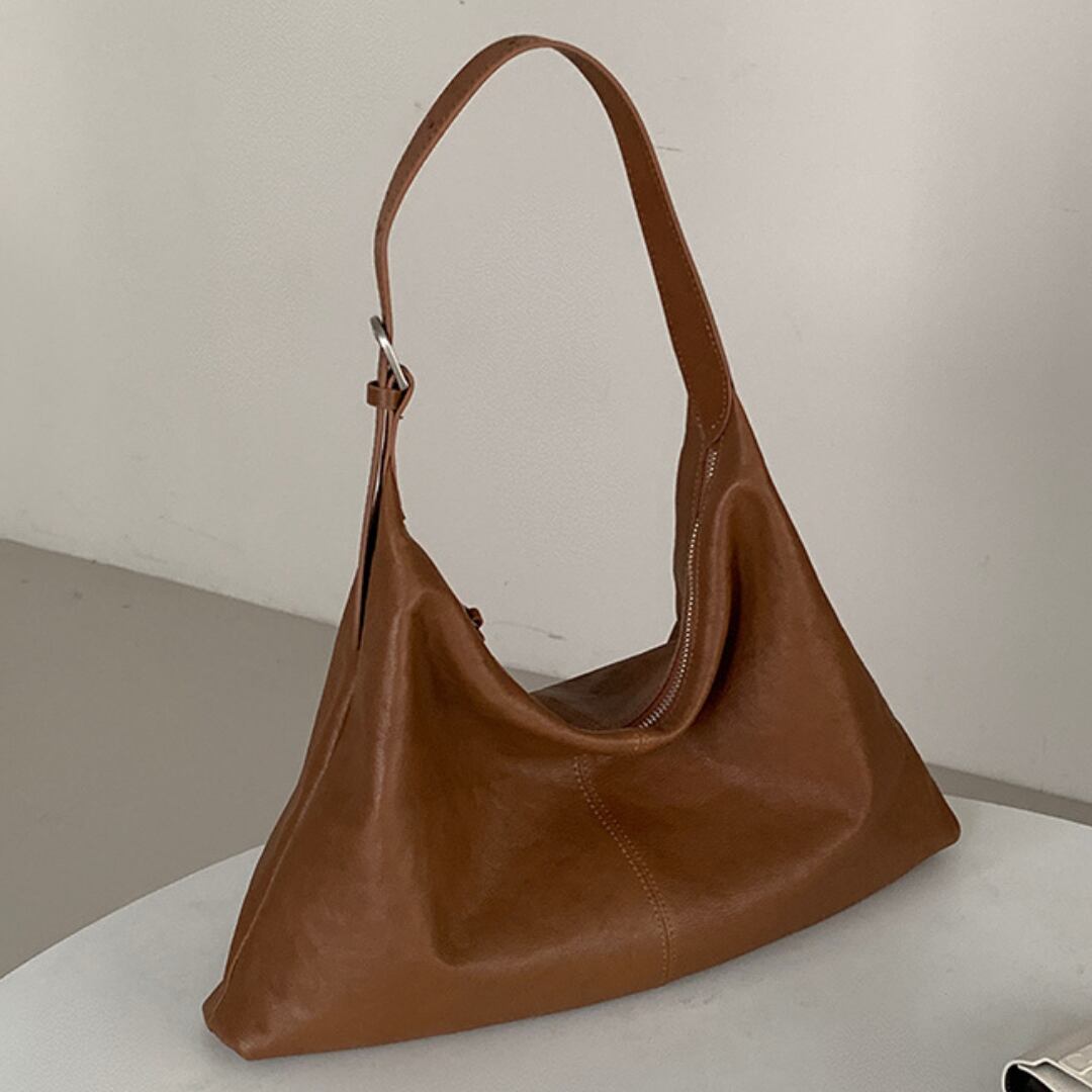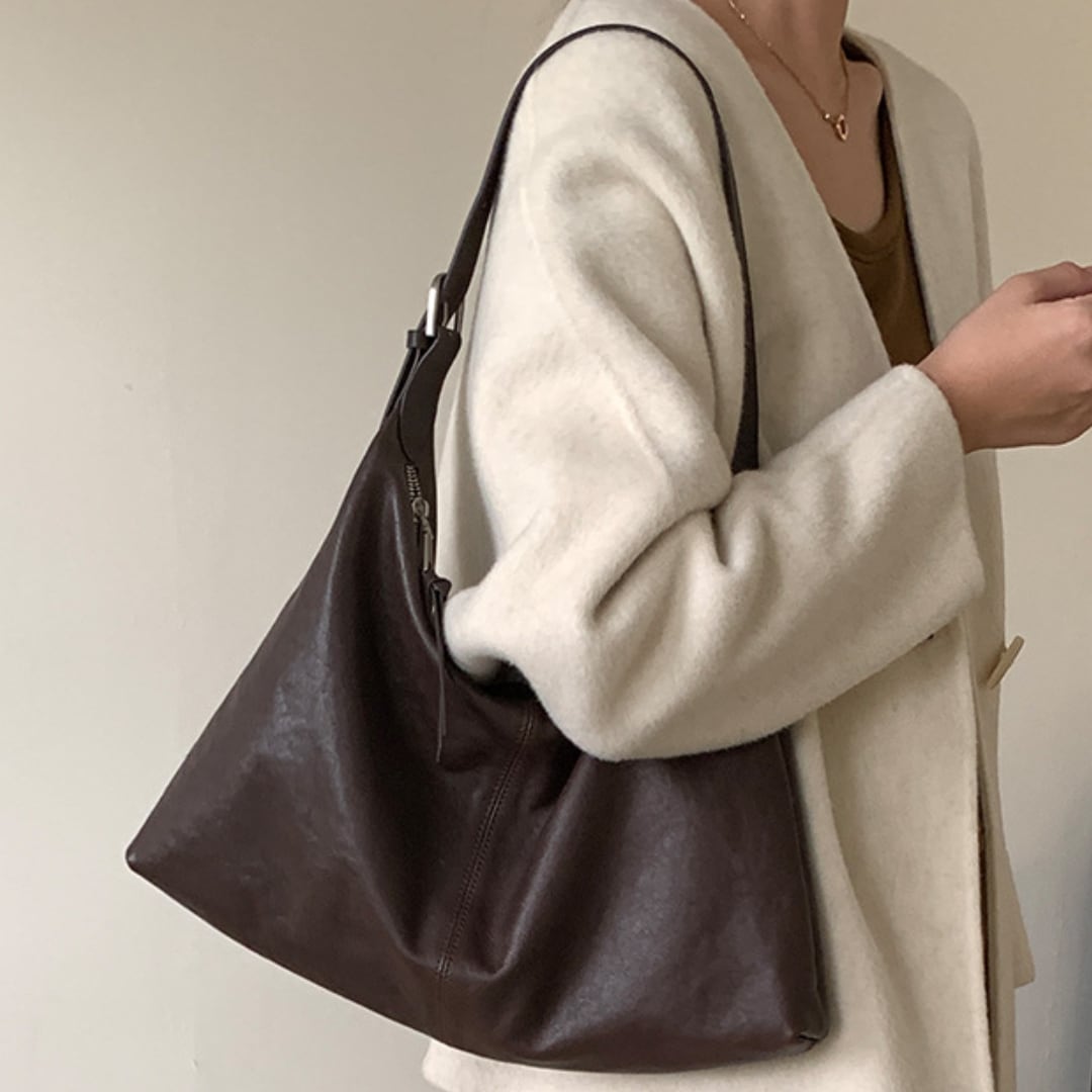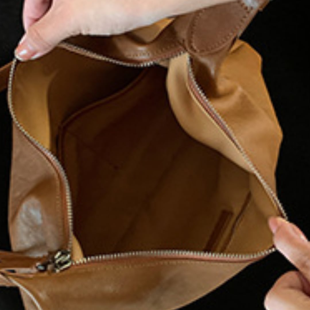植物タンニンなめしを施した牛革のショルダーバッグ。