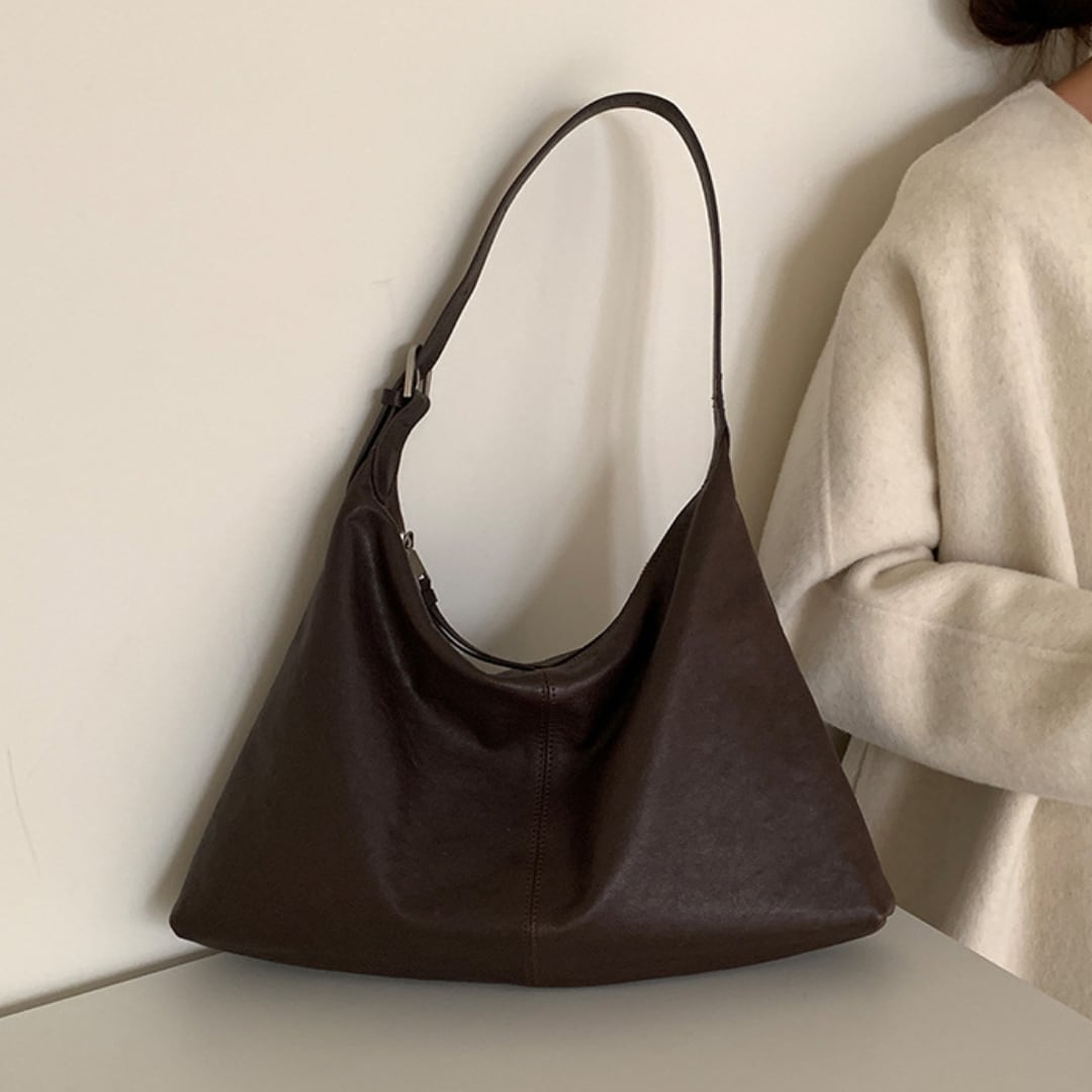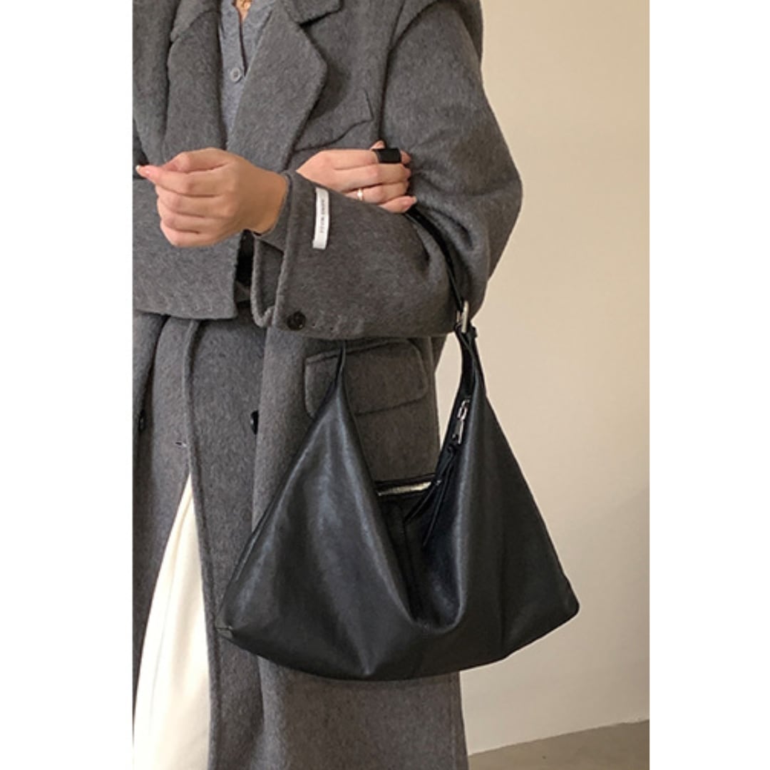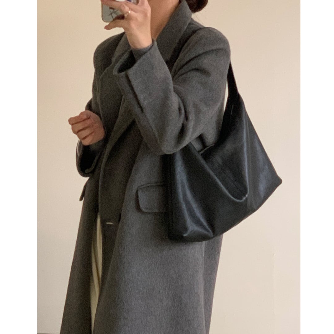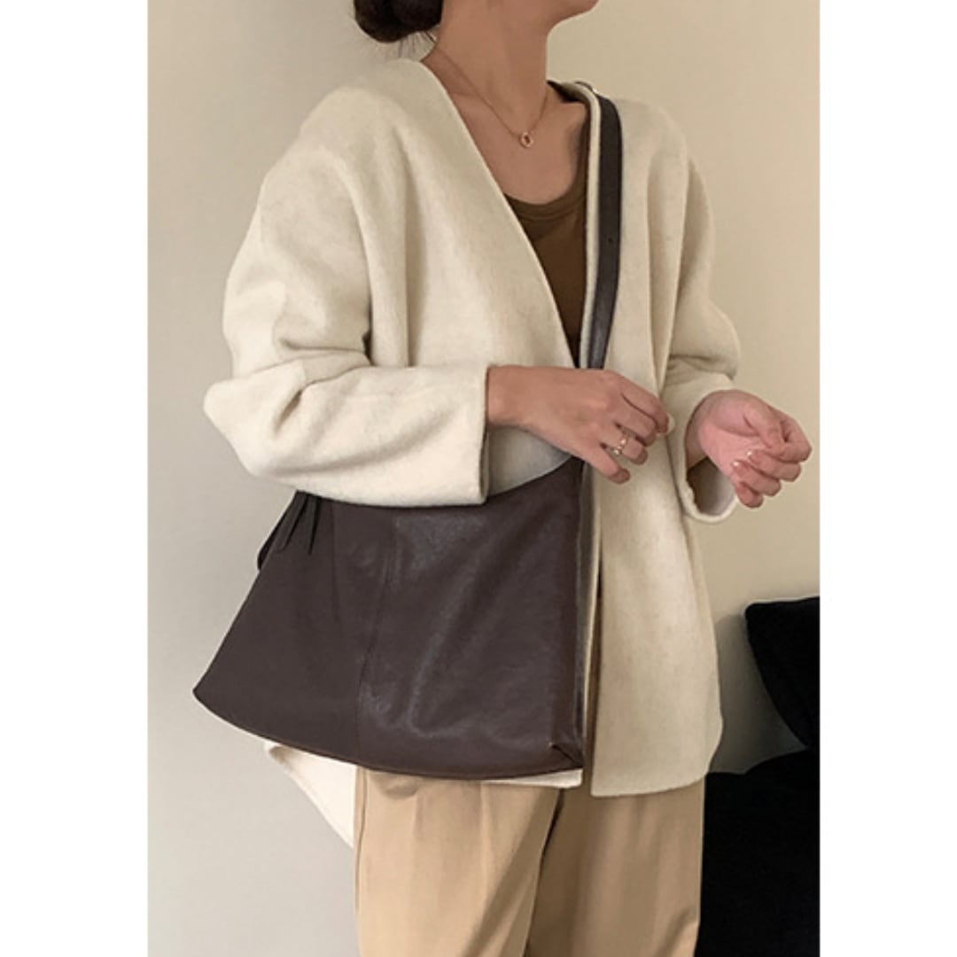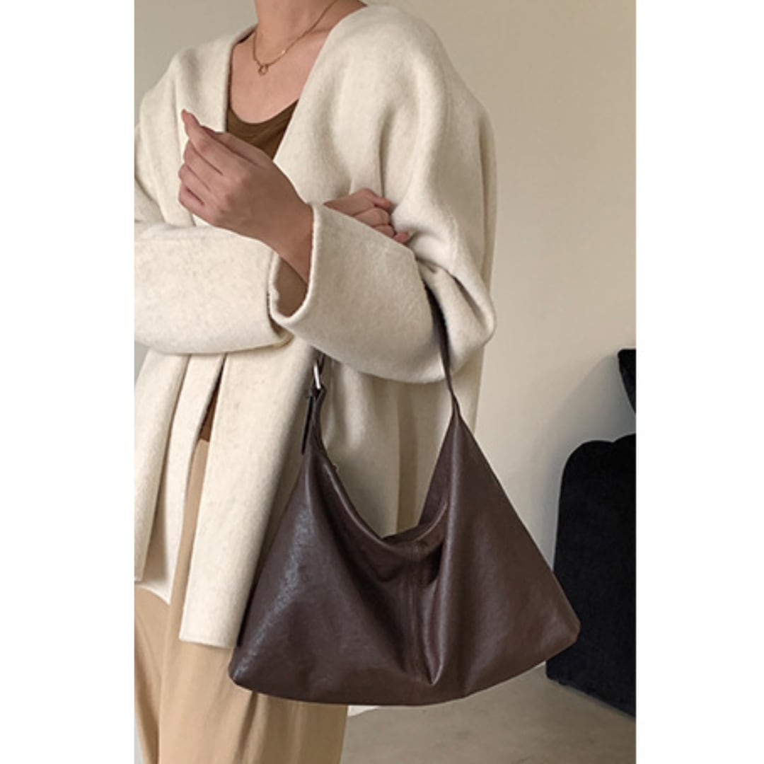 植物タンニンなめしを施した牛革のショルダーバッグ。
