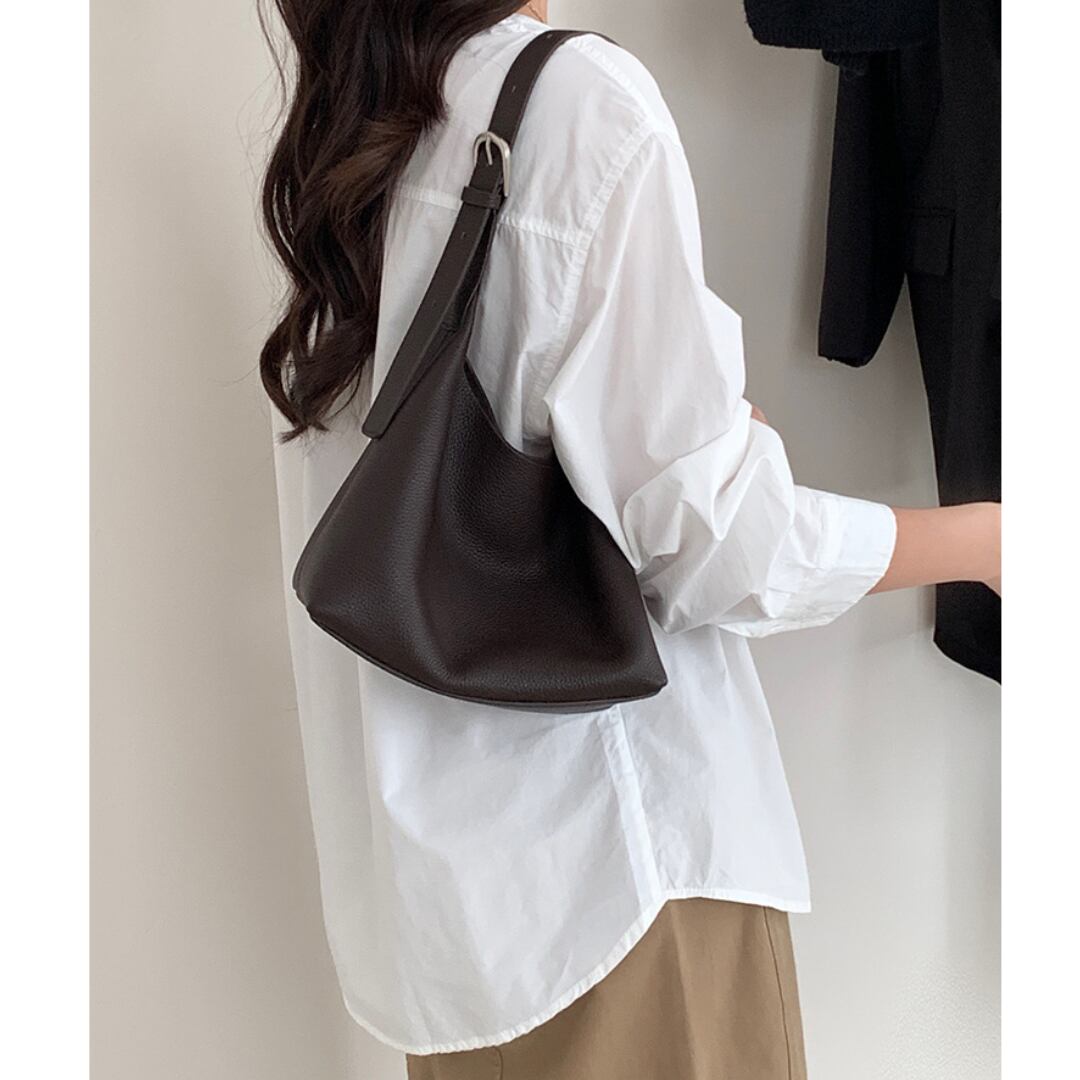 スタイリングに差がつくトップグレイン牛革のワンショルダーバッグ。