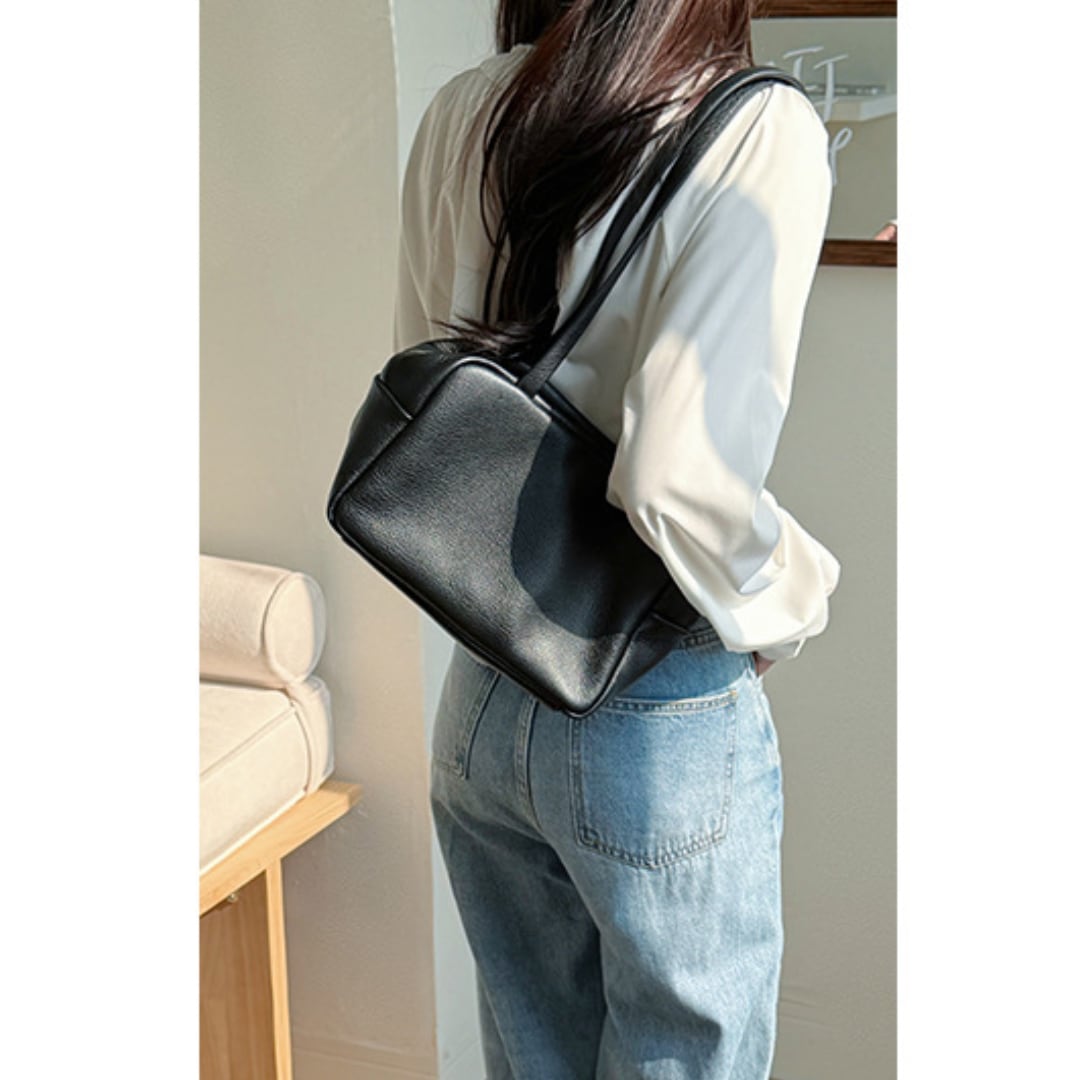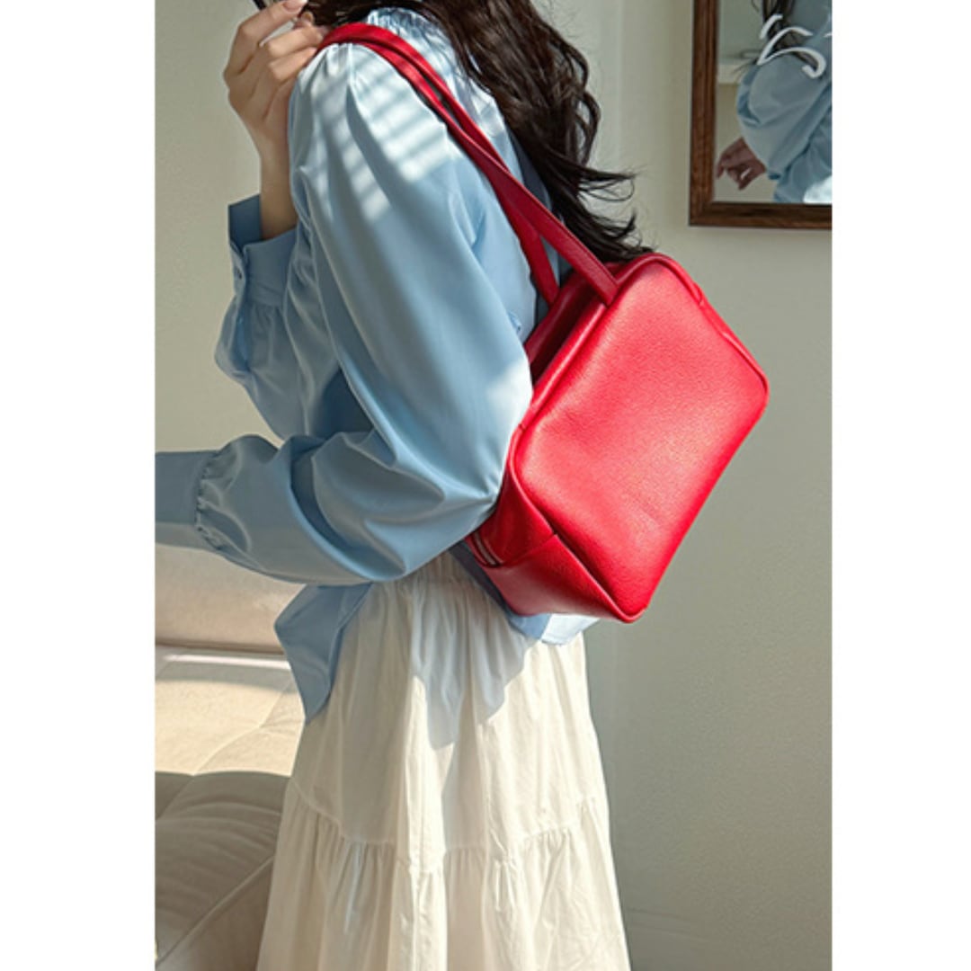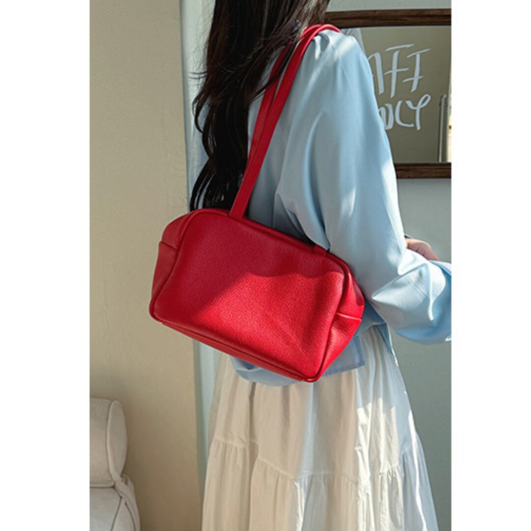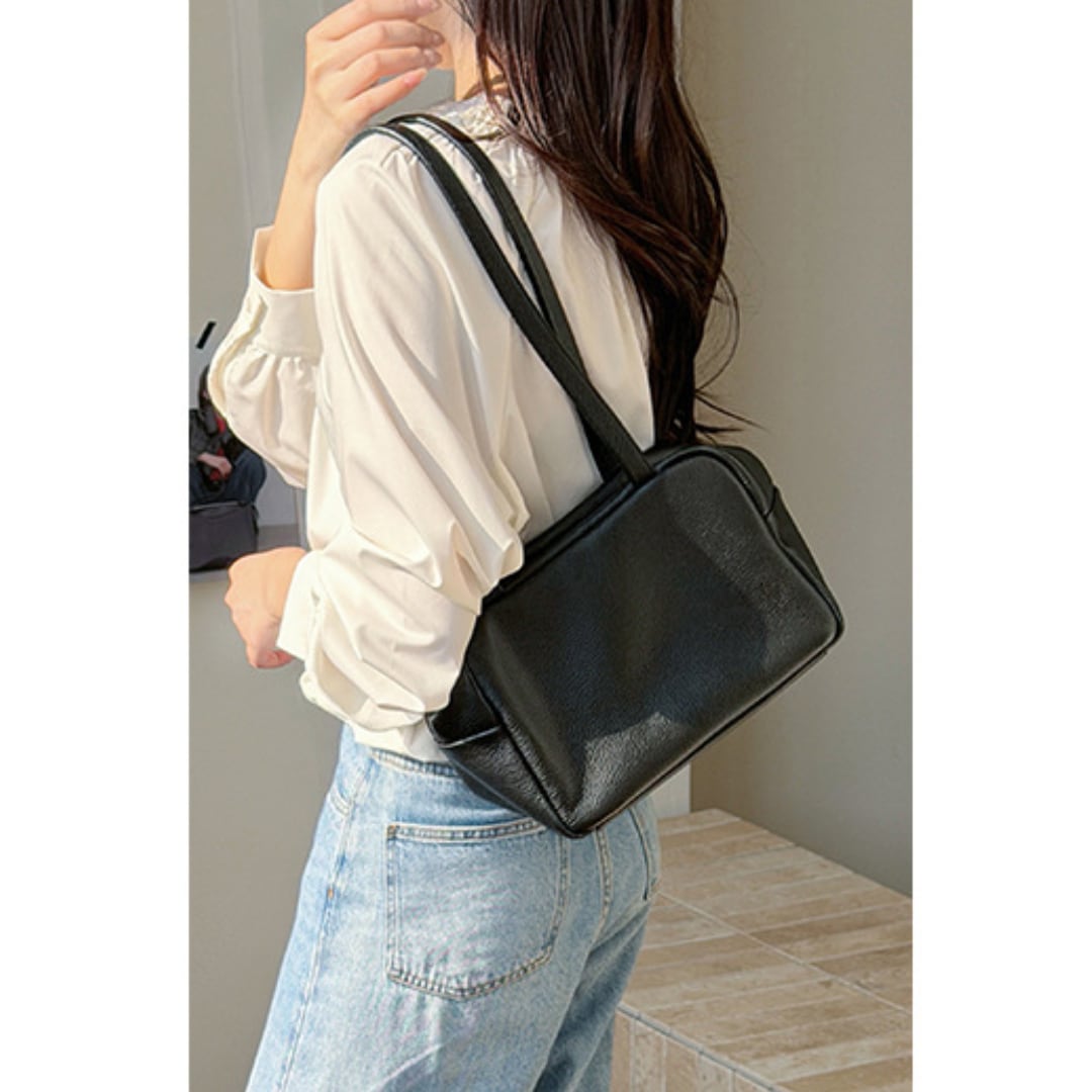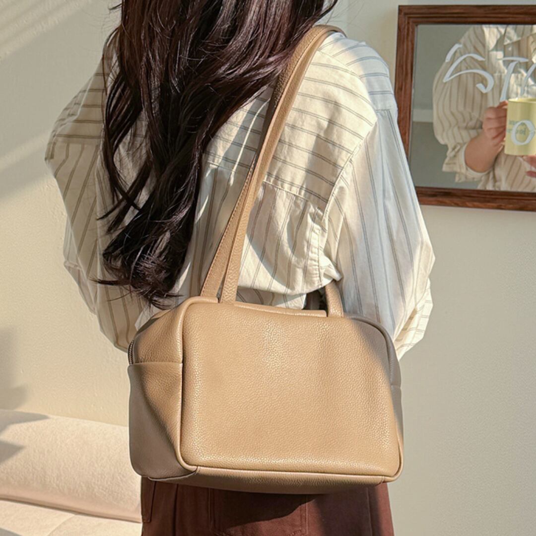 上品なシボ感で、大きすぎず小さすぎないサイズに仕上がっています。幅広いコーディネートに合わせやすく、定期・ハンカチ・ティッシュなどをサッと取り出しやすいオープンポケット付きです。