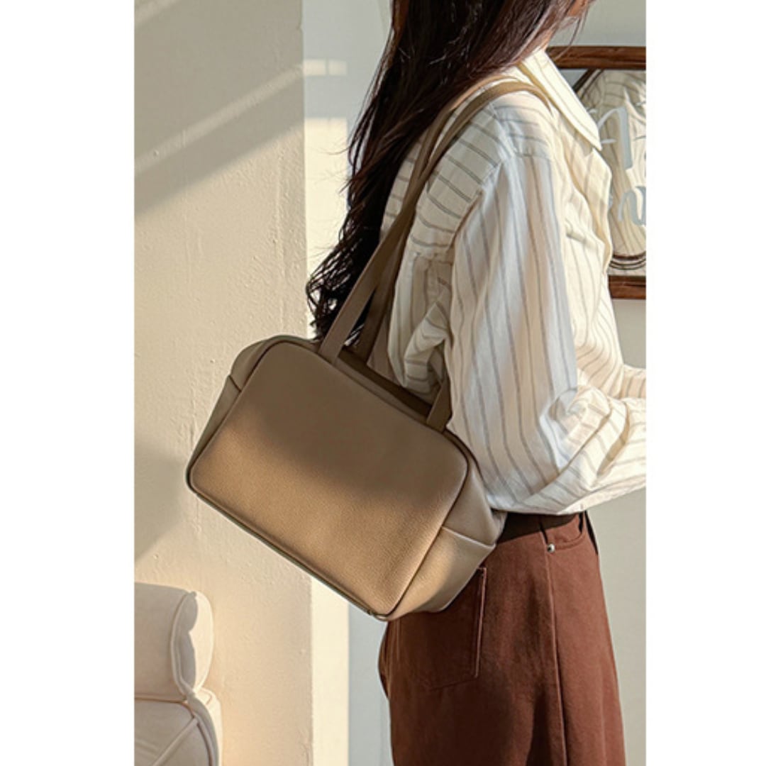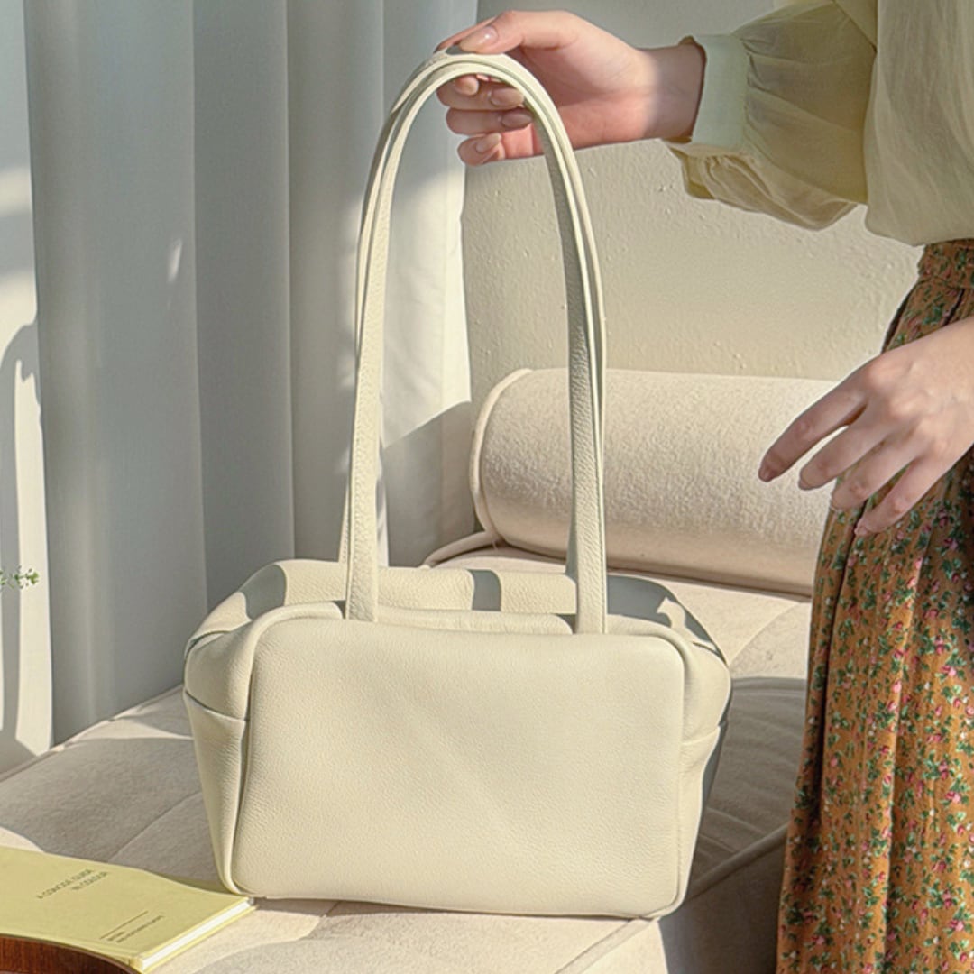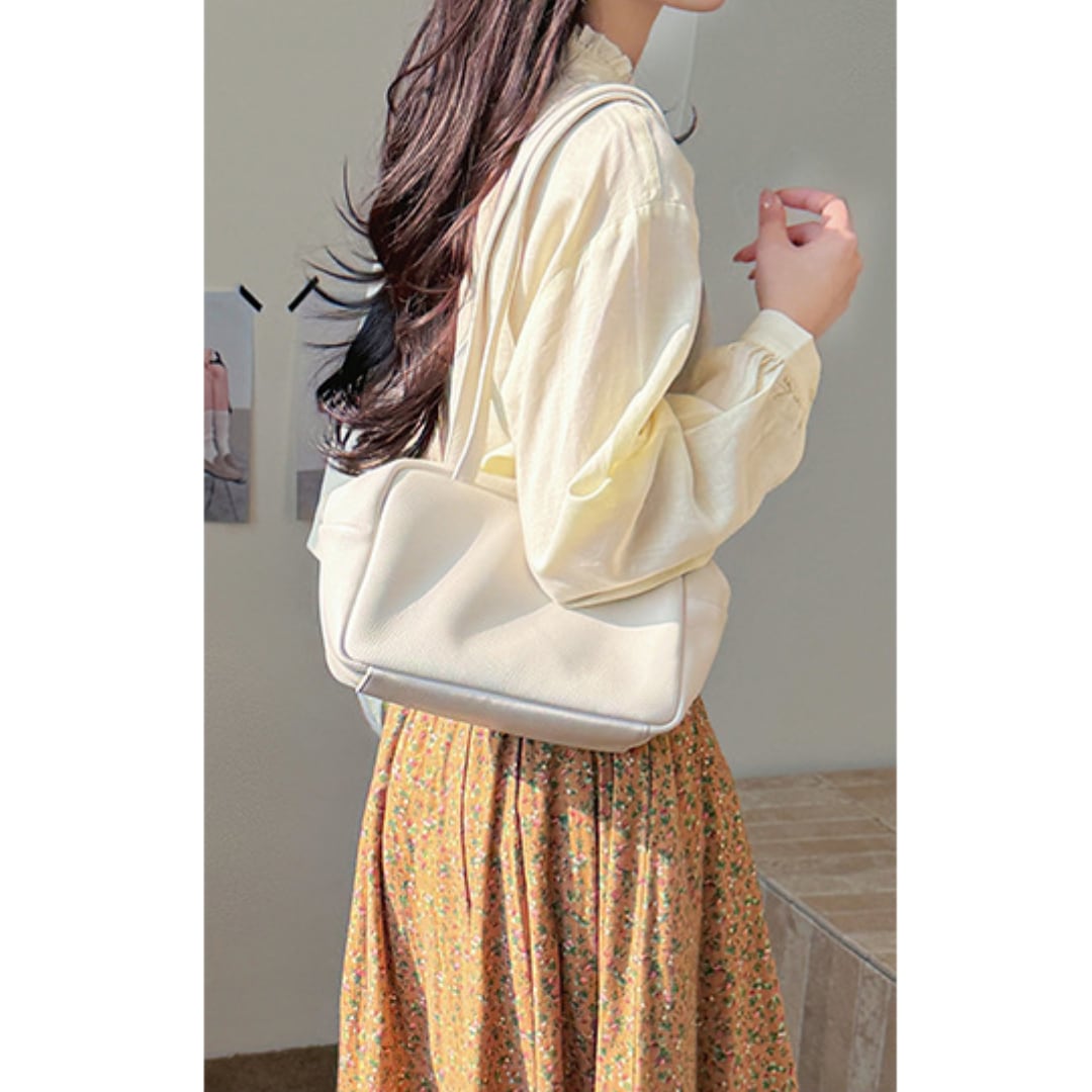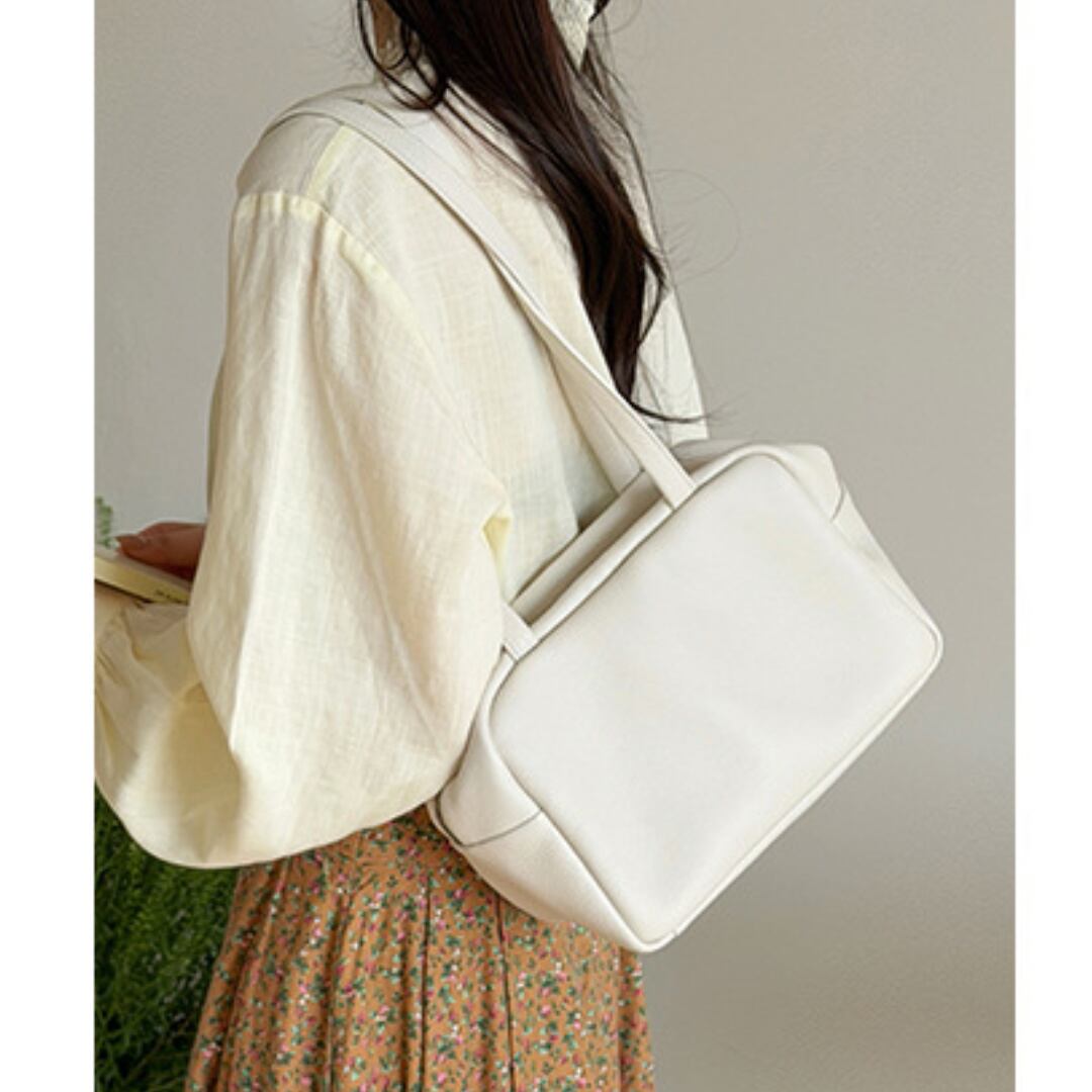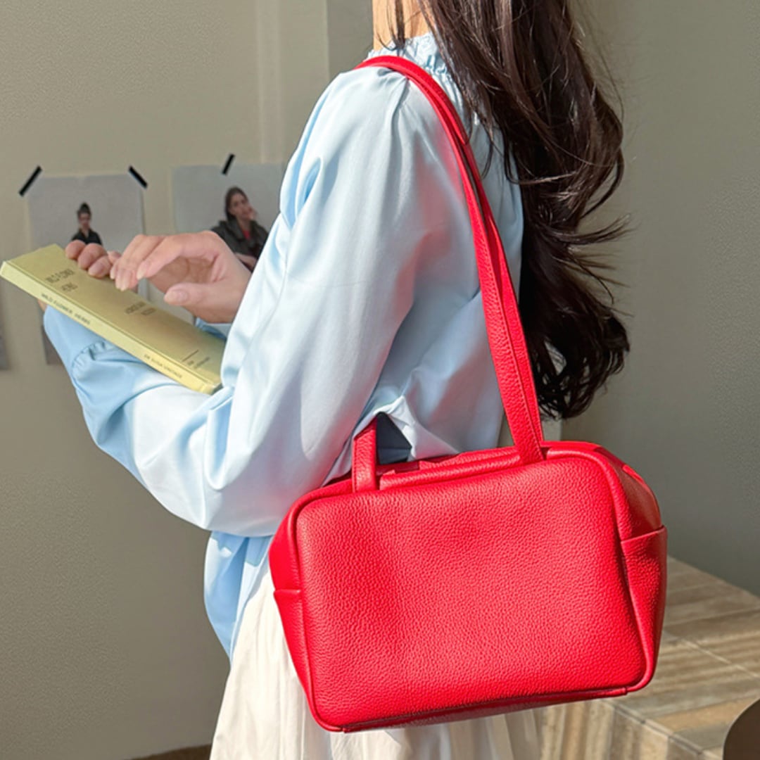 上品なシボ感で、大きすぎず小さすぎないサイズに仕上がっています。幅広いコーディネートに合わせやすく、定期・ハンカチ・ティッシュなどをサッと取り出しやすいオープンポケット付きです。