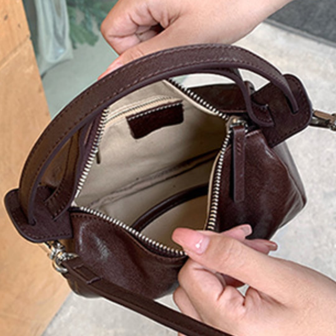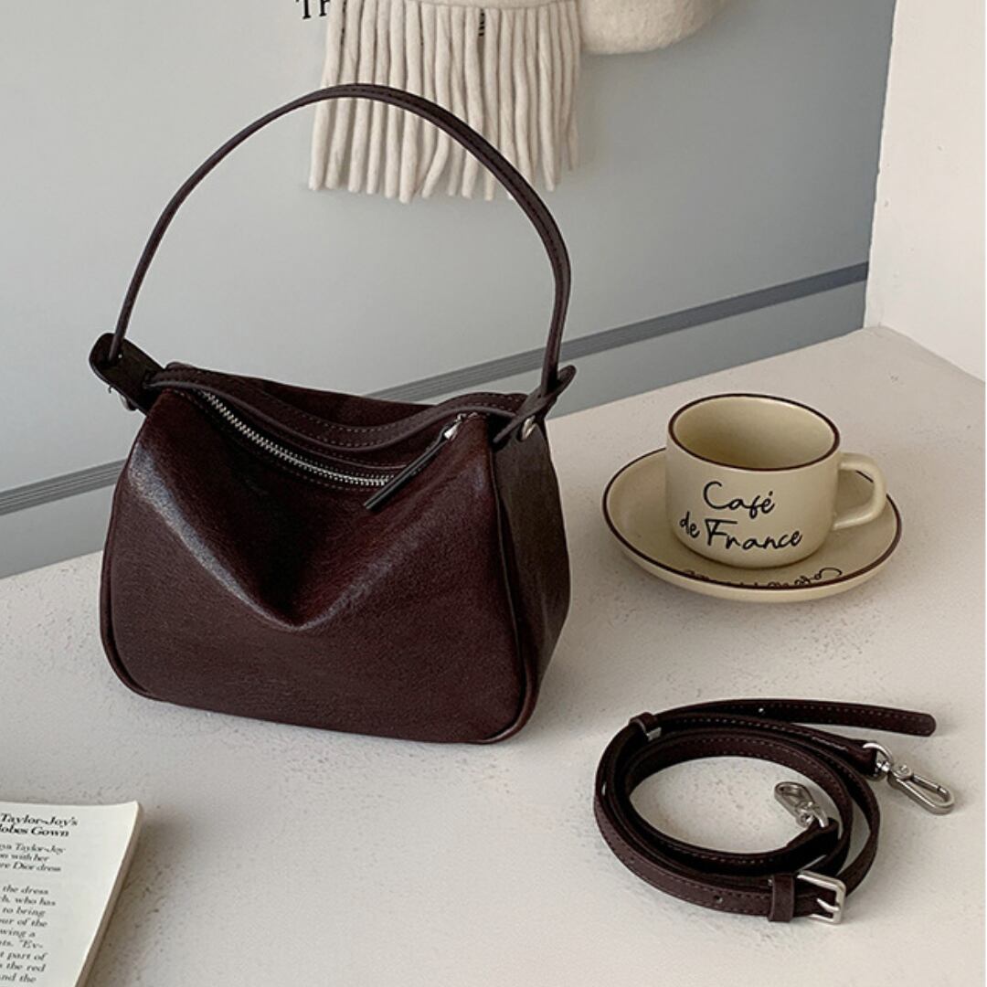 しっとりとした艶めきで使うほど味わいが増す植物タンニンなめし。お出かけ先に合わせて持ち方を変えられる2way仕様で、ドレープがこなれ感を漂わせます。