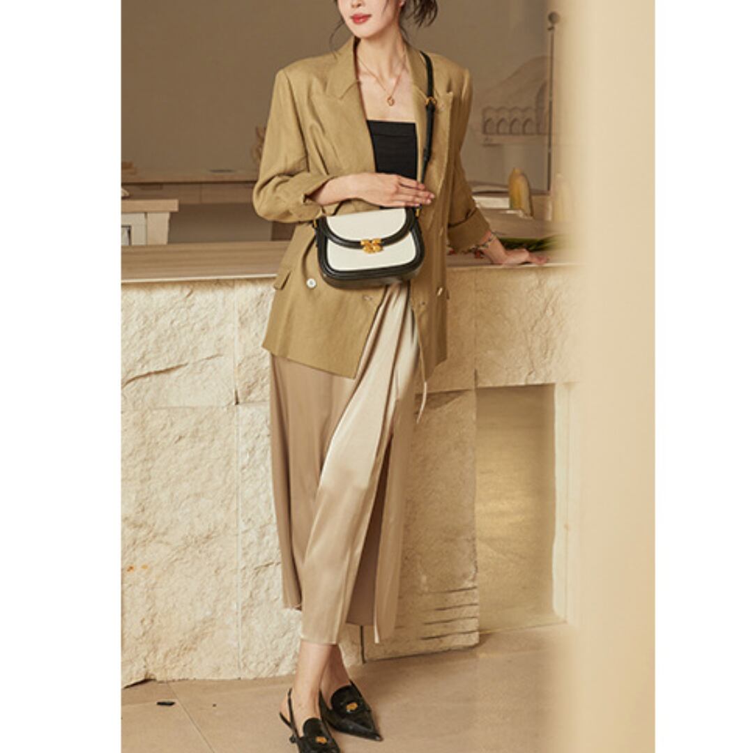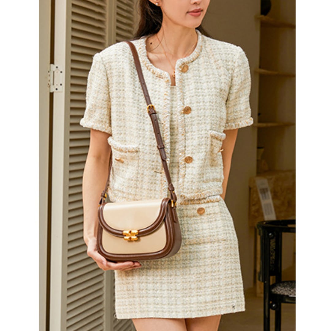 クラシカルさと女性らしいやわらかな雰囲気を併せ持ち、フラップのゴールド金具が華やか。デートや女子会にもぴったりな、お出掛け気分を高めてくれるバッグです。