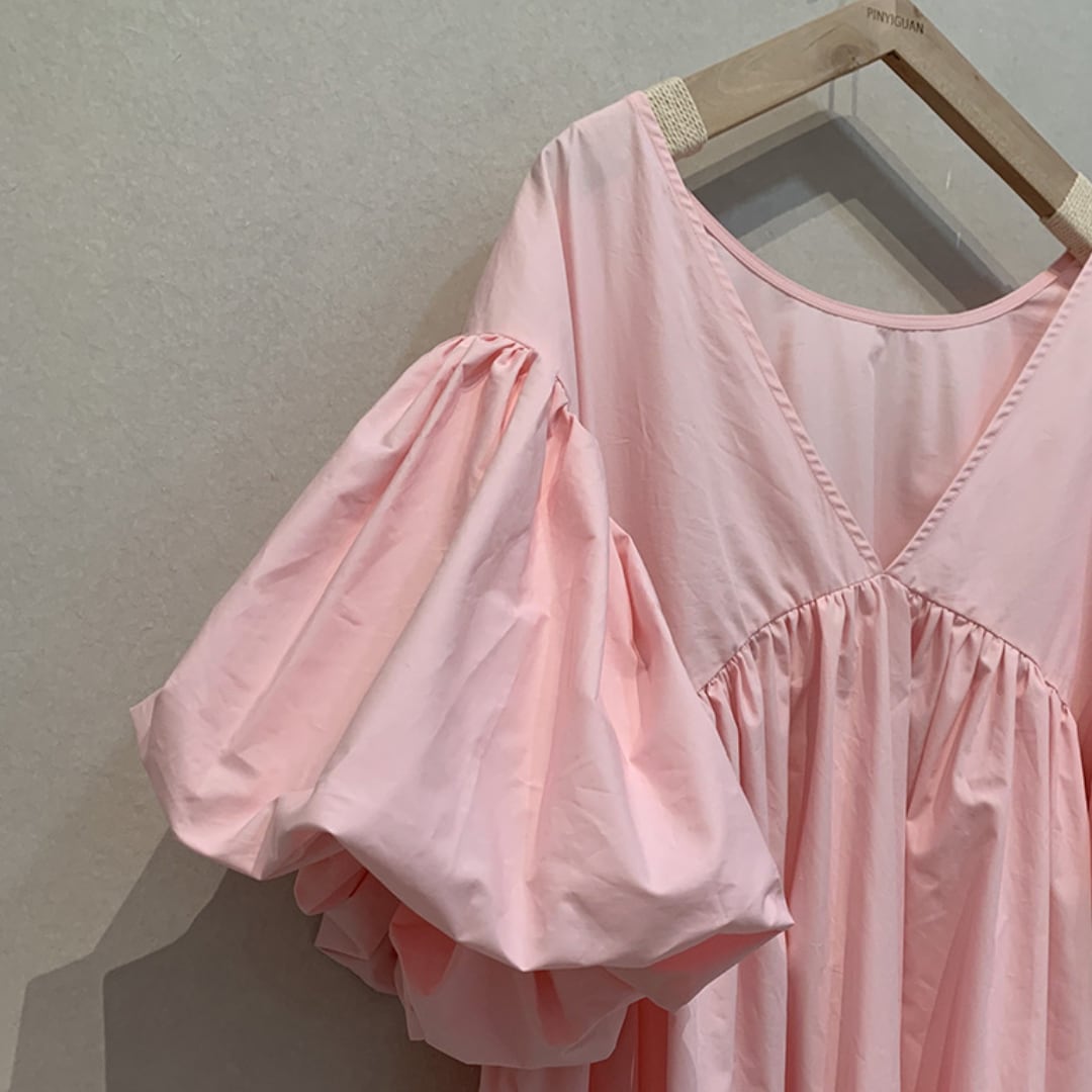Volume puff sleeves gathered one piece G1111