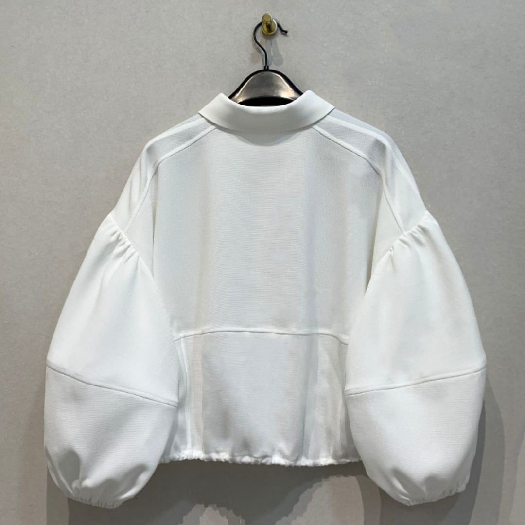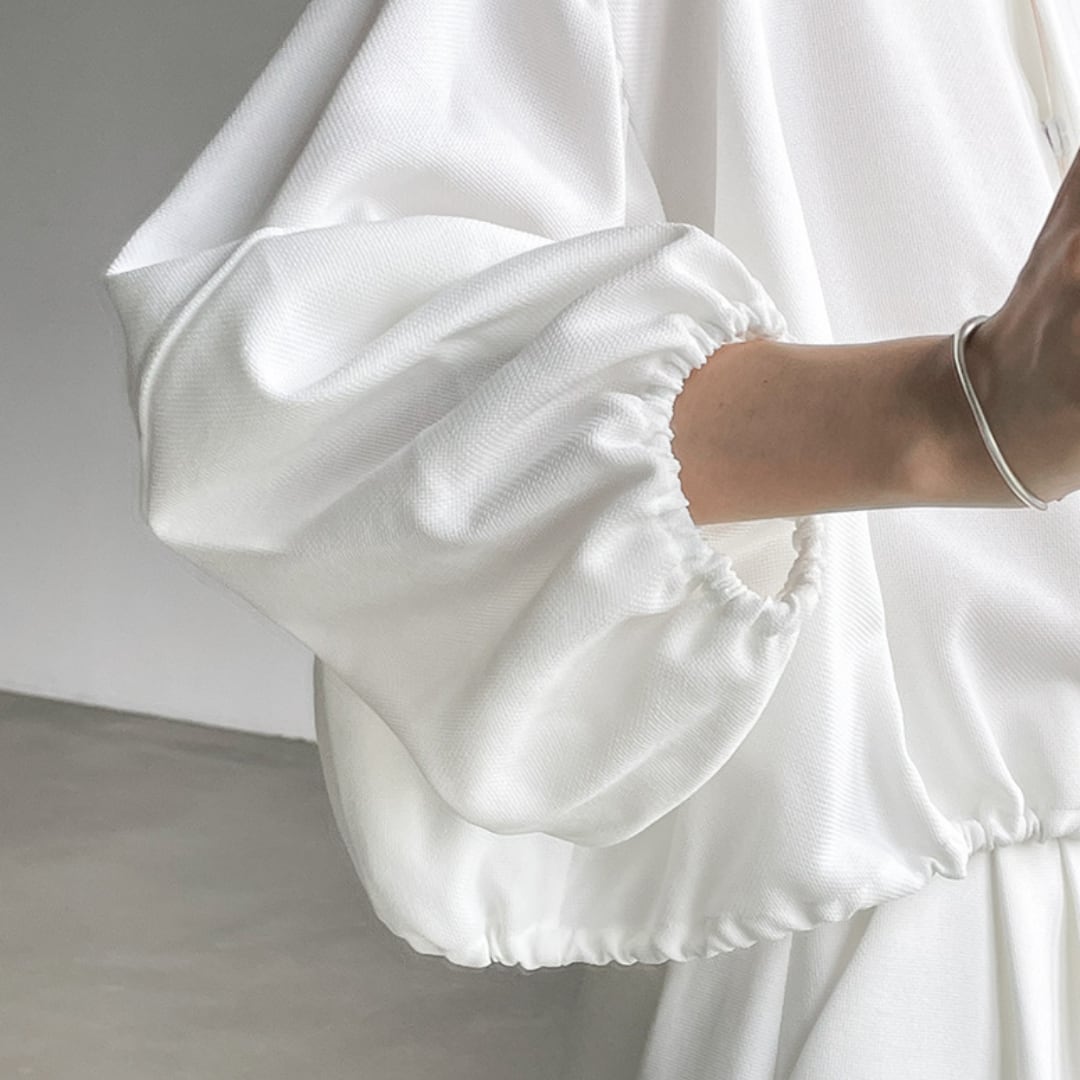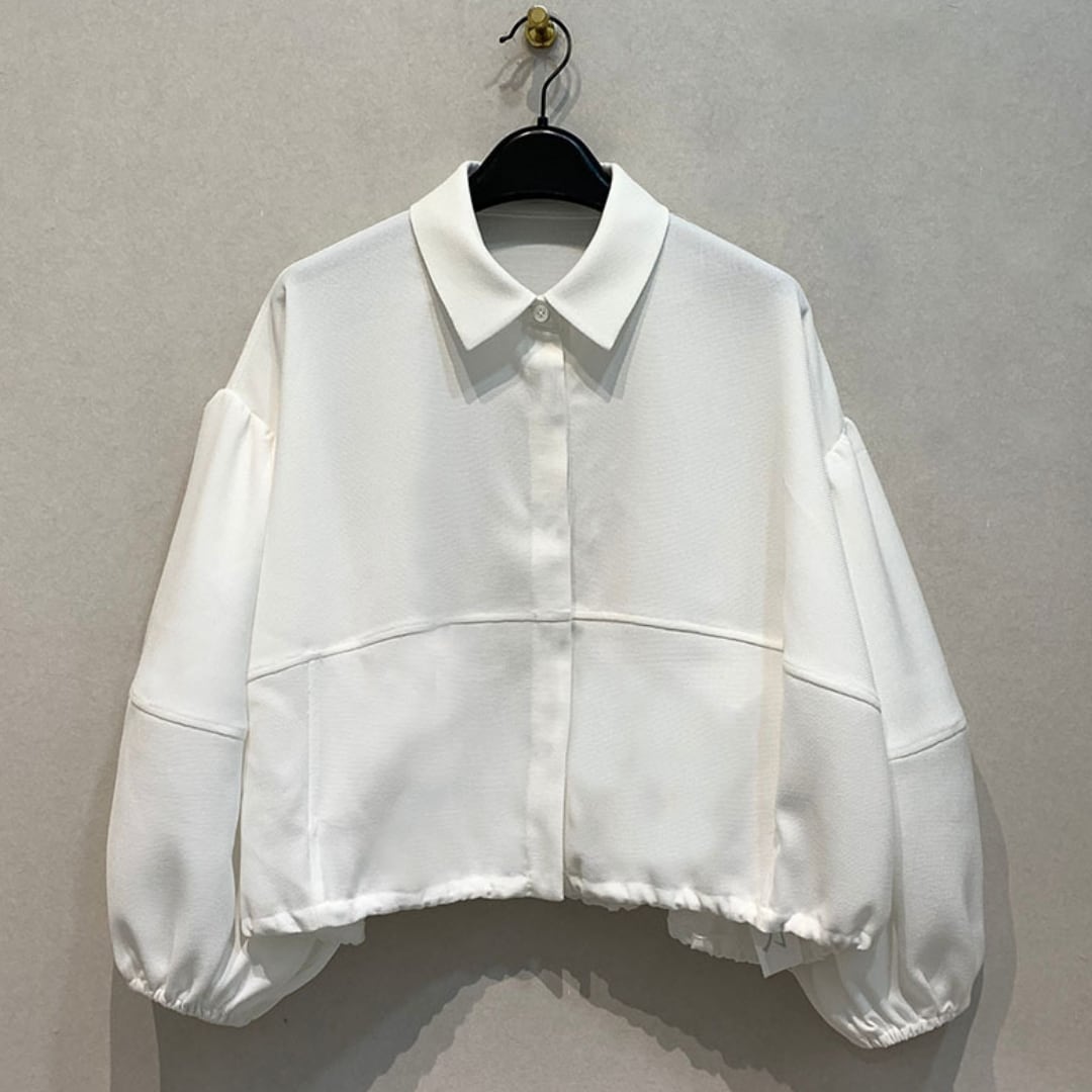 エアリーなバルーンスリーブとウエストを絞れるドロストデザインによって、メリハリを感じるコーデへ。フロントボタンを隠した比翼仕立てでキレイめに着こなせます。