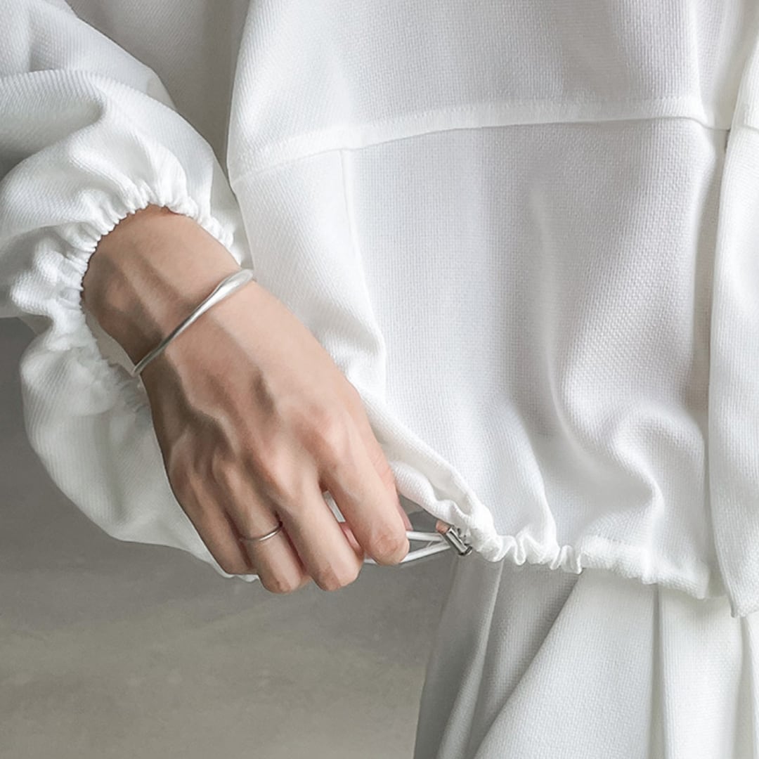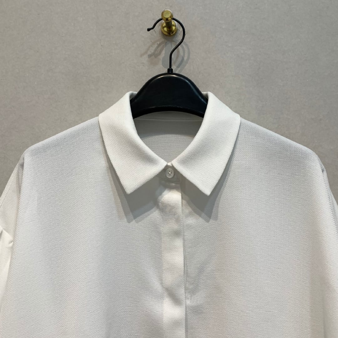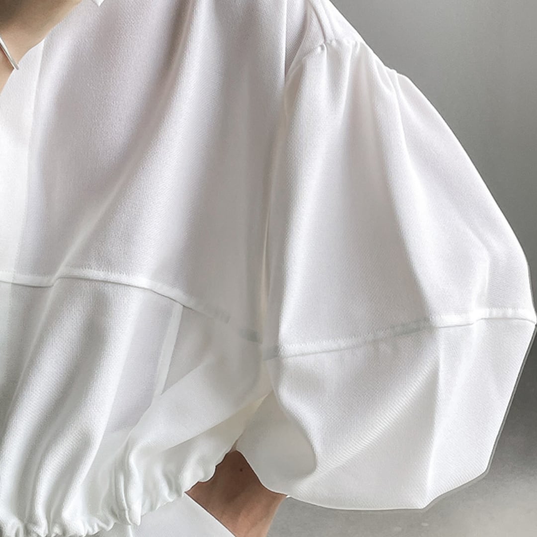 エアリーなバルーンスリーブとウエストを絞れるドロストデザインによって、メリハリを感じるコーデへ。フロントボタンを隠した比翼仕立てでキレイめに着こなせます。