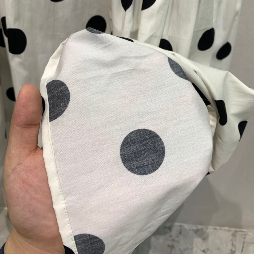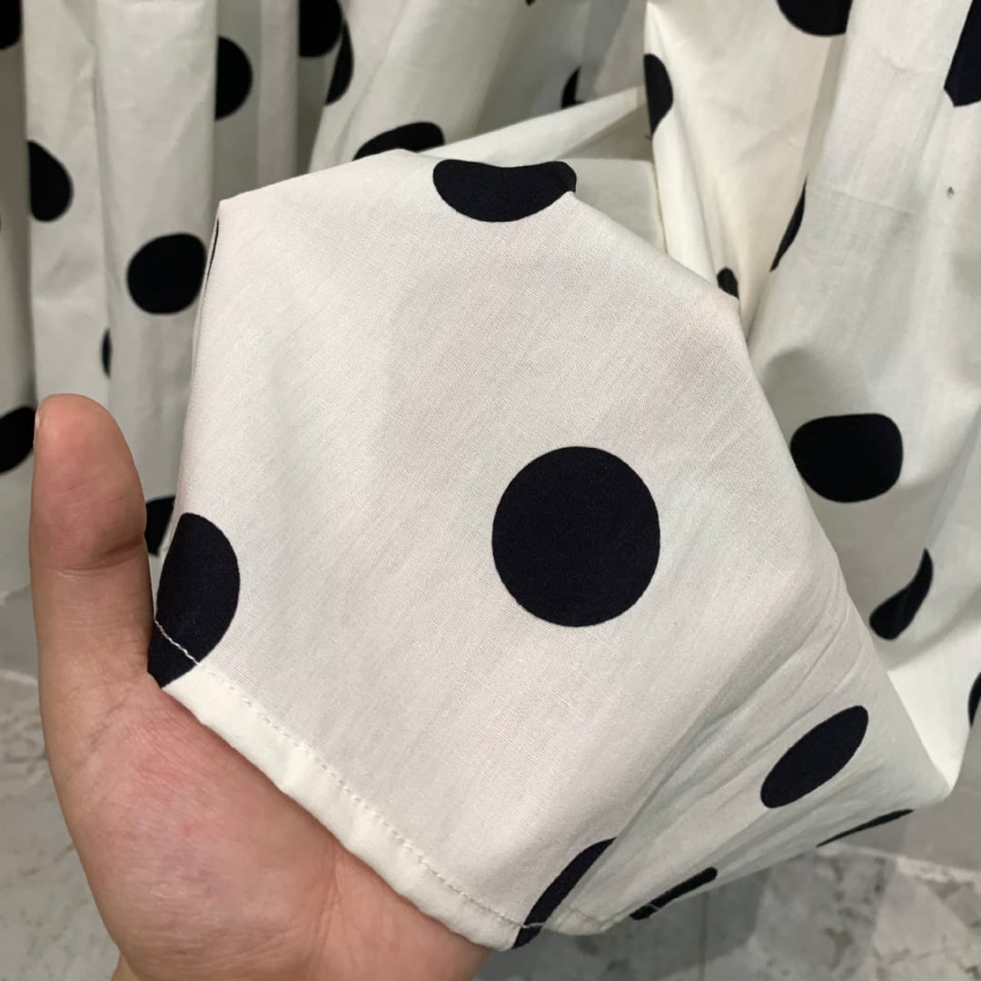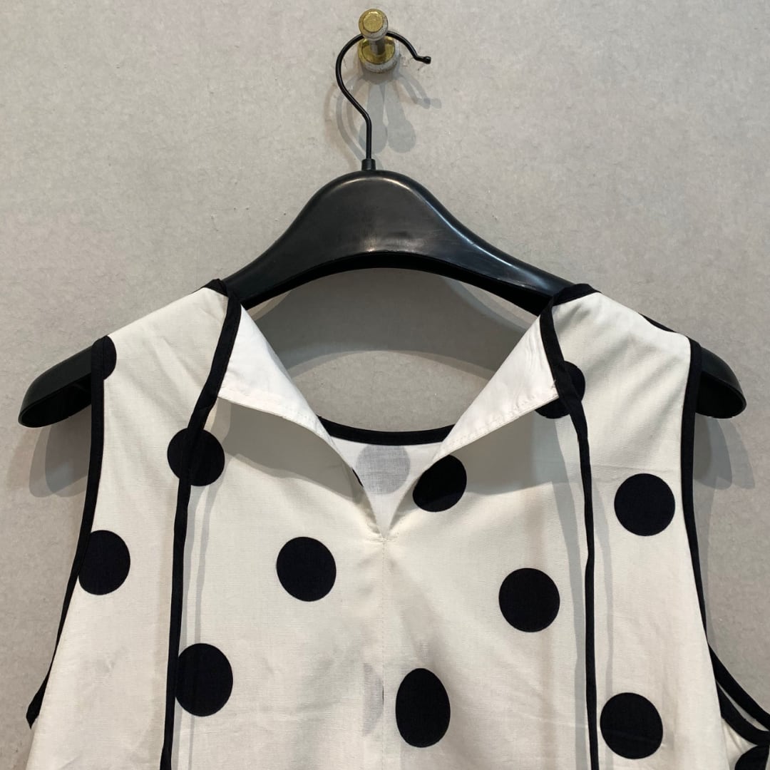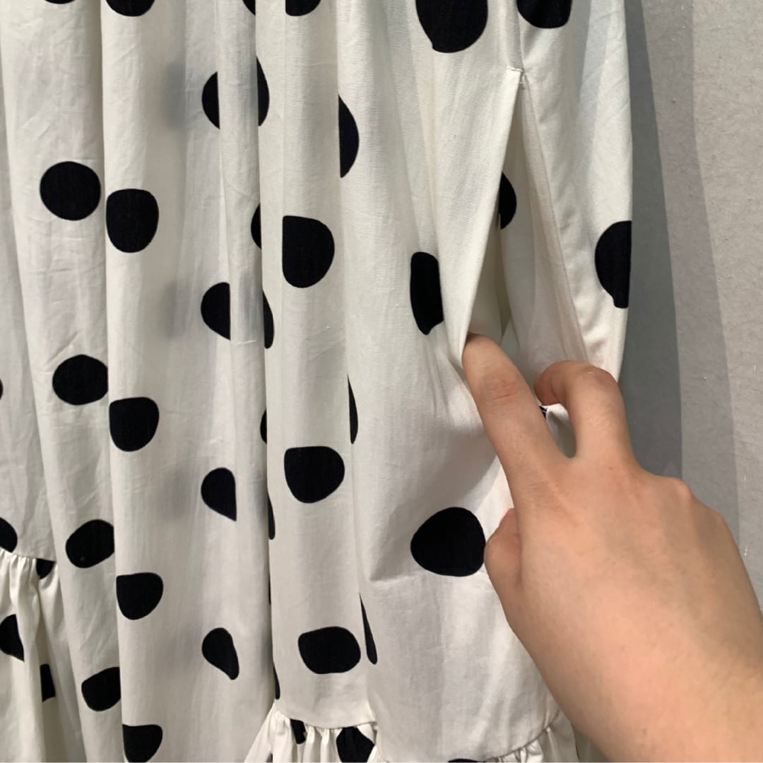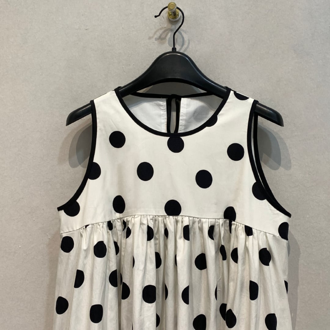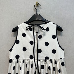爽やかな雰囲気が漂うモノトーンの水玉柄ロングワンピース。