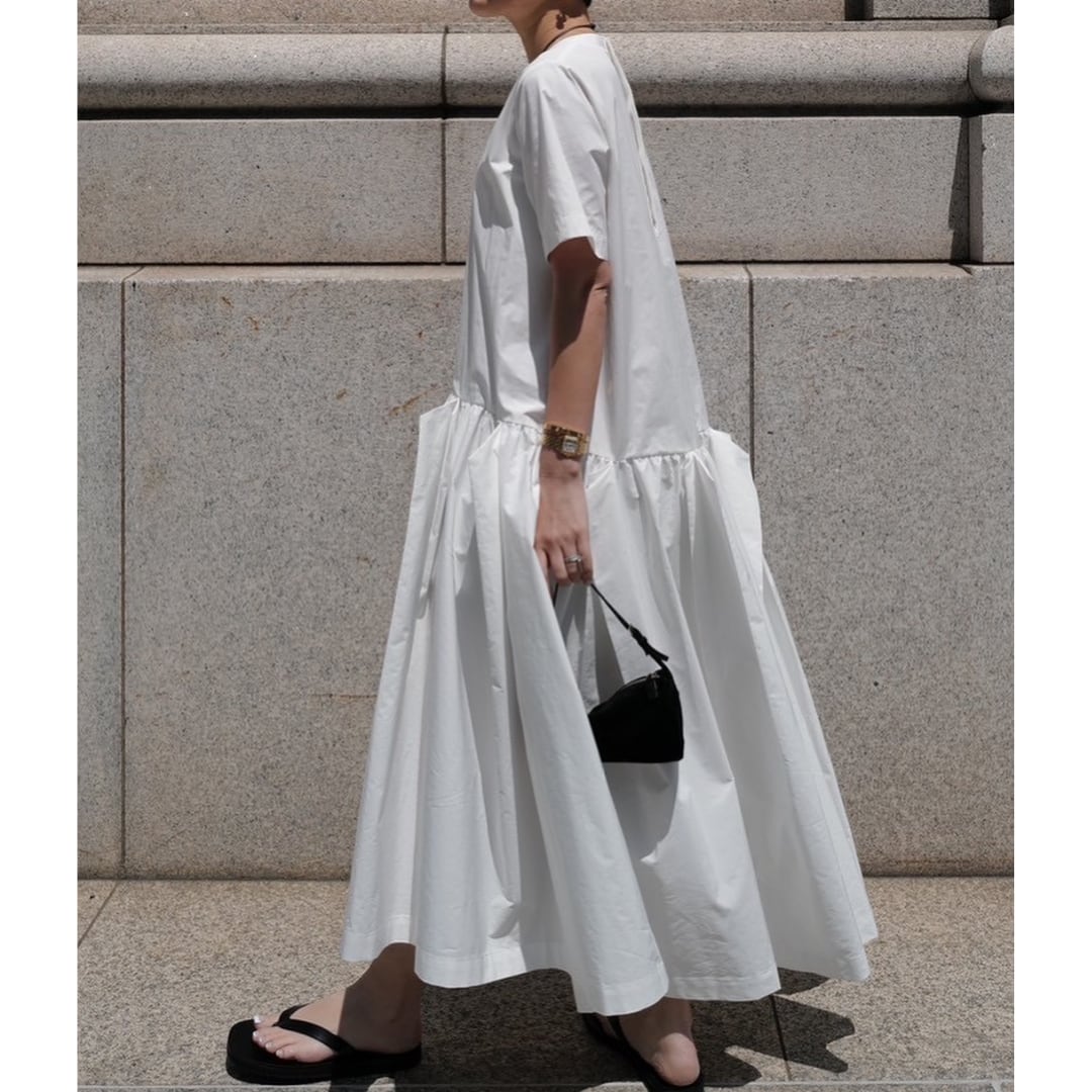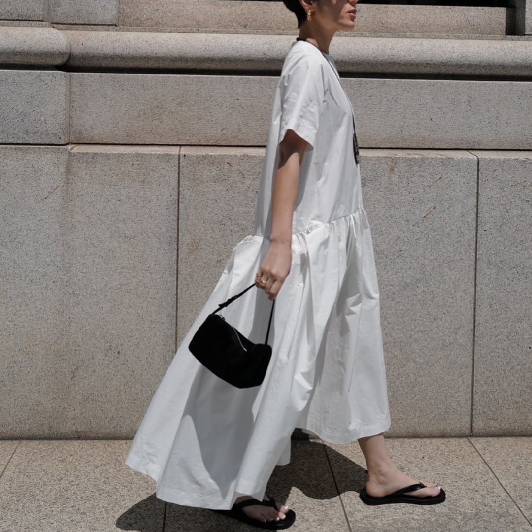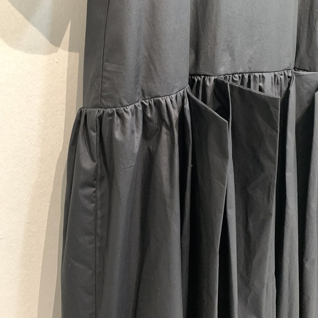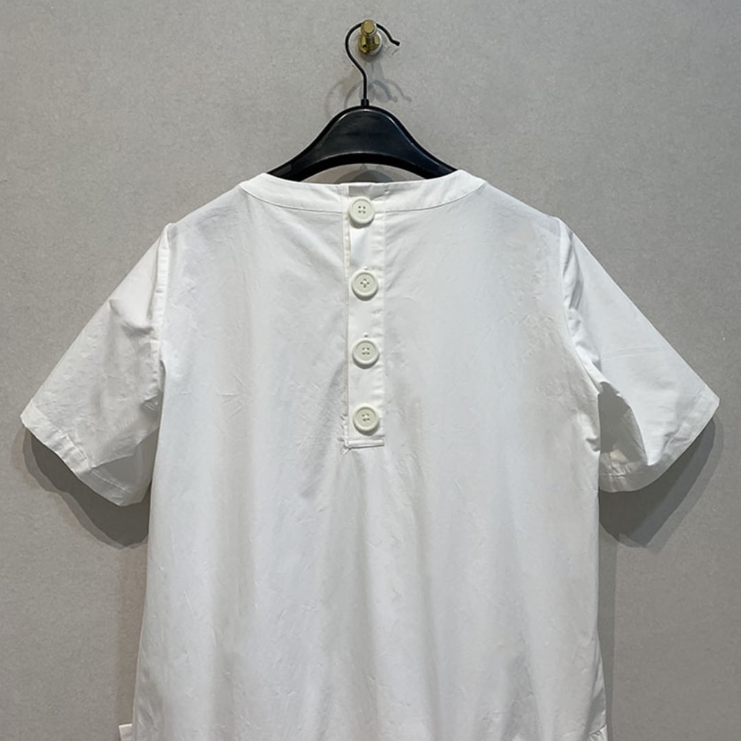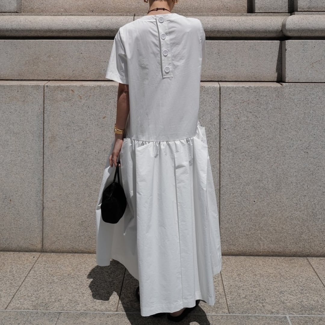 一癖効いたバックボタン付きで、後ろ裾が長いフィッシュテールが優雅な雰囲気をプラス。シンプルでも物足りなさを感じず、シルエットやディテールでコーデをお楽しみいただけます。