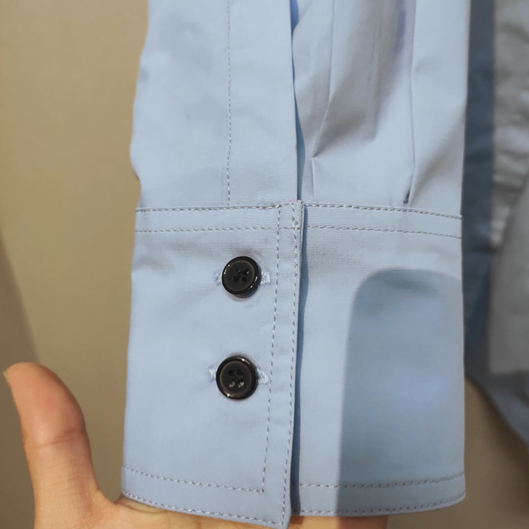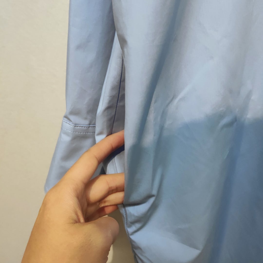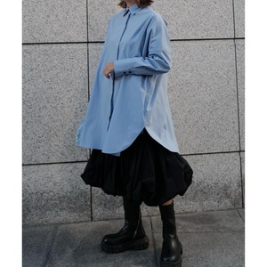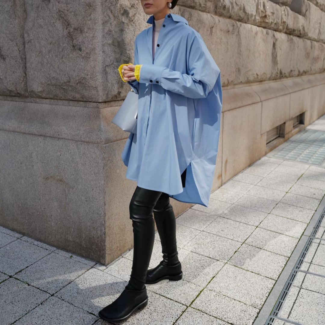 ビックシルエットでこなれ感があり、ハリとサラッとした質感を兼ね備えたコットン100%の生地を使用。穏やかな空を想像させるライトブルーが清々しい印象を与えてくれます。