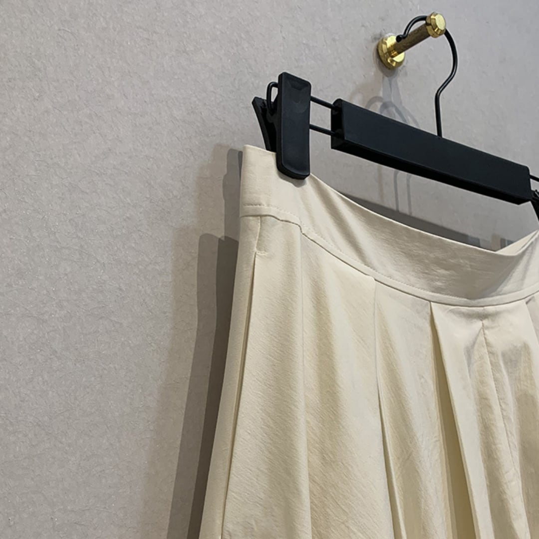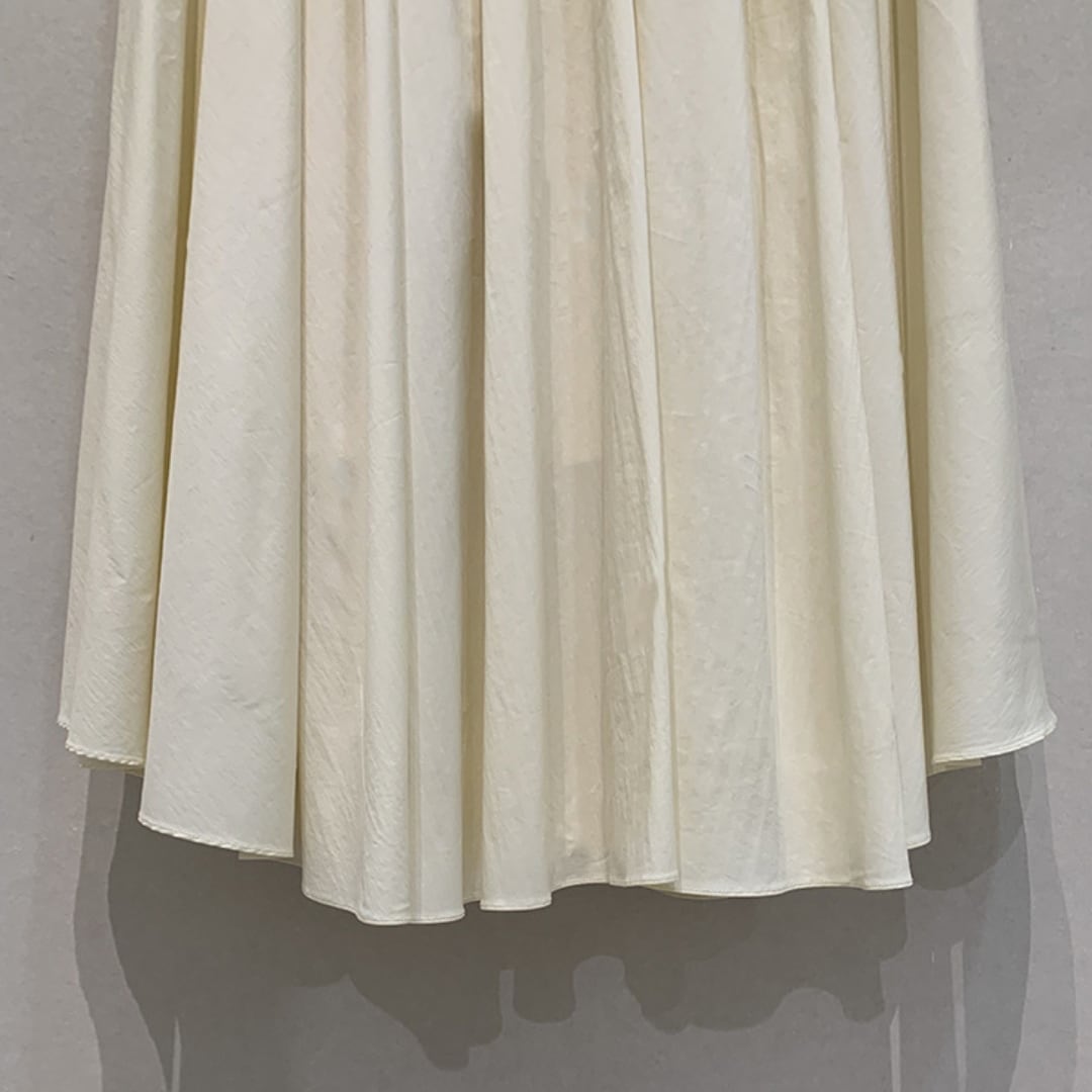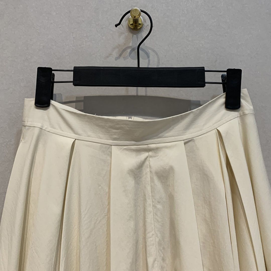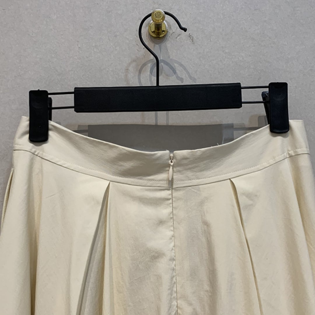 揺れ感が美しく、トップスインの見映えも良いバックファスナー式。エレガントなデザインに加え、サイドポケット付きで機能性も兼ね備えています。