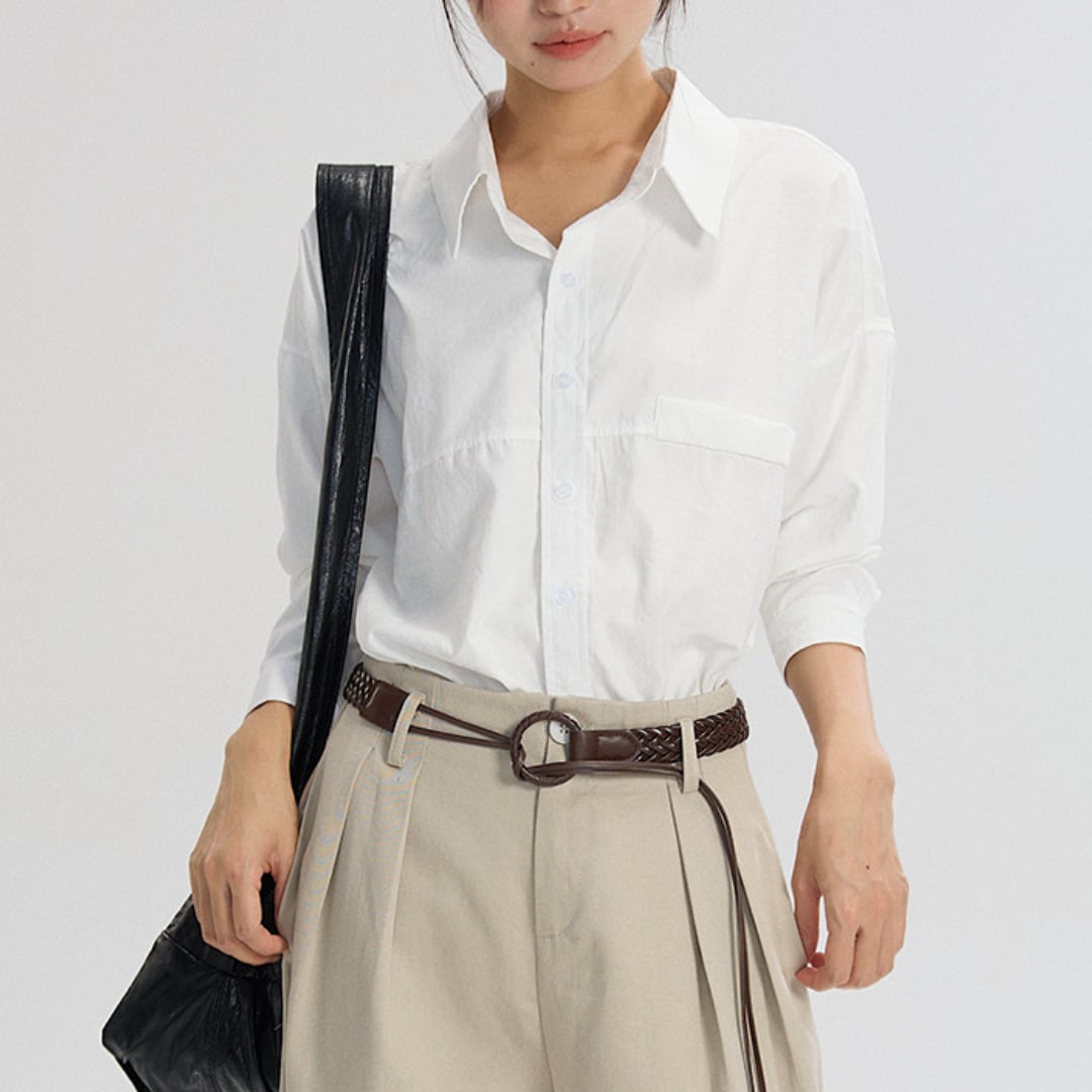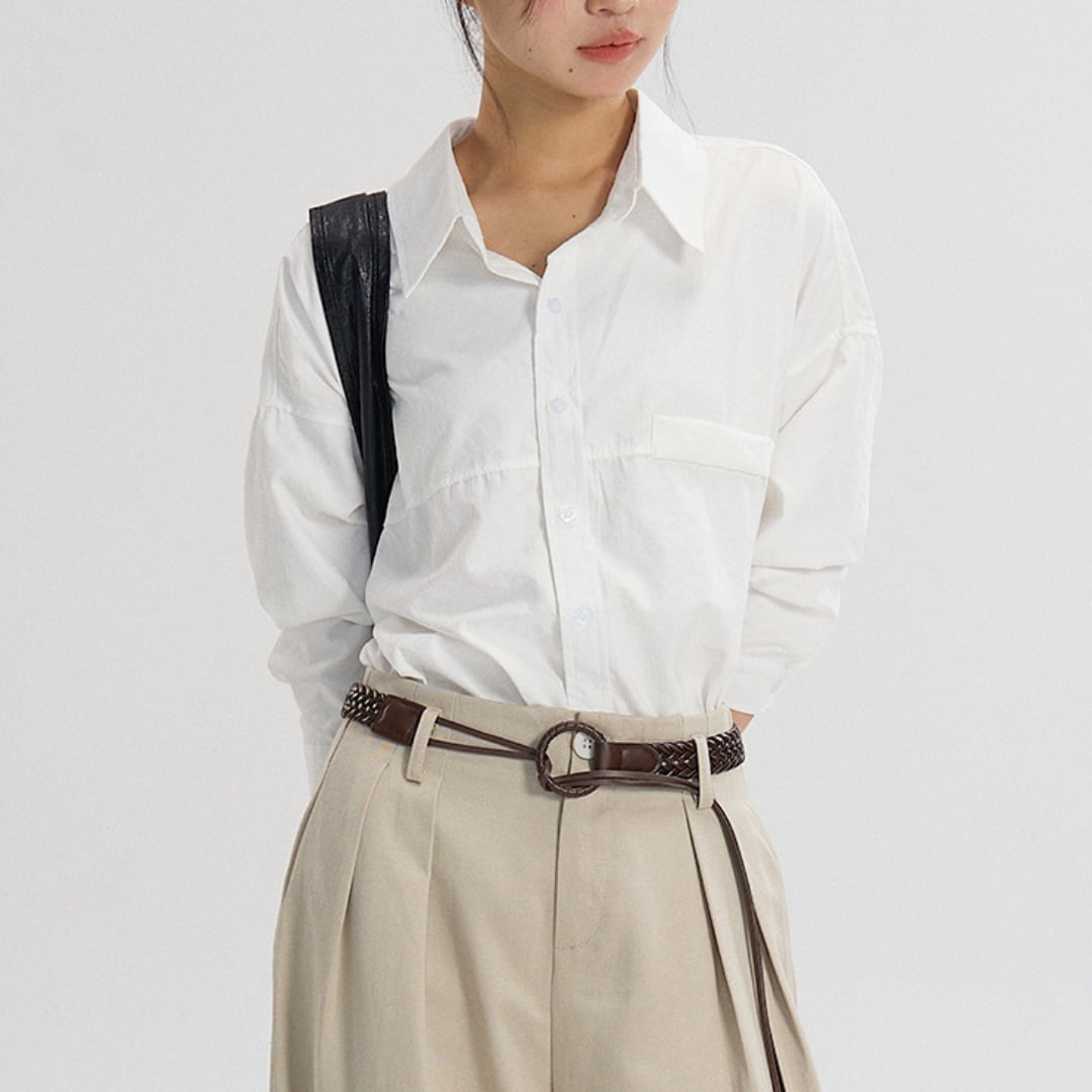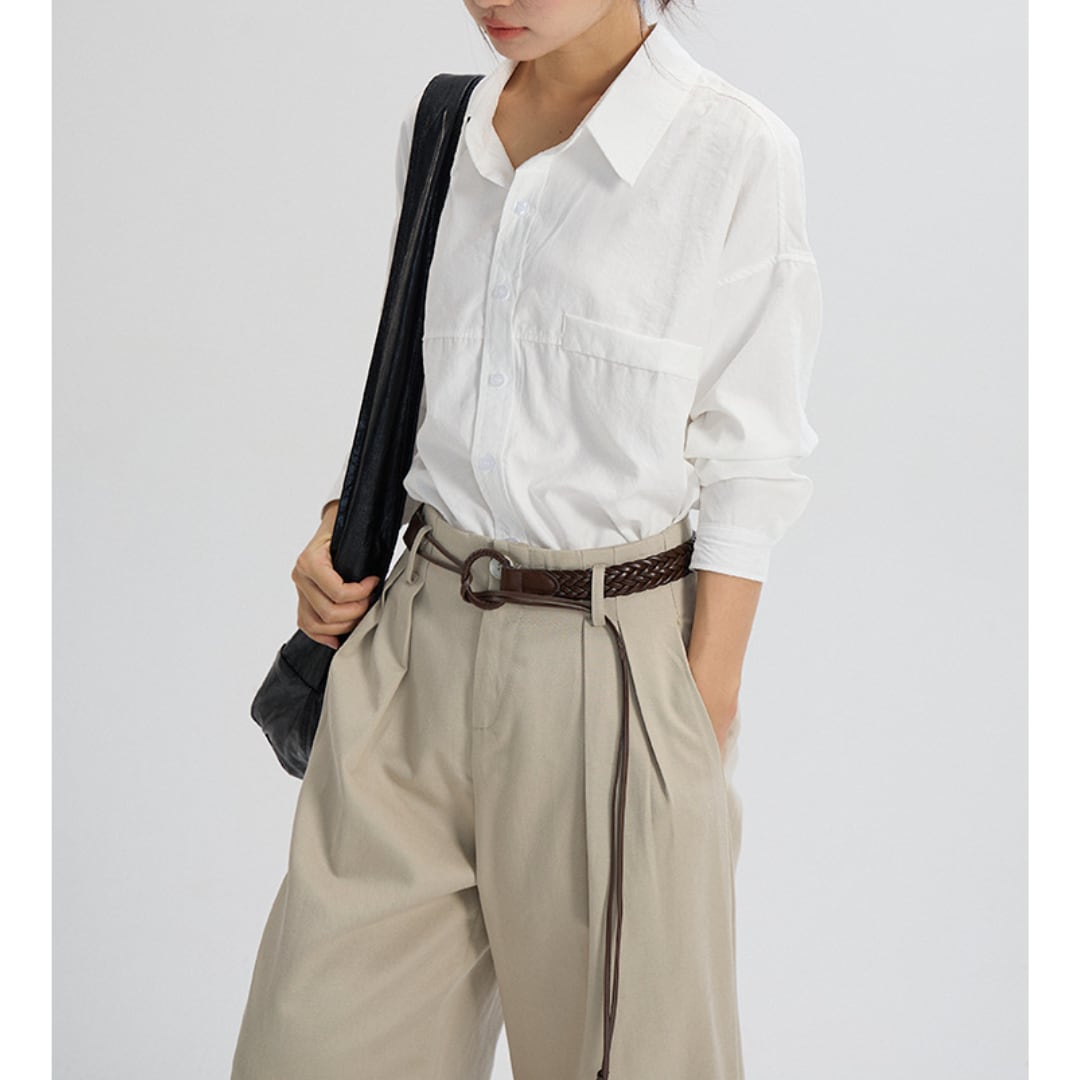 ドロップショルダー仕様で動きやすく、買い物・通勤・オフィスカジュアルなど日常シーンに幅広く対応。気分でトップスインorアウトを選択して雰囲気の違いを楽しめます。