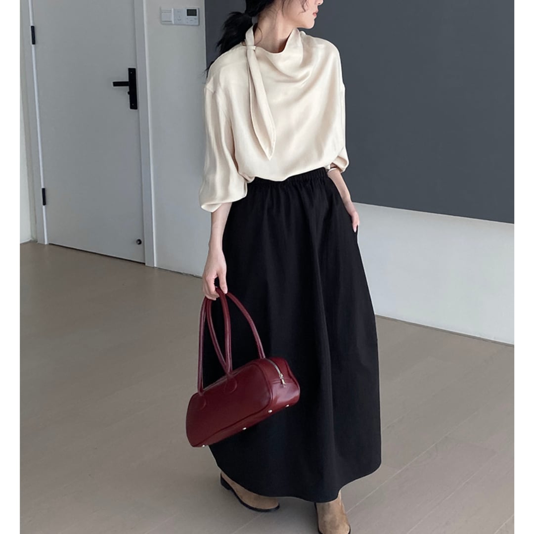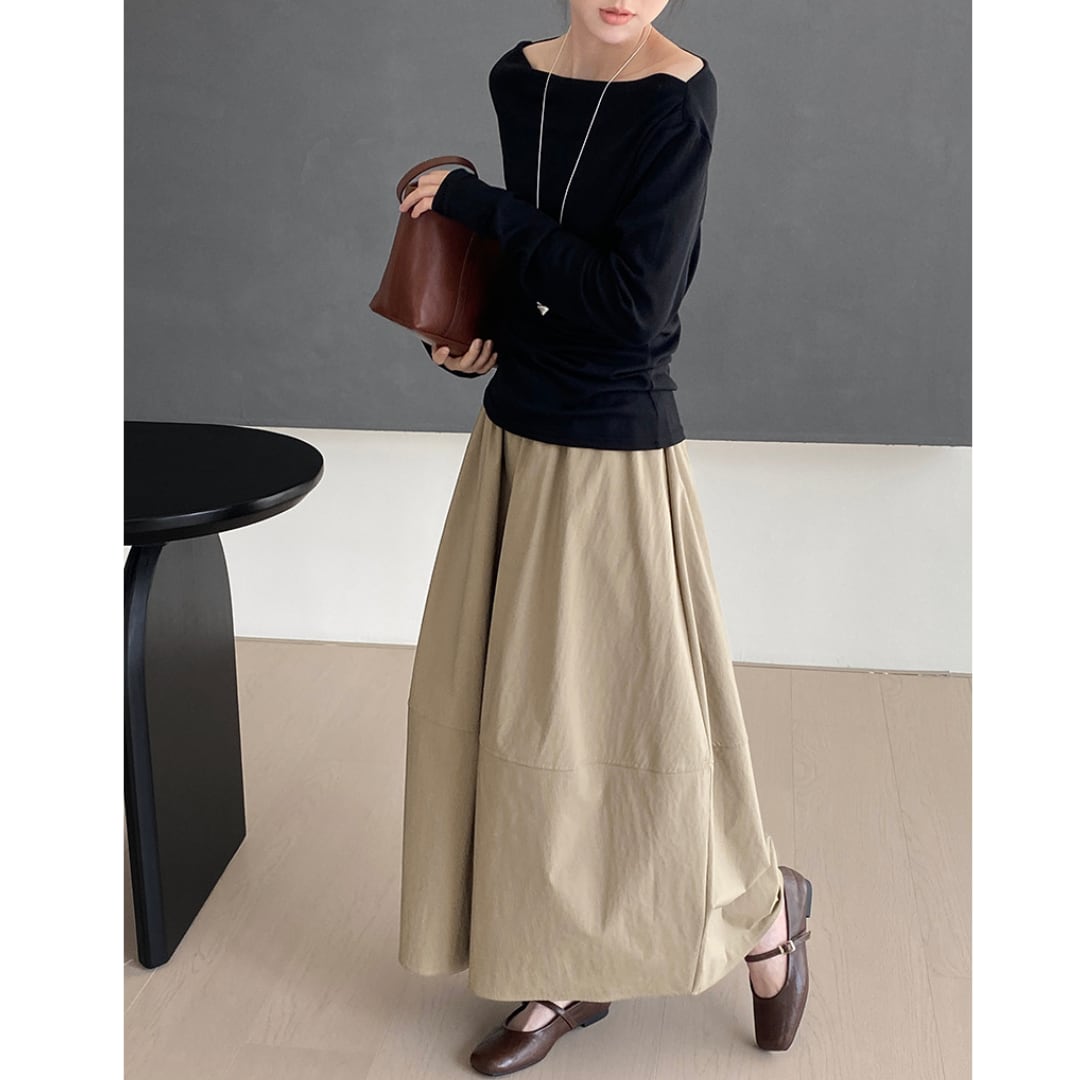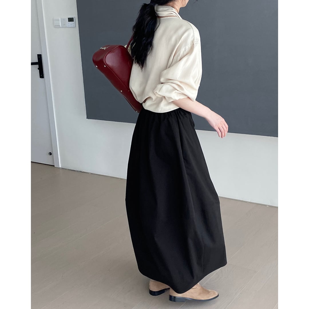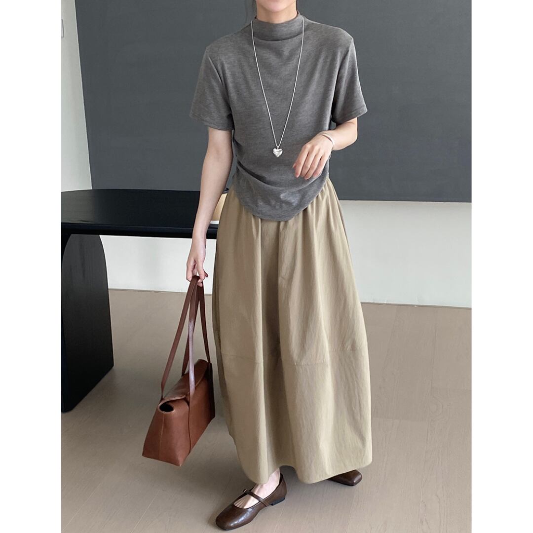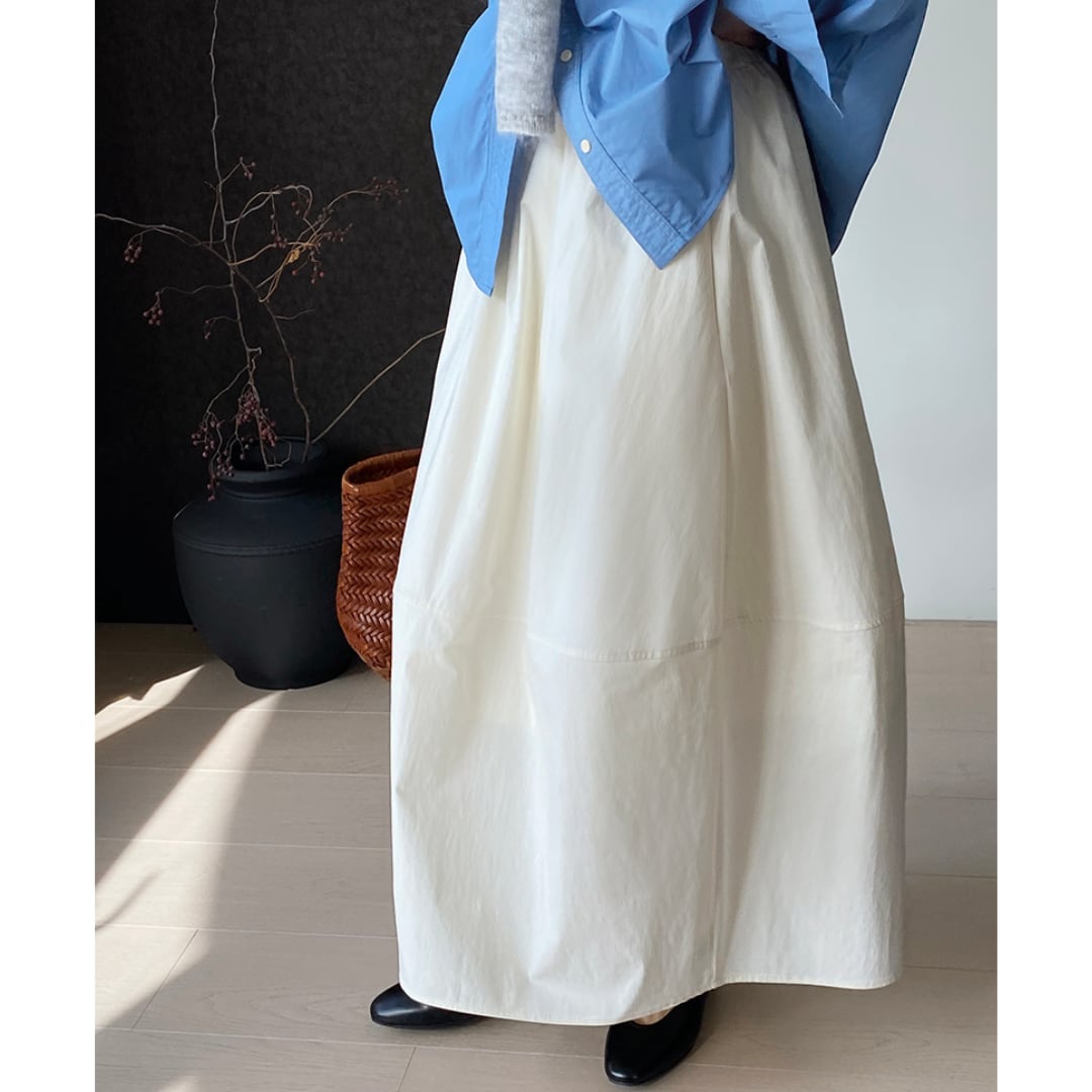 頑張りすぎないおしゃれにちょうどいい、ウエストギャザーのスカート。