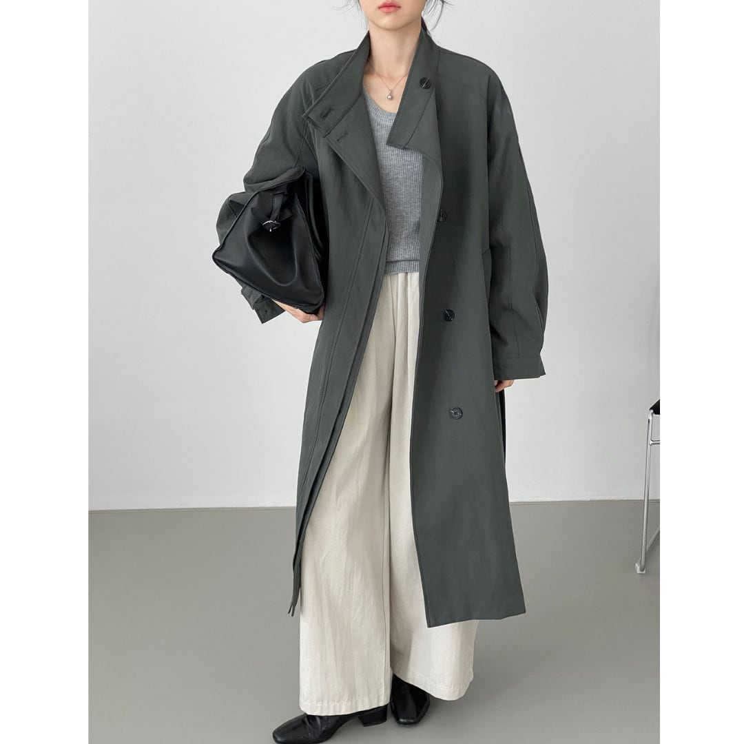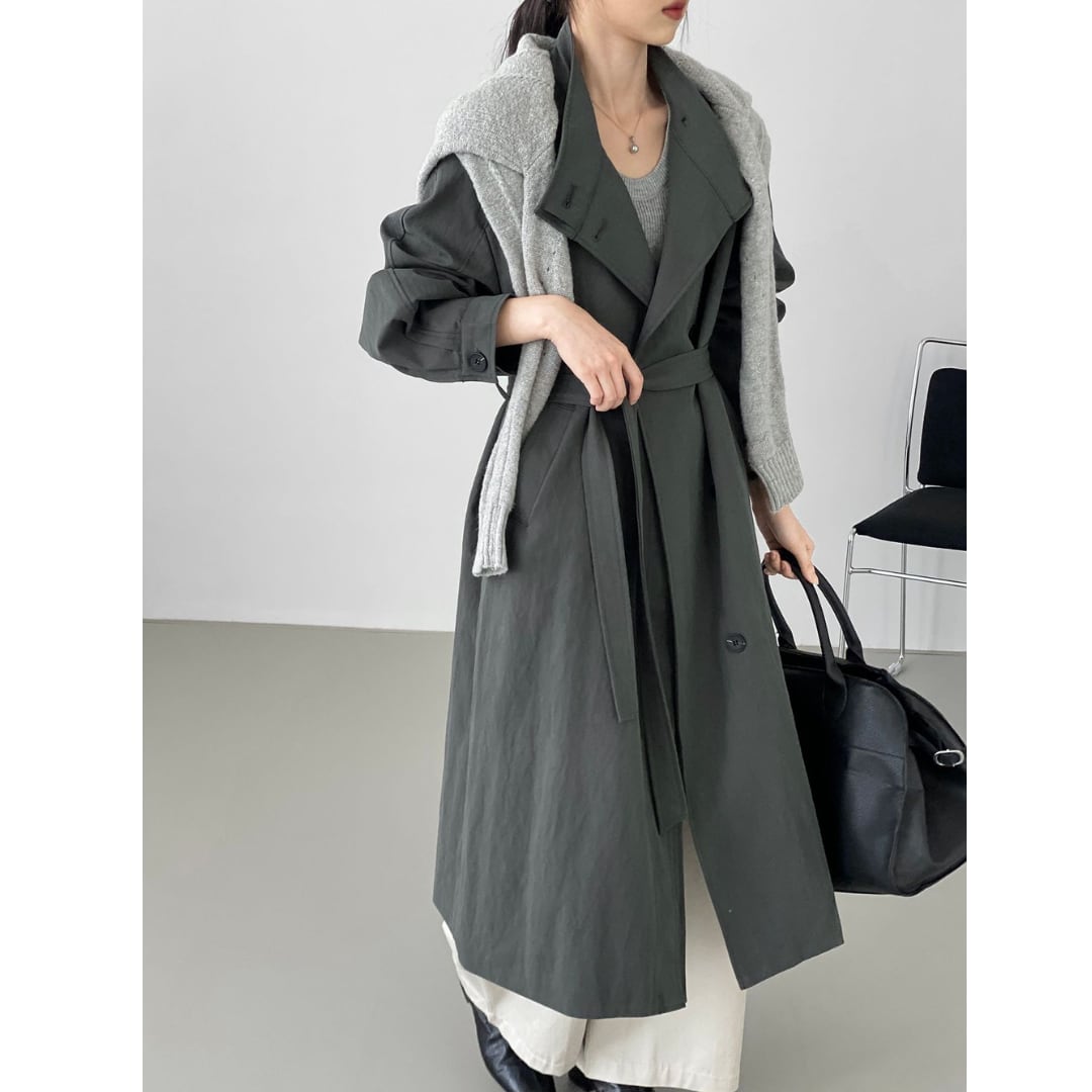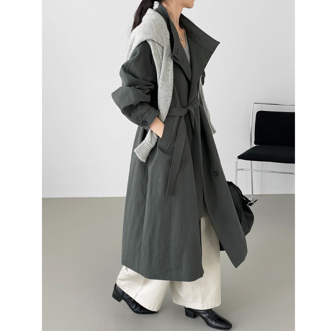 落ち着いた雰囲気が漂うヴィンテージカラーのトレンチコート。