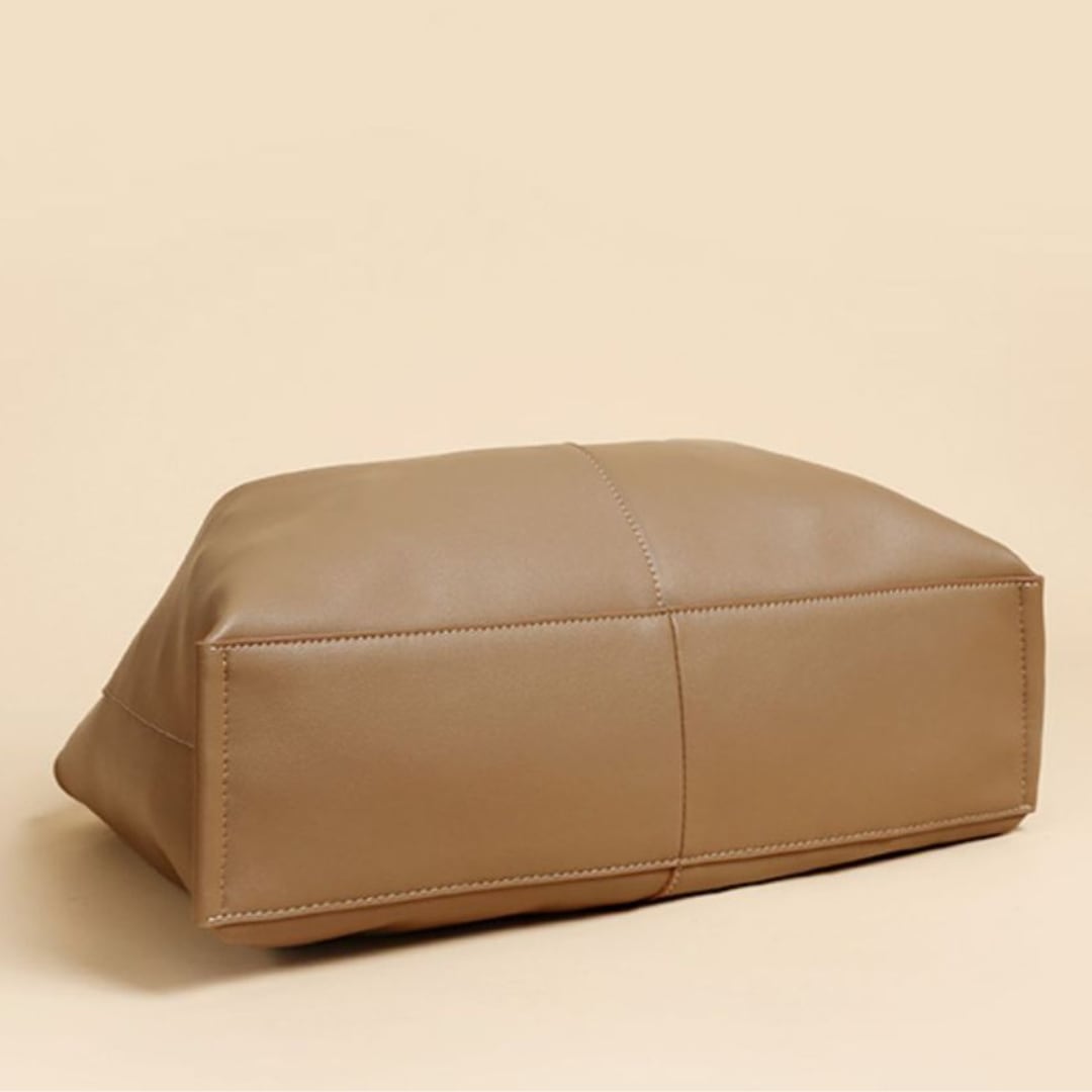 ドレープ感のあるやわらかめのレザーを使用した、日常に溶け込む親しみやすいデザイン。シェプロンストライプ柄にデザインされた内部には小物用のポケットもあり、外出先で不便しない設計です。