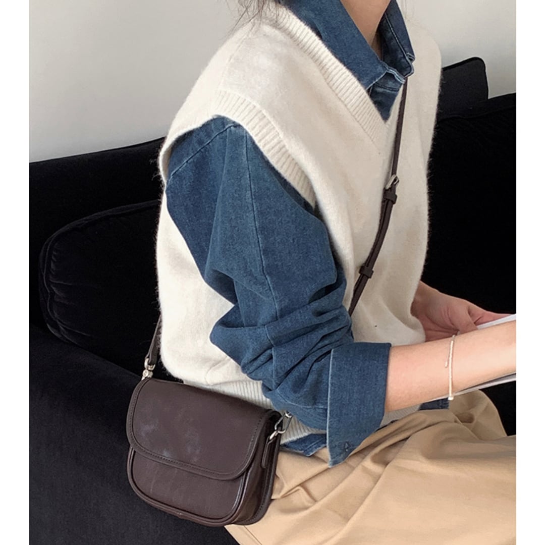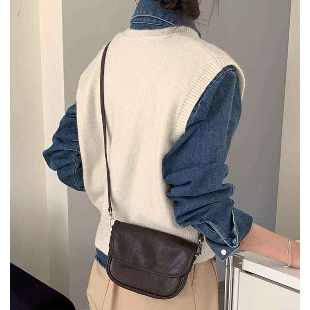 ワンタッチで開閉可能なマグネットボタン付きで荷物の出し入れが楽に行えます。コーデにクラシカルな雰囲気をプラスすることができ、ショルダーストラップの取り外しも可能です。