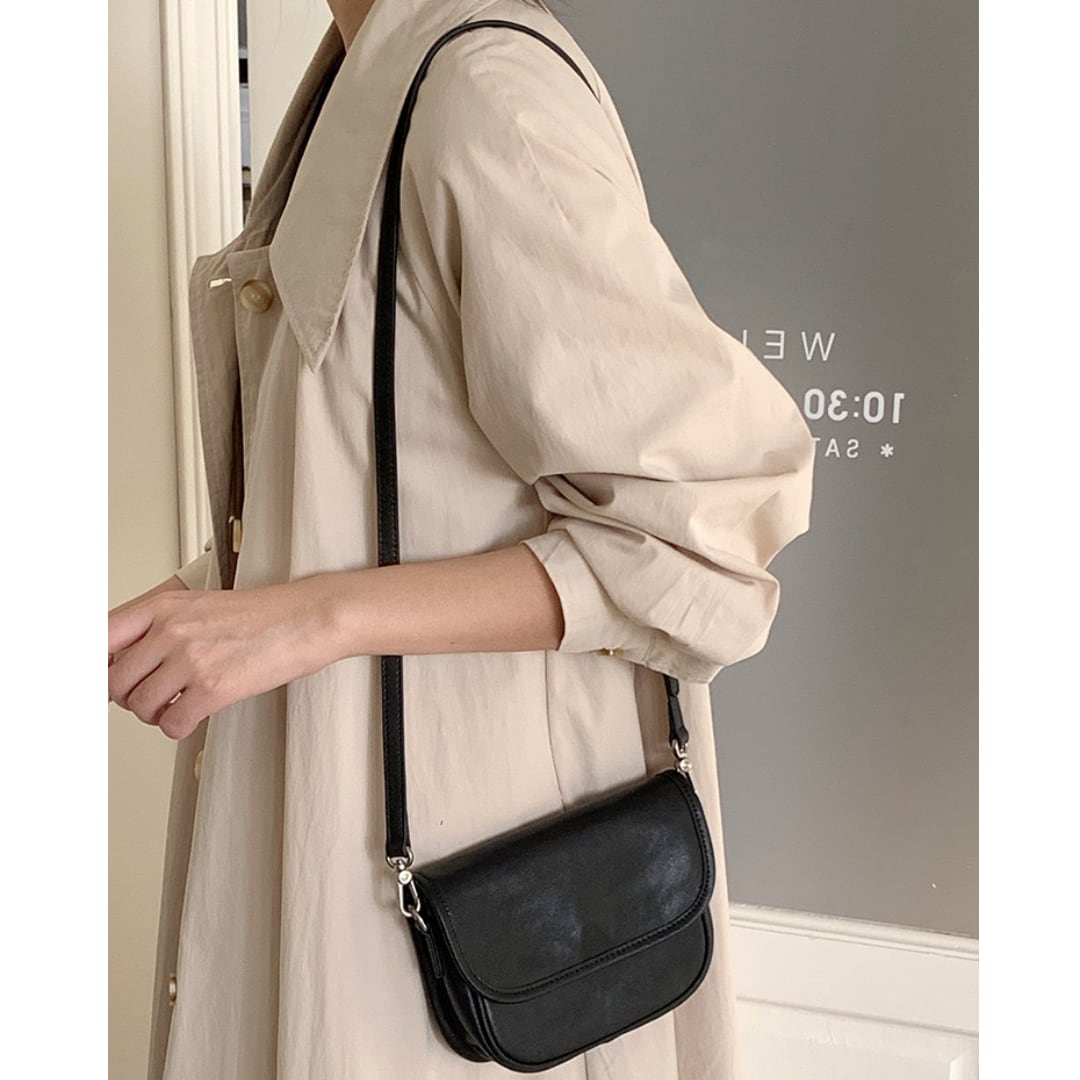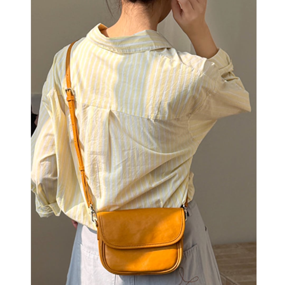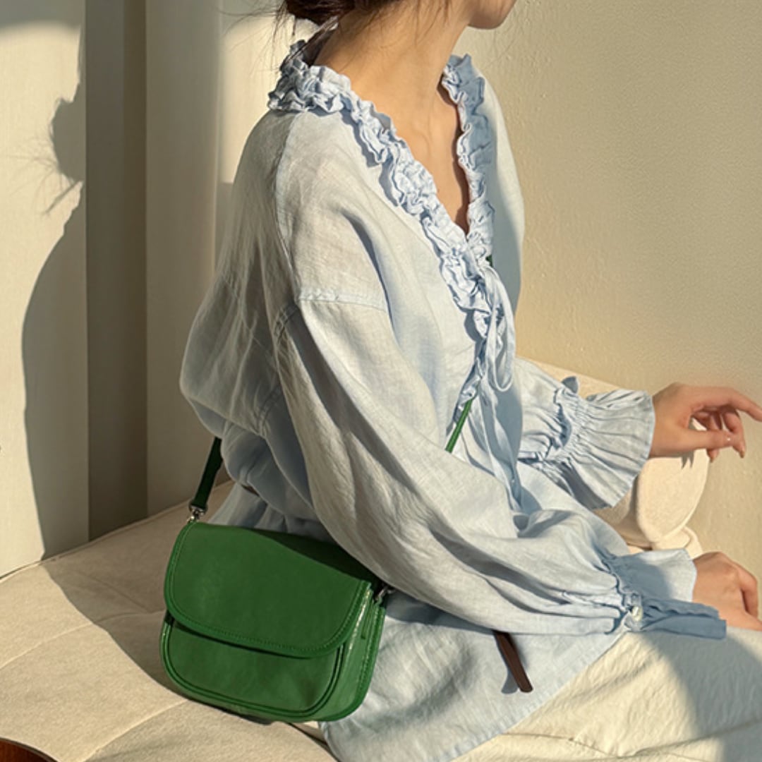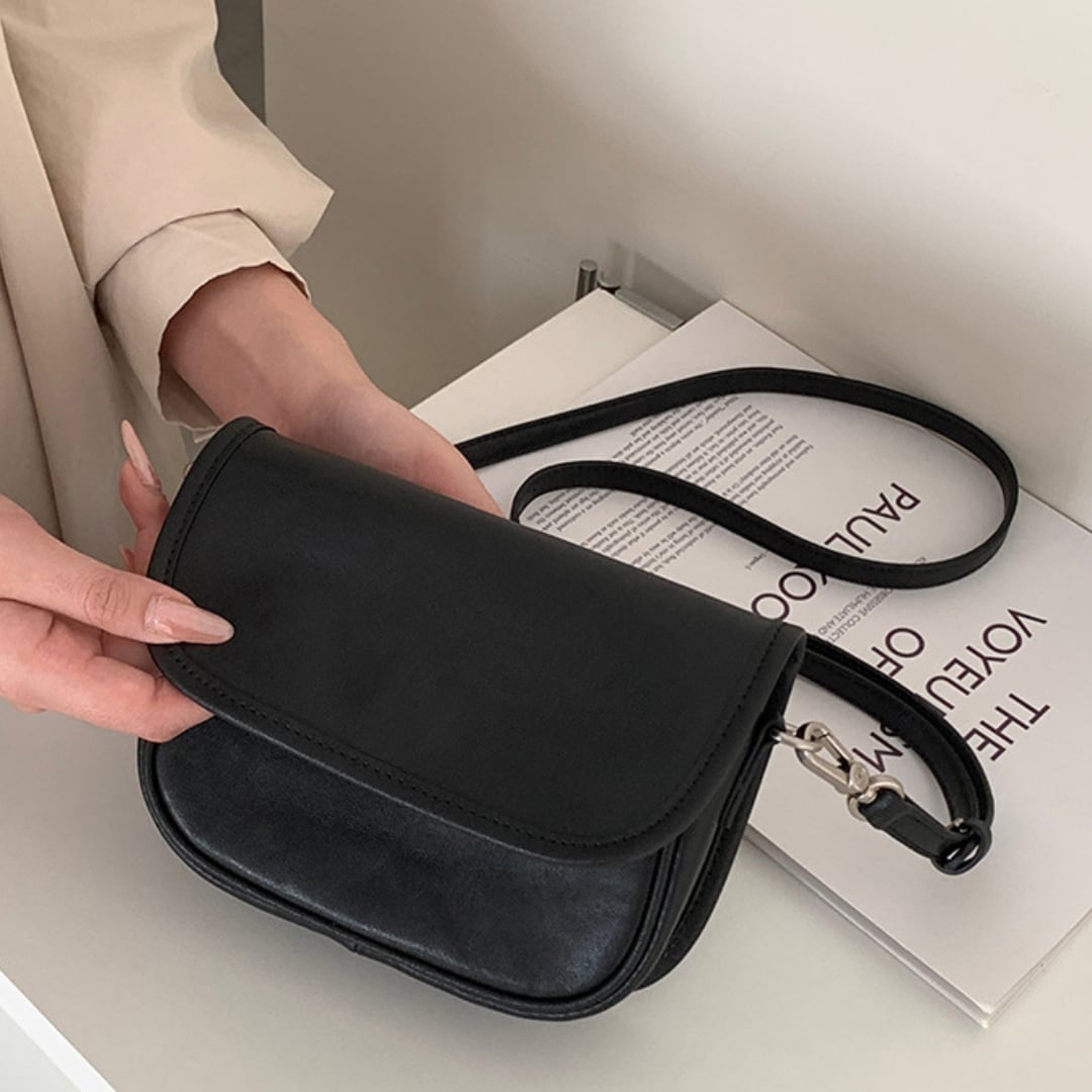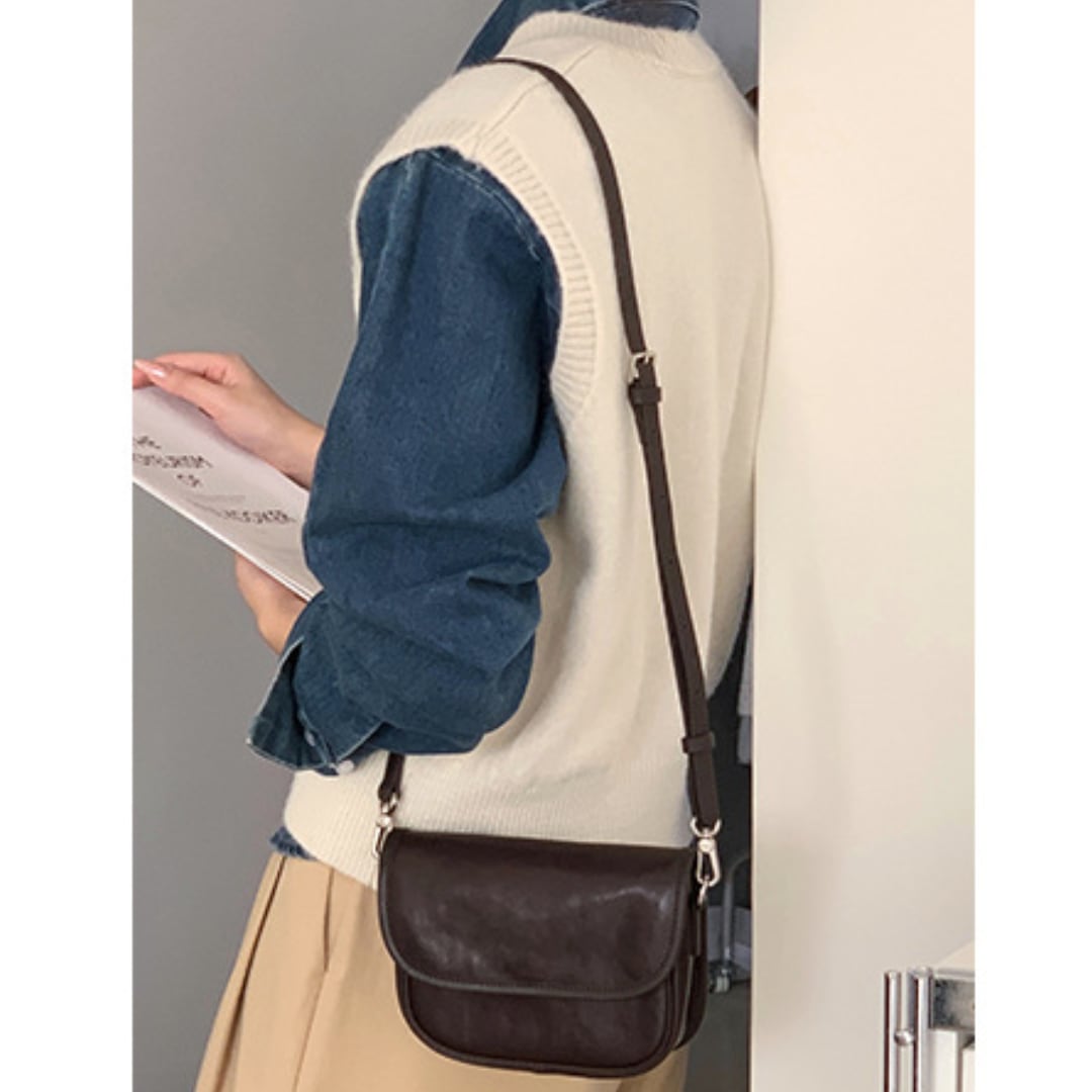 ナチュラルな艶と優しいフォルムが特徴のフラップバッグ。