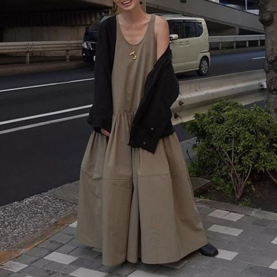 U-neck sleeveless gather one piece G1140