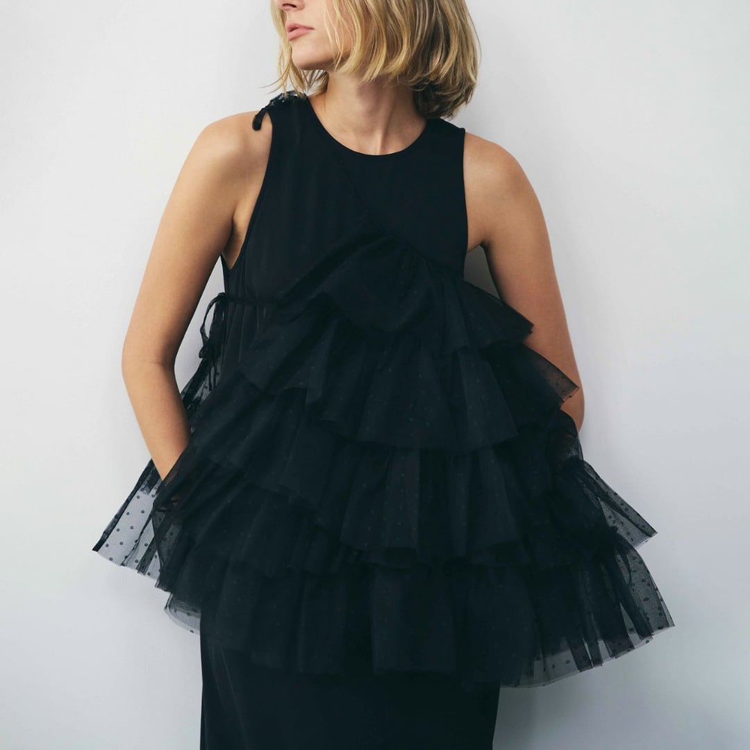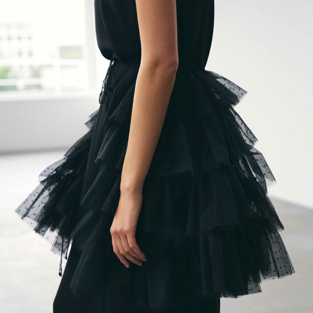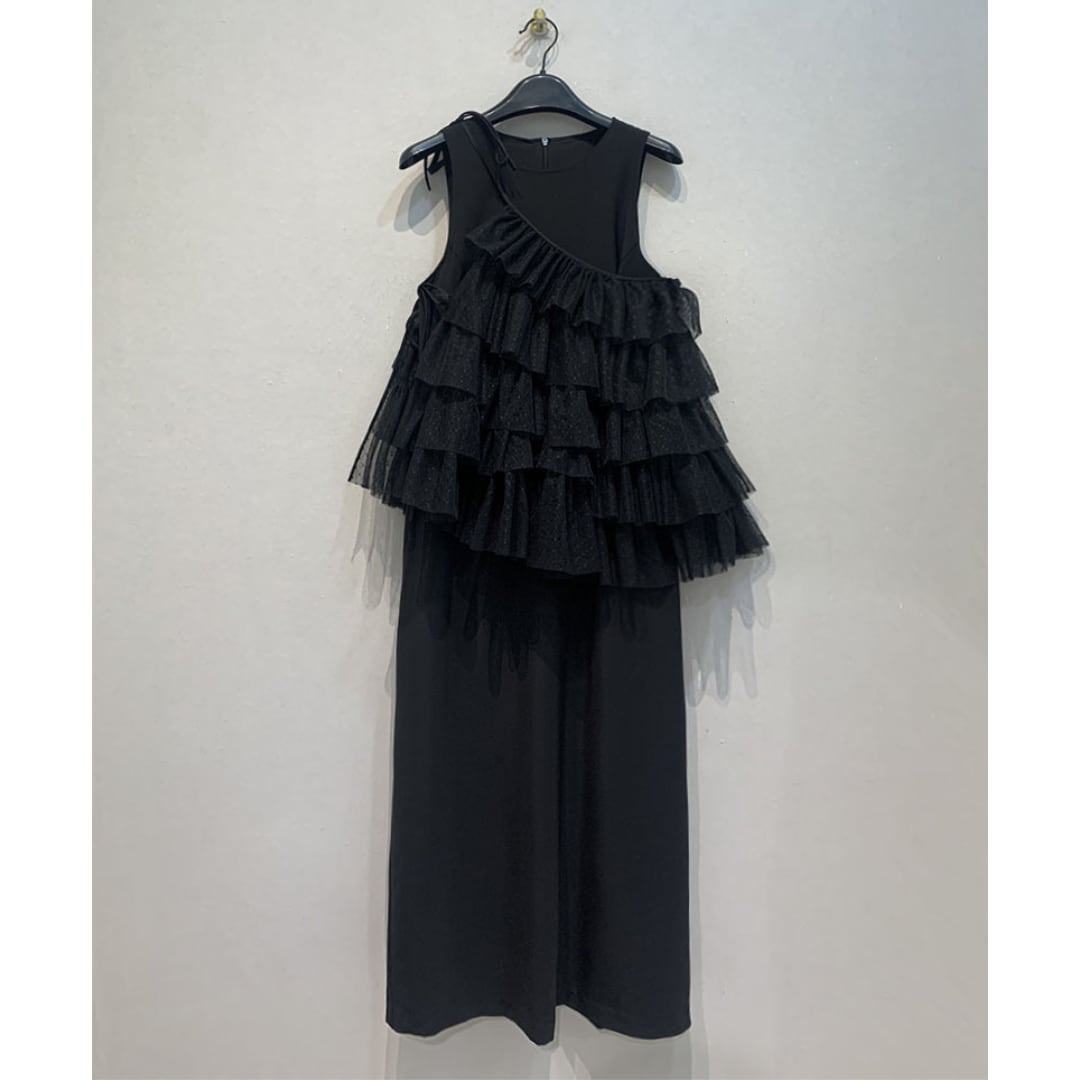 I-line sleeveless one piece / Wrap tiered tulle lace G1141