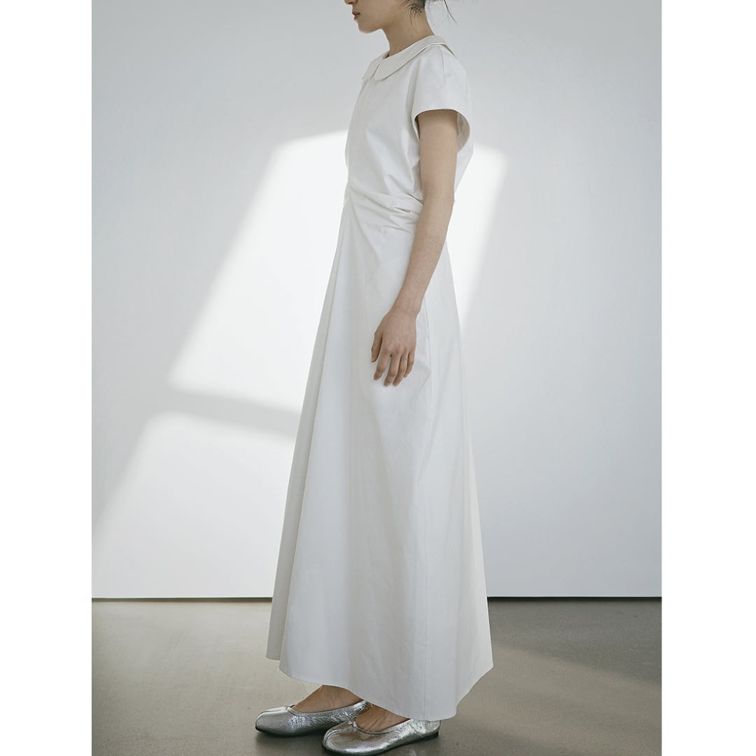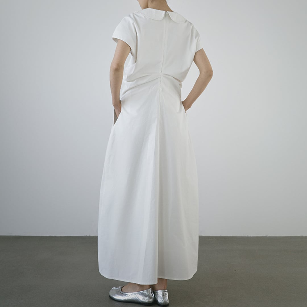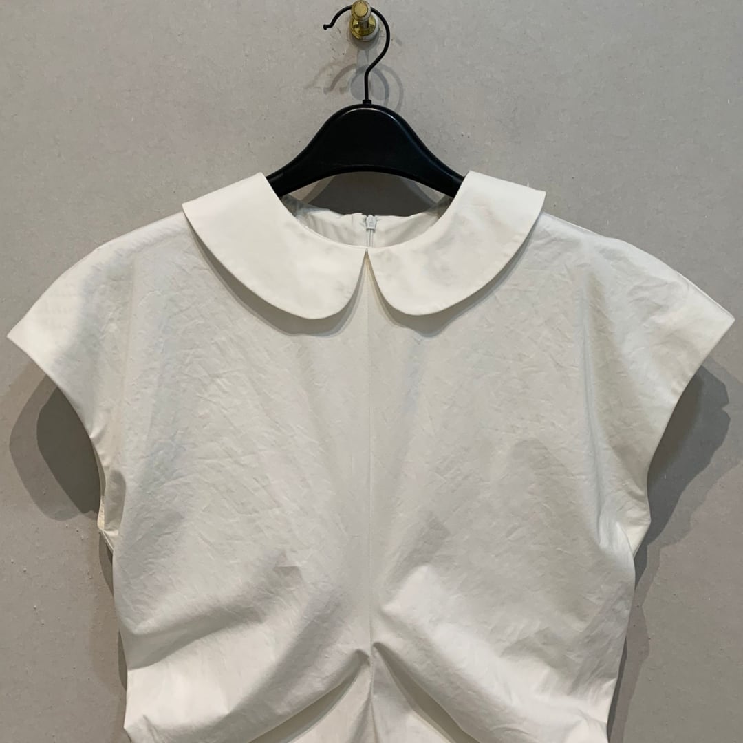 Round collar french sleeve gather one piece G1145