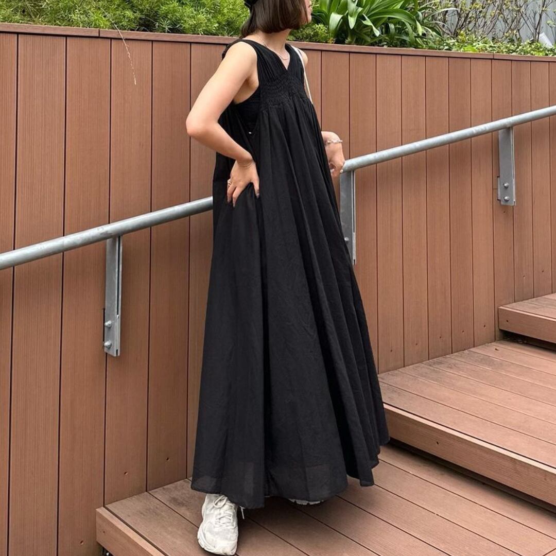 Front shirring sleeveless backshan one piece G1153