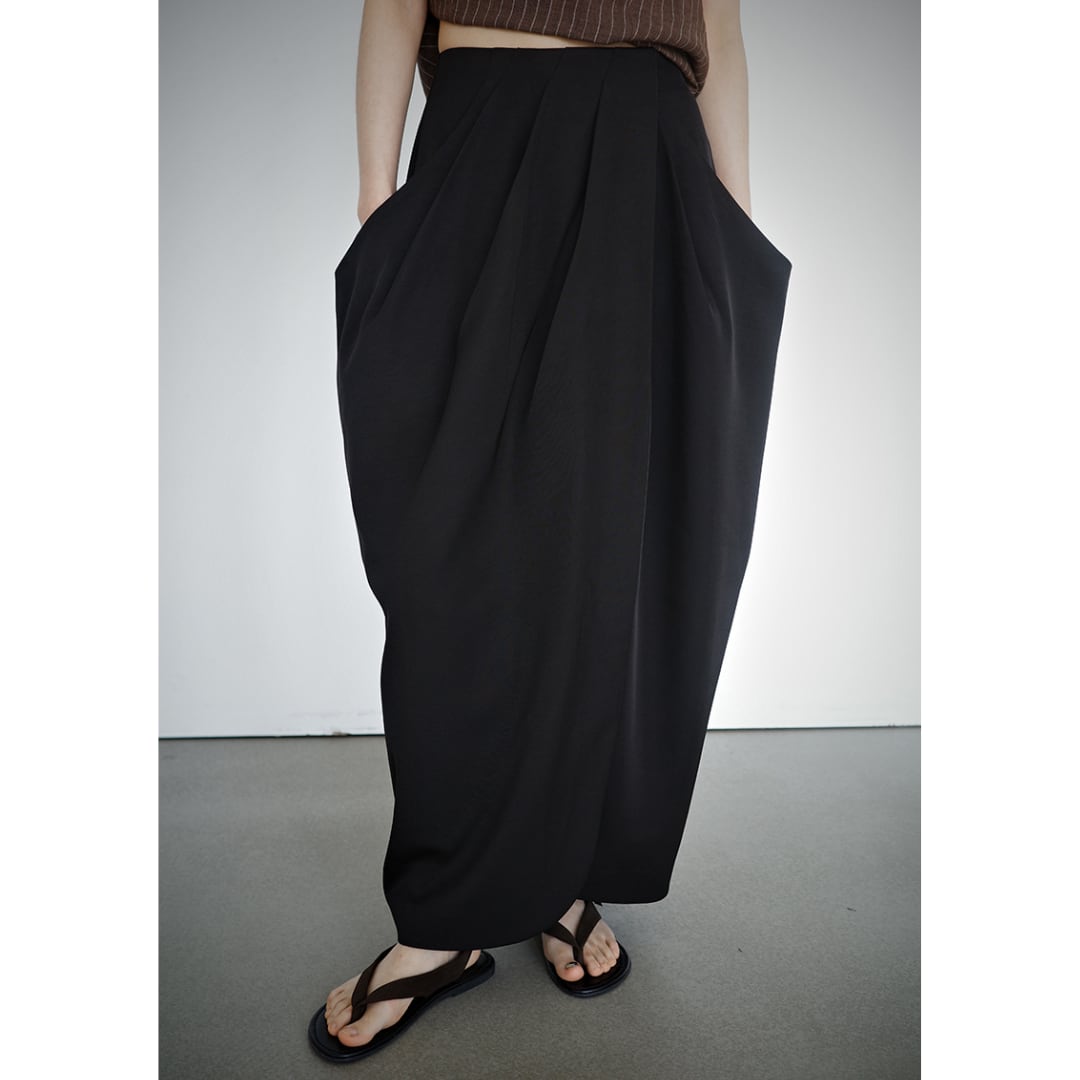 Cocoon silhouette high waist slit tack skirt G1163