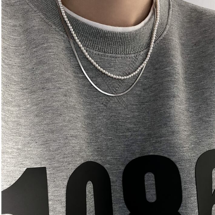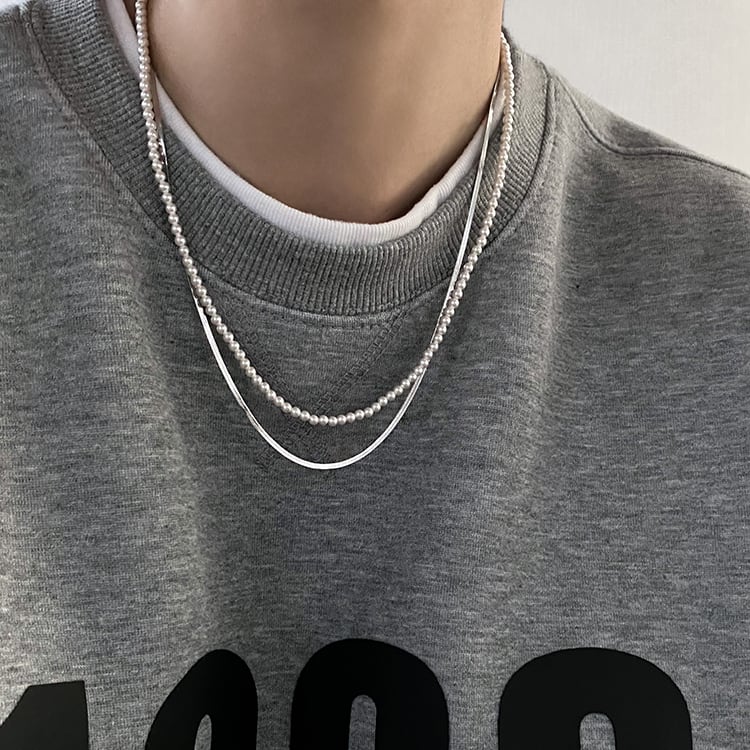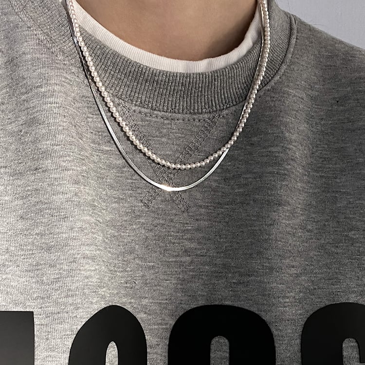 パールとスネークチェーンが上品に揺れるダブルネックレス。